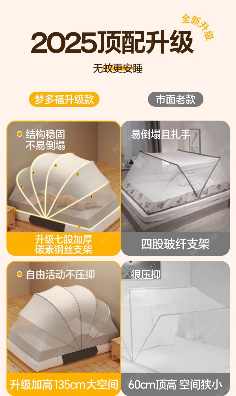 免安装可折叠蚊帐2025新款家用卧室蒙古包学生宿舍儿童婴儿防蚊罩