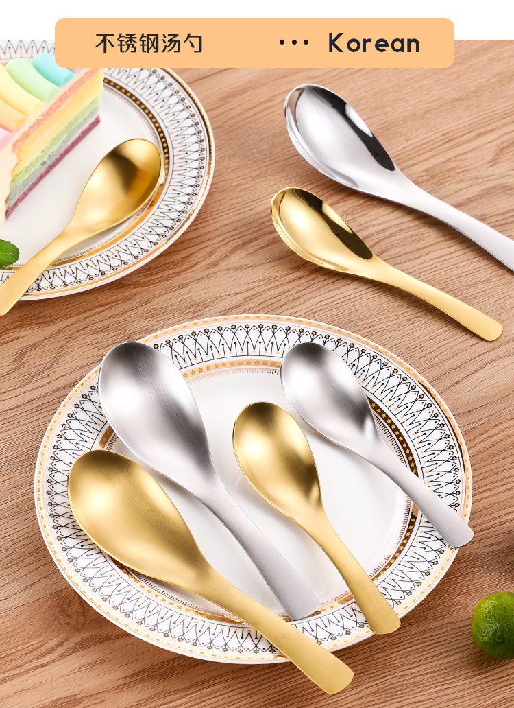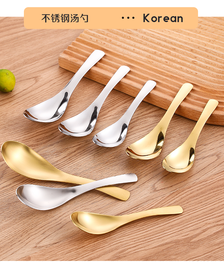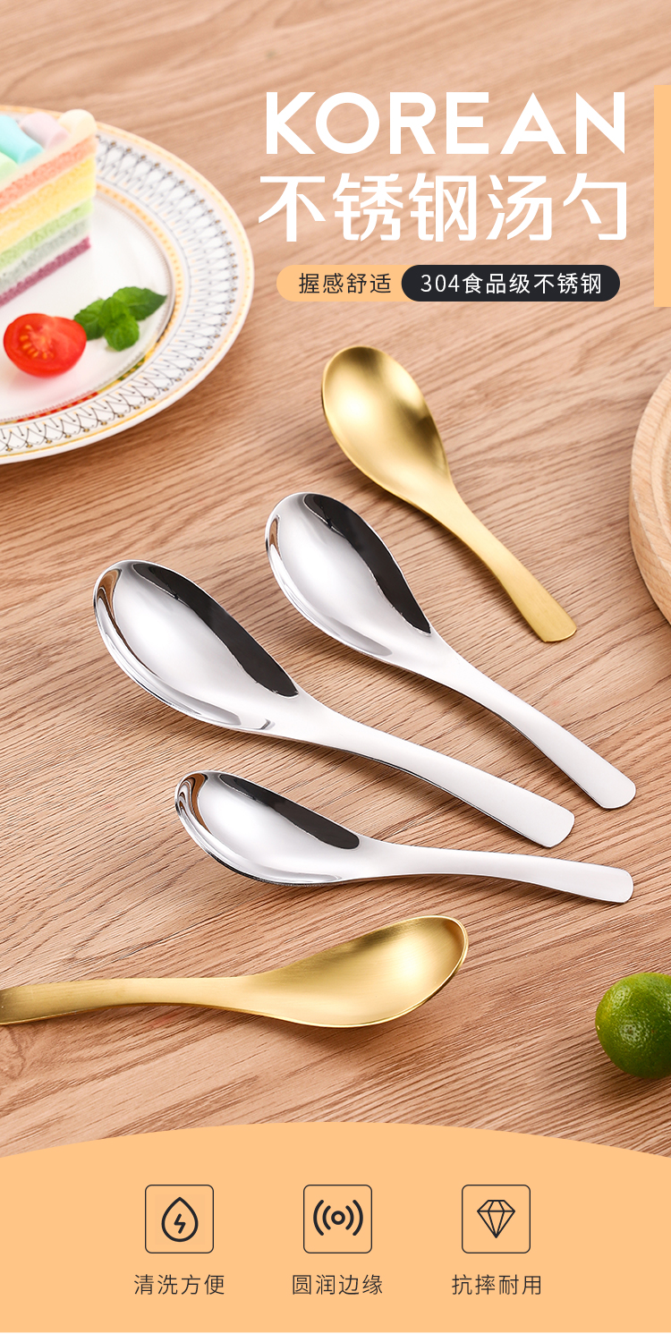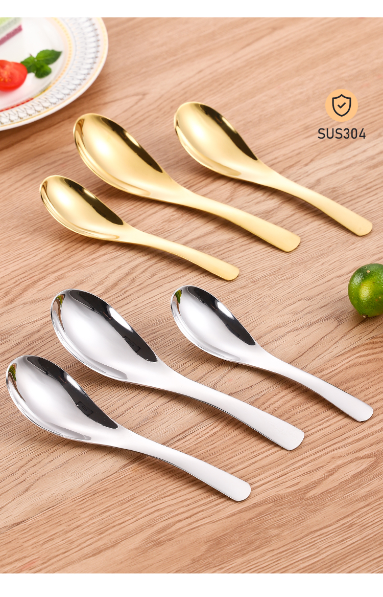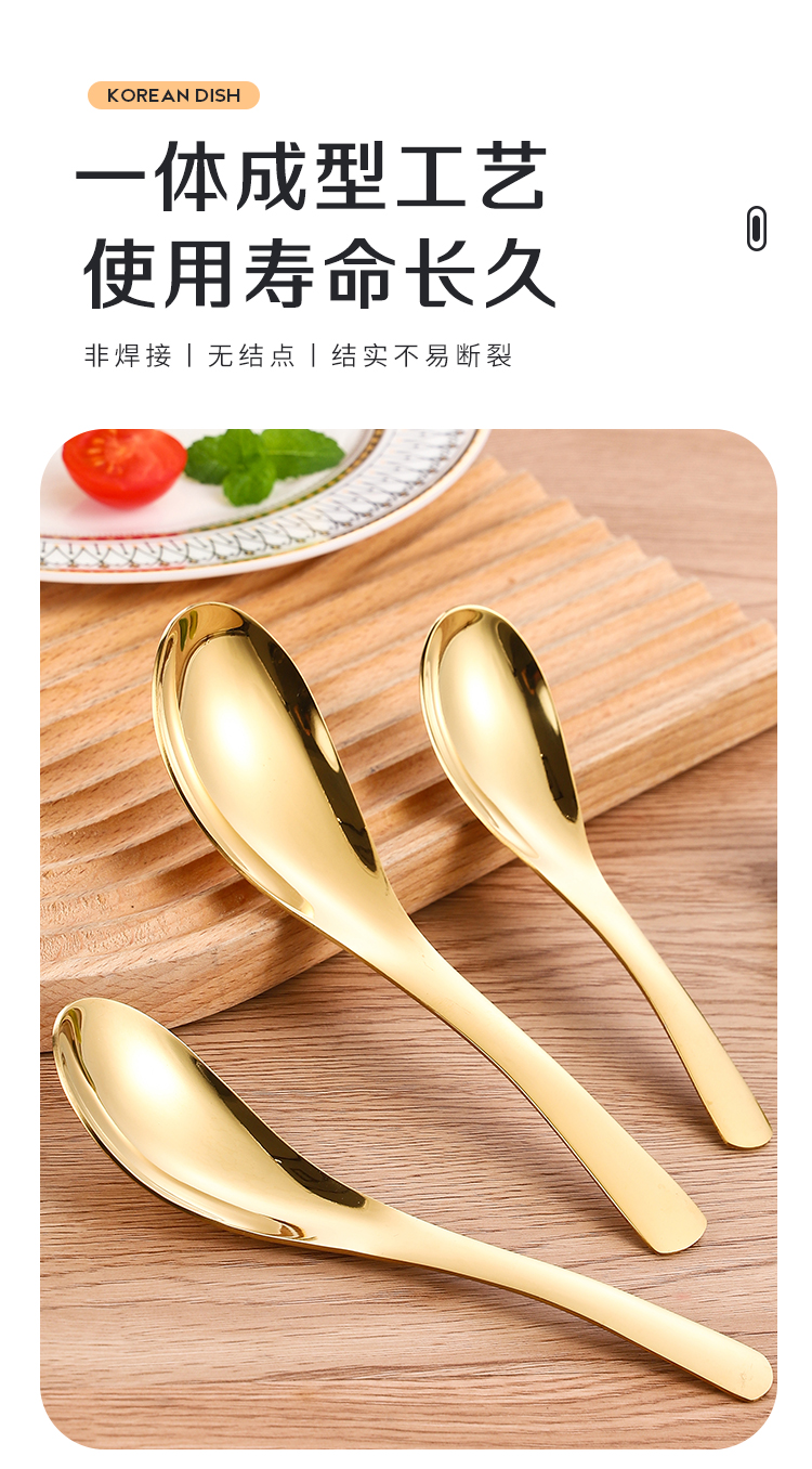 304不锈钢勺子 幼儿园儿童勺子金色韩式餐厅吃饭勺商用面馆喝汤勺