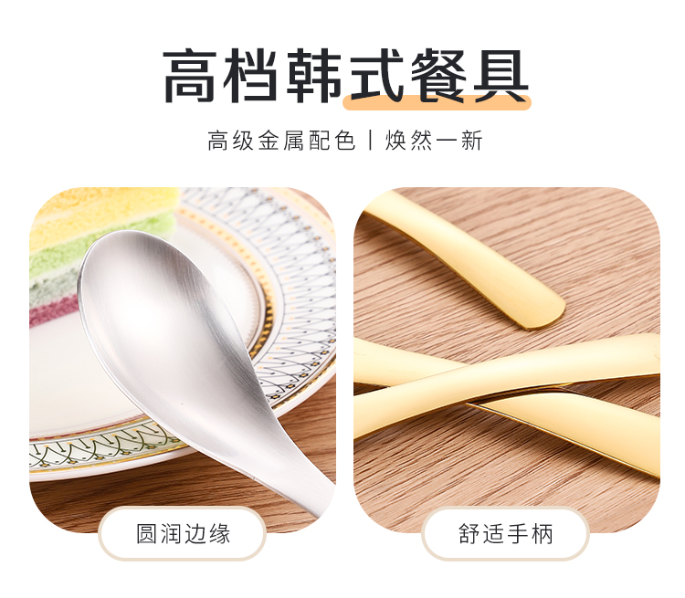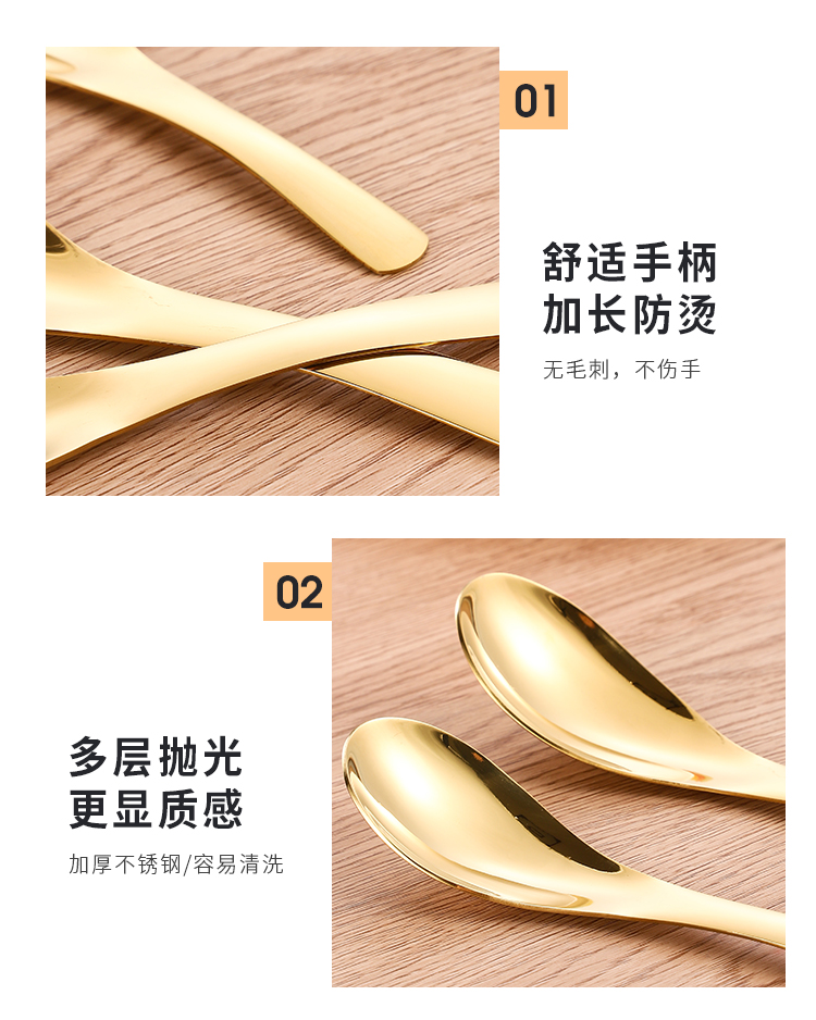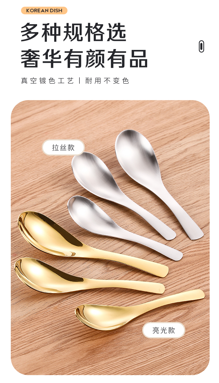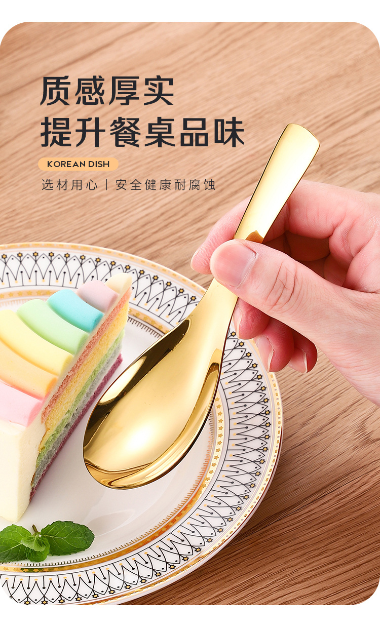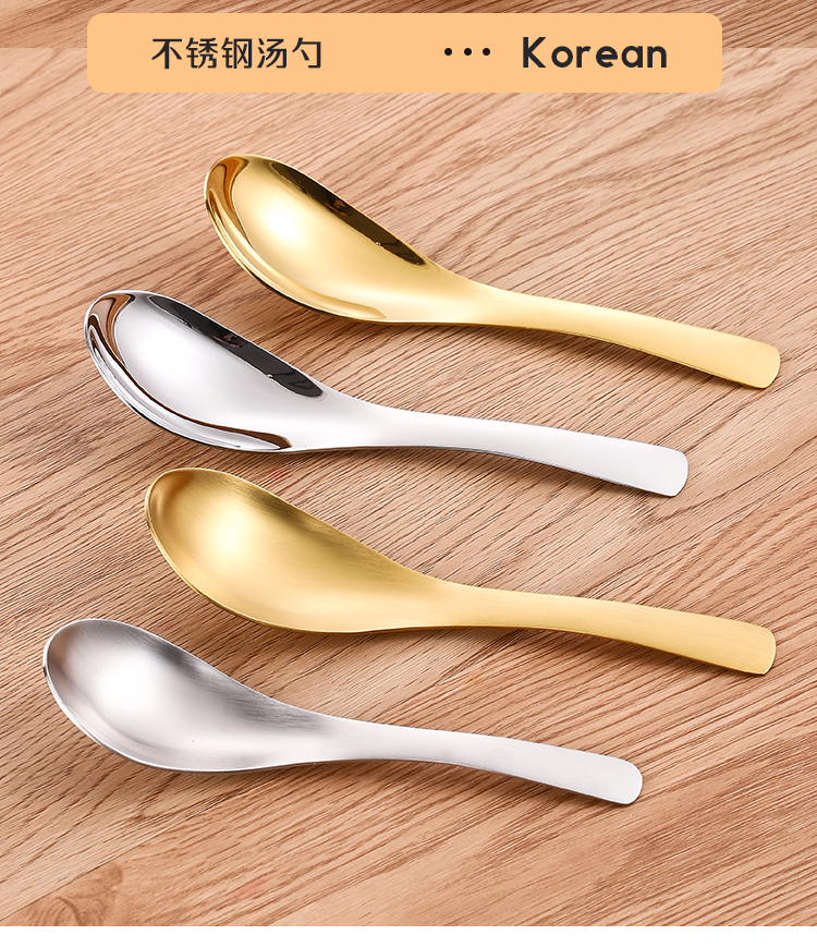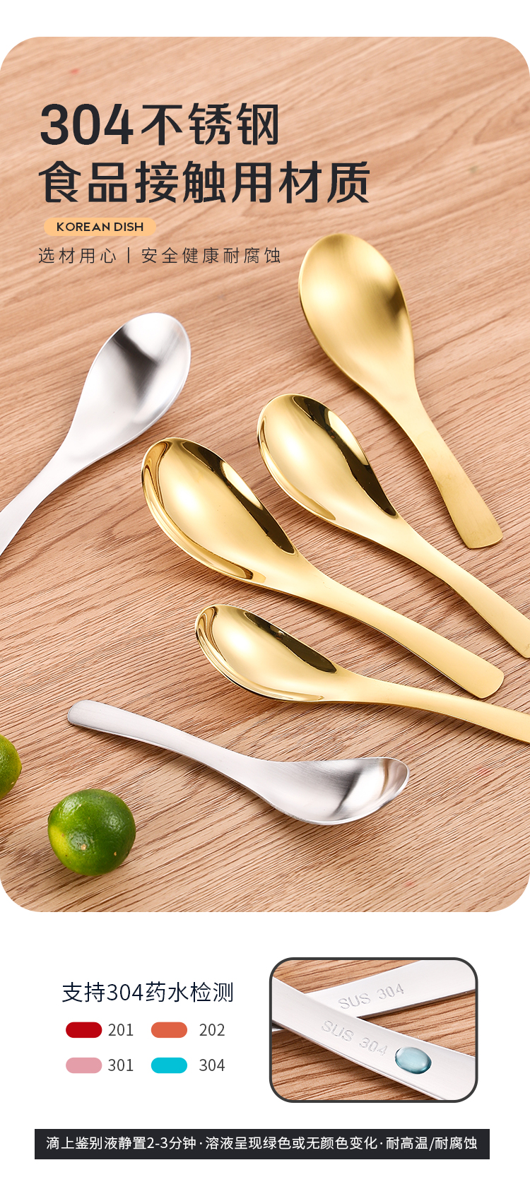 304不锈钢勺子 幼儿园儿童勺子金色韩式餐厅吃饭勺商用面馆喝汤勺