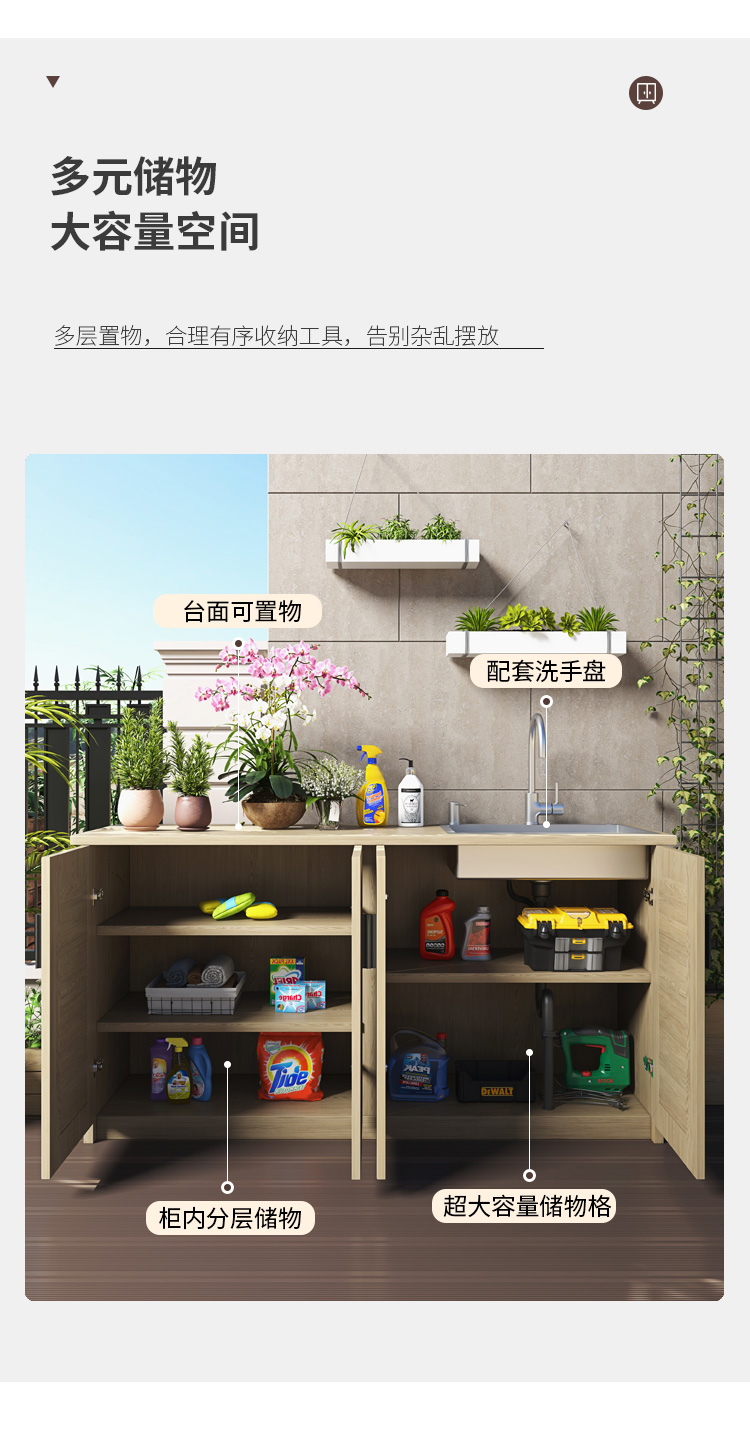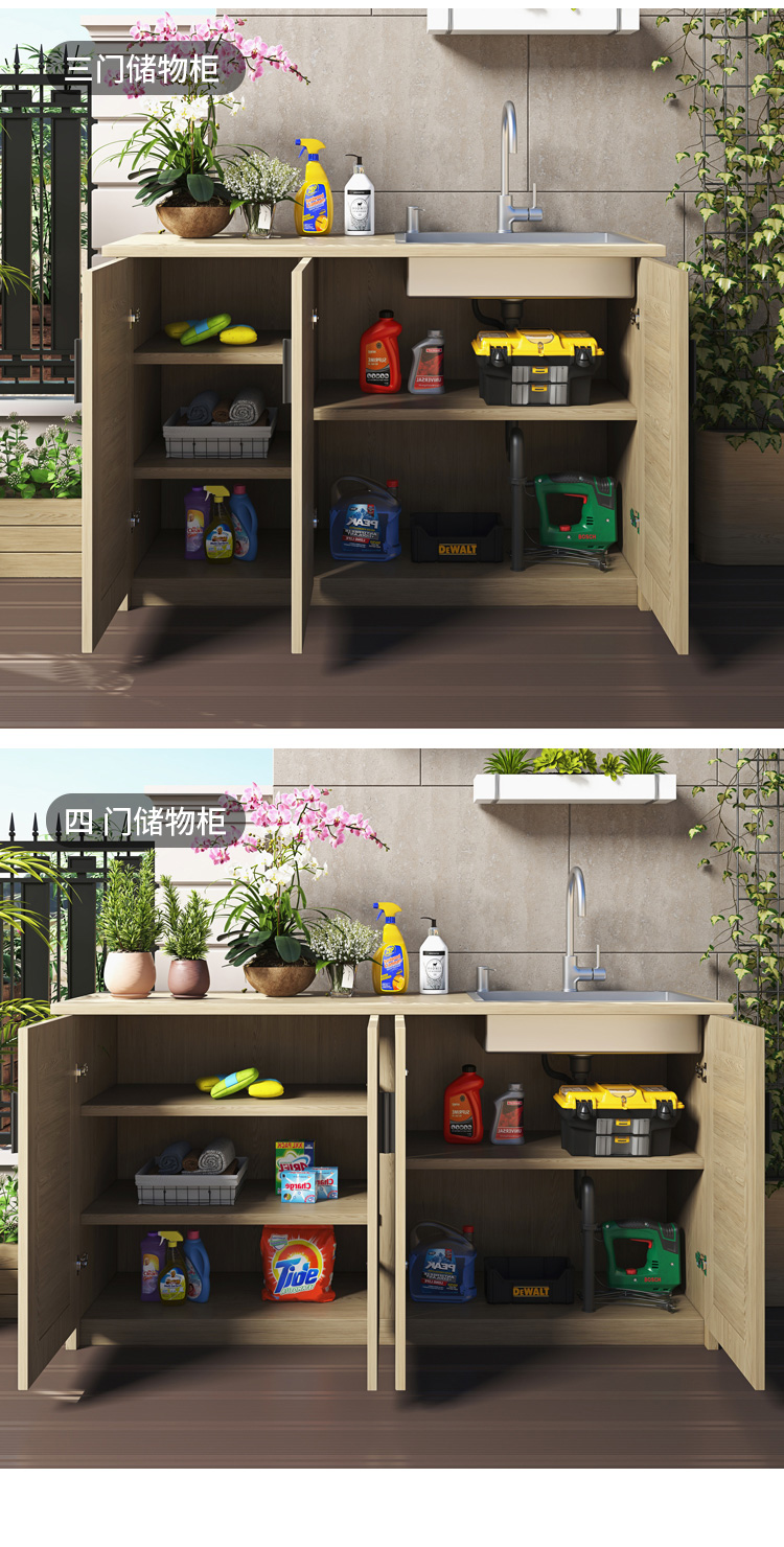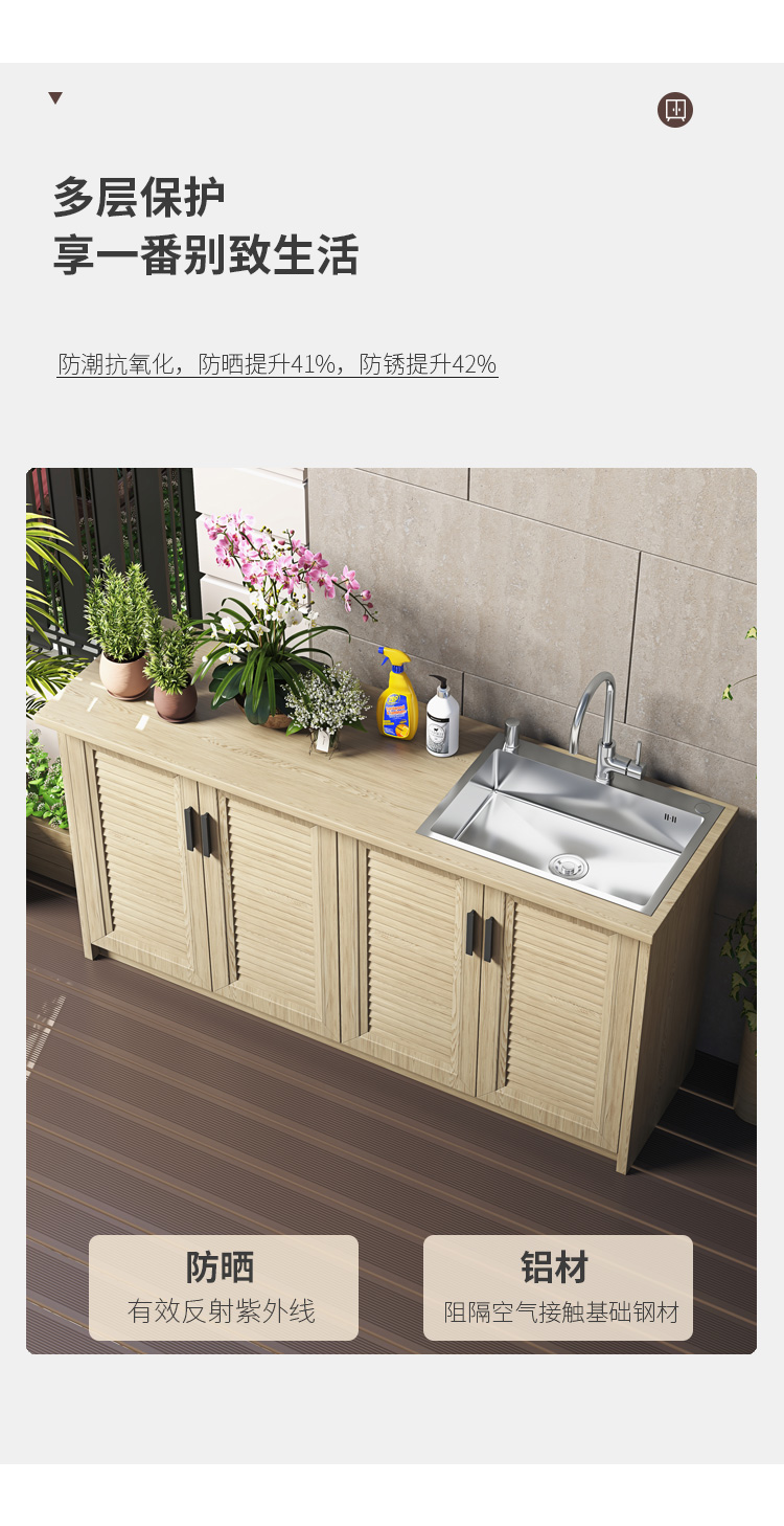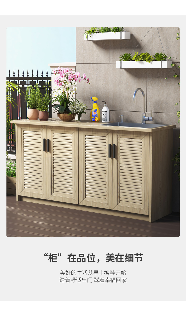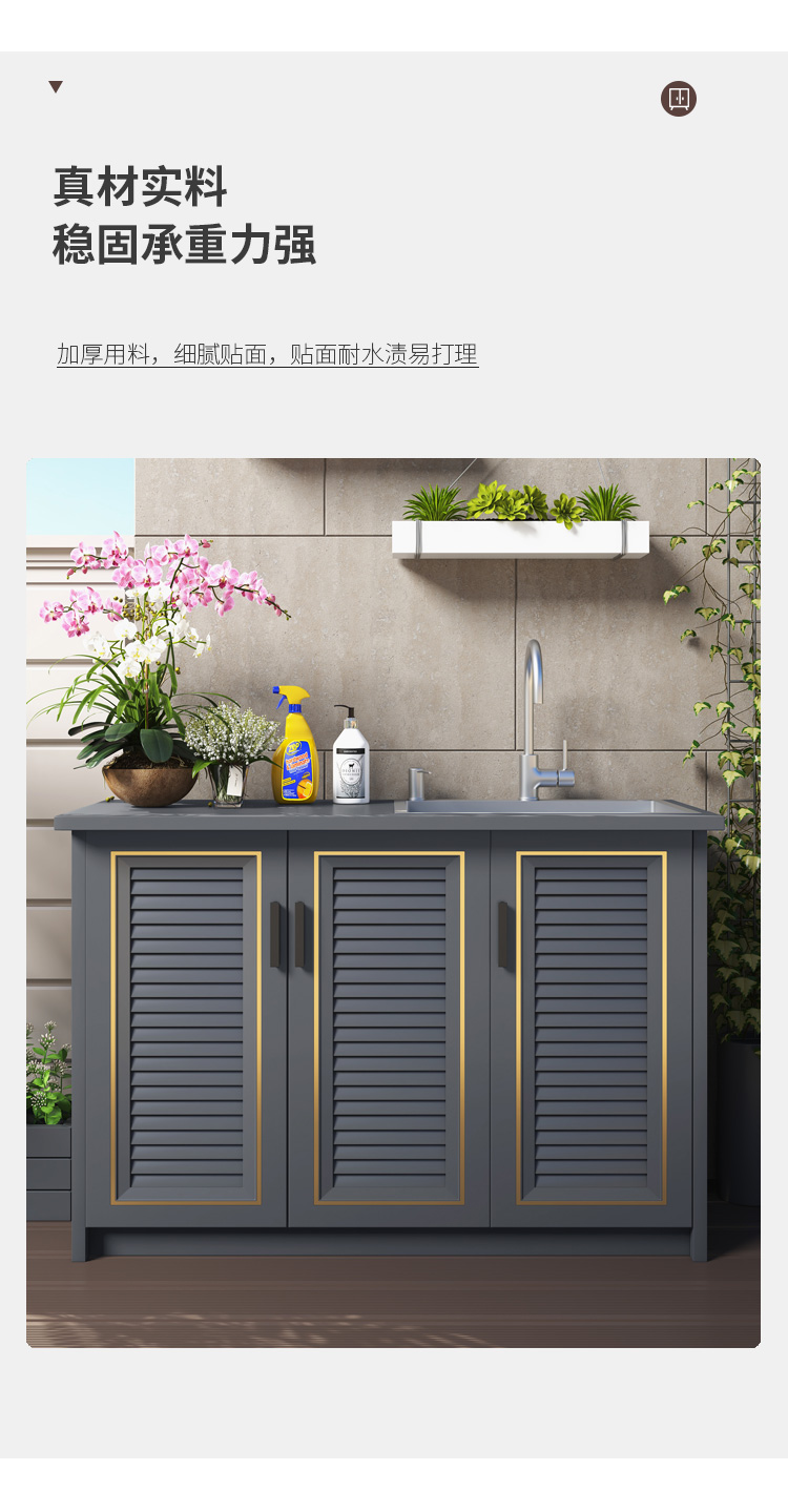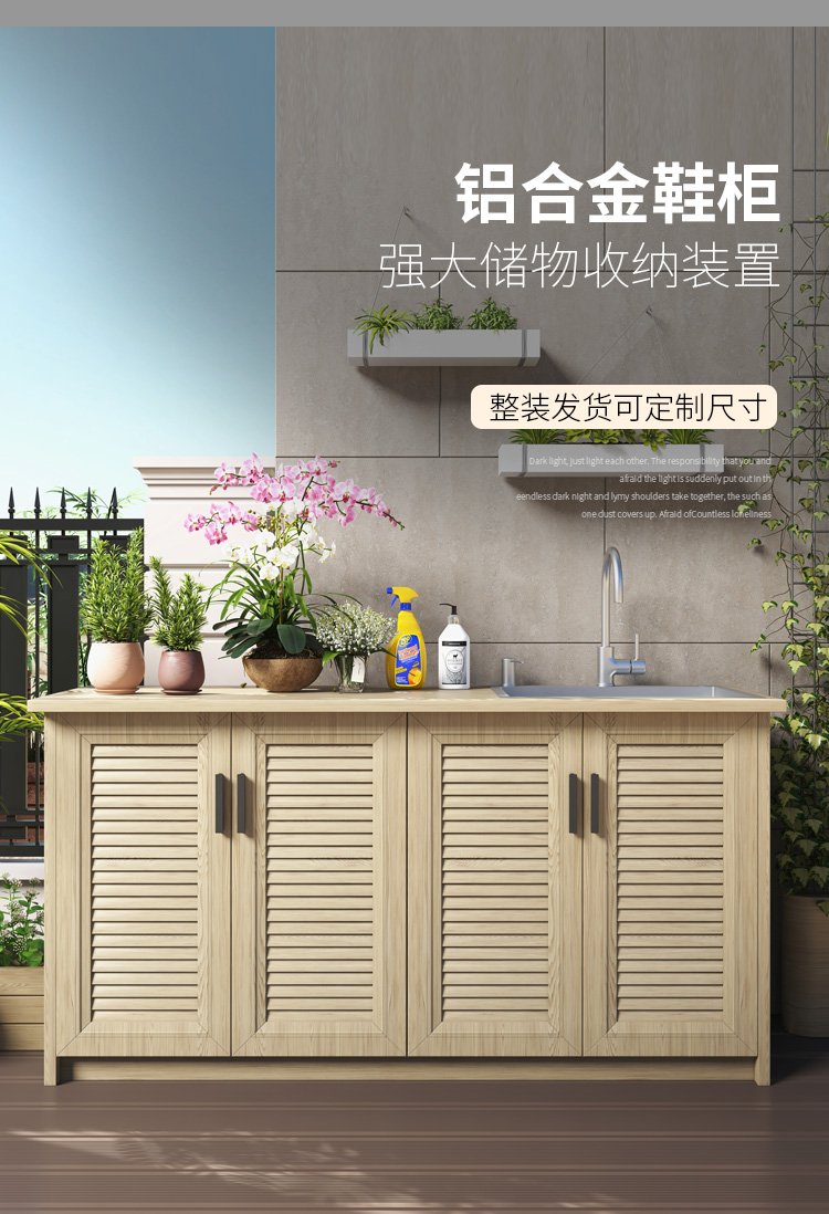 户外庭院阳台防水防晒铝合金水槽一体洗手盆柜组合家用定制浴室柜