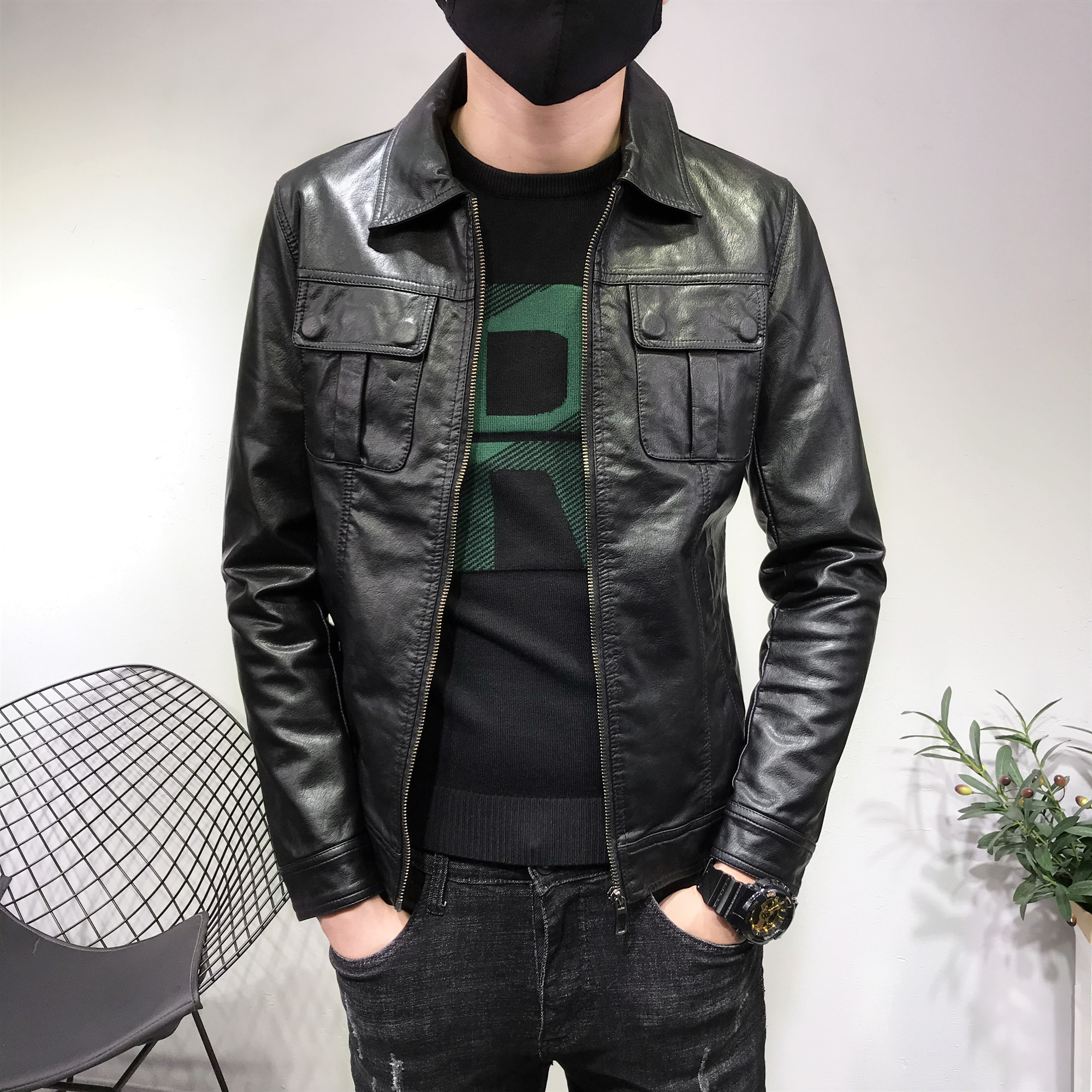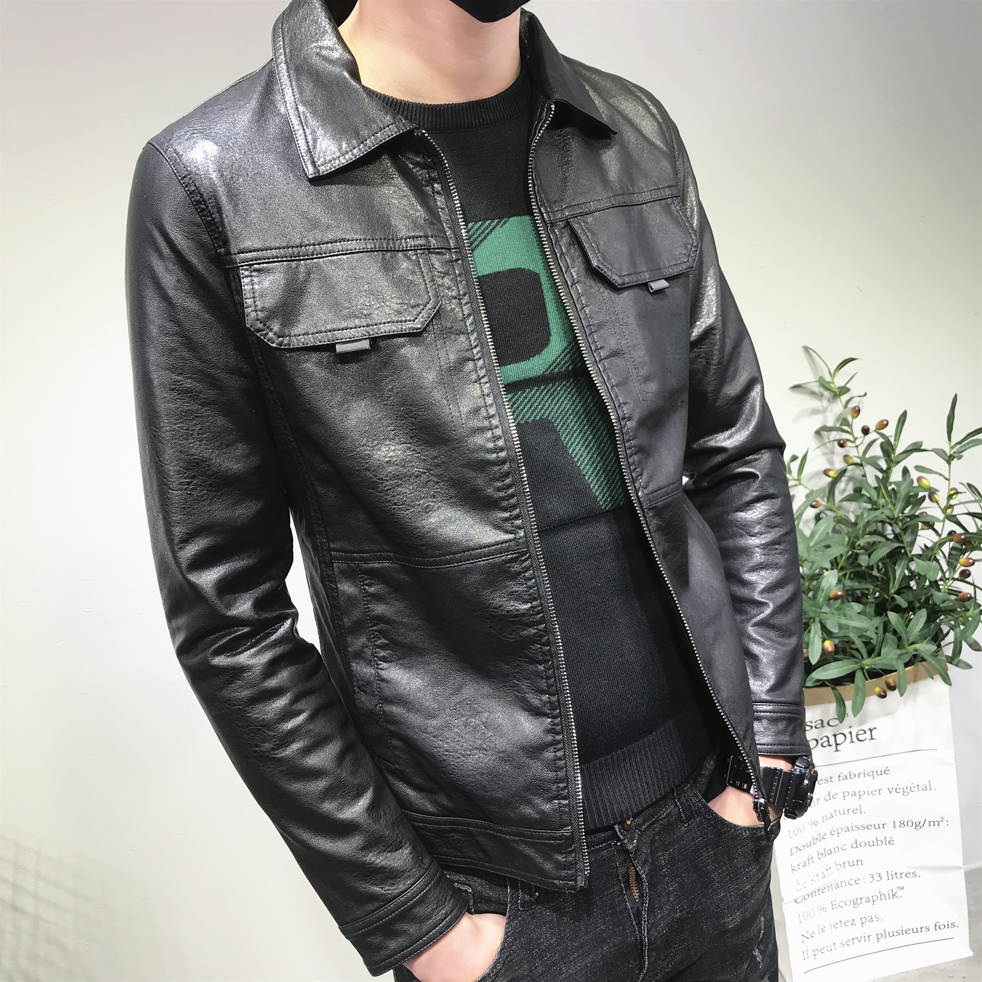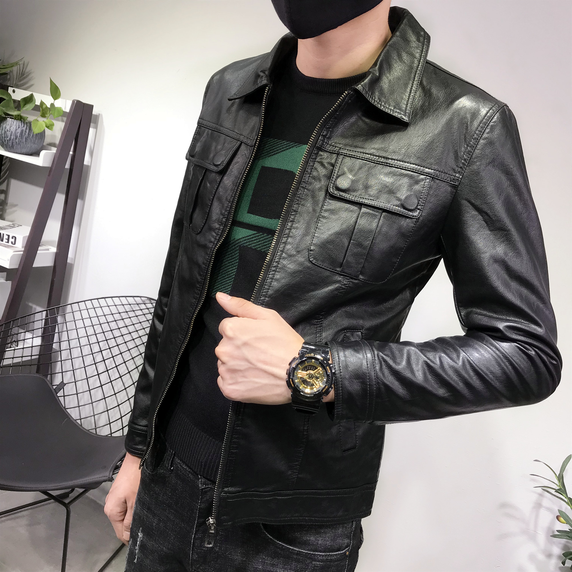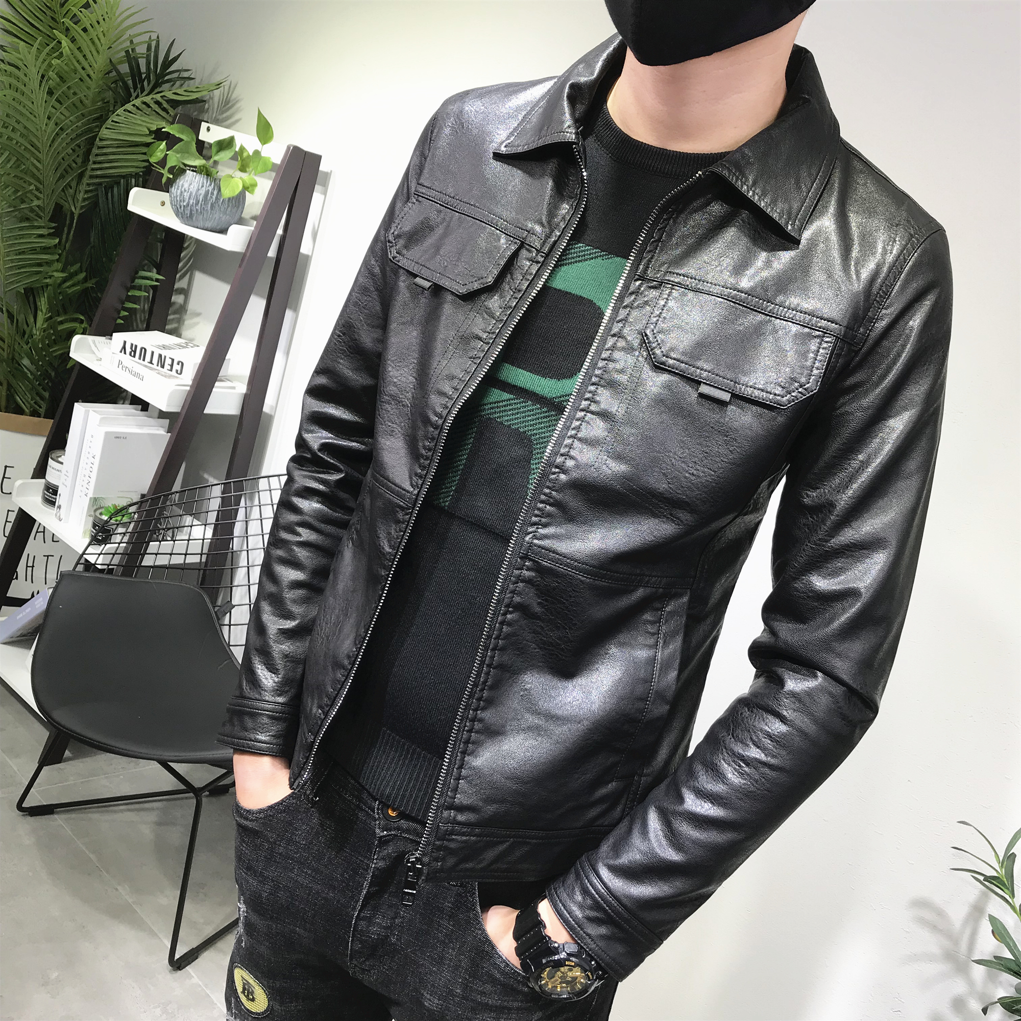翻领皮衣经典百搭潮男春秋新韩版修身拉链休闲夹克社会人网红青年