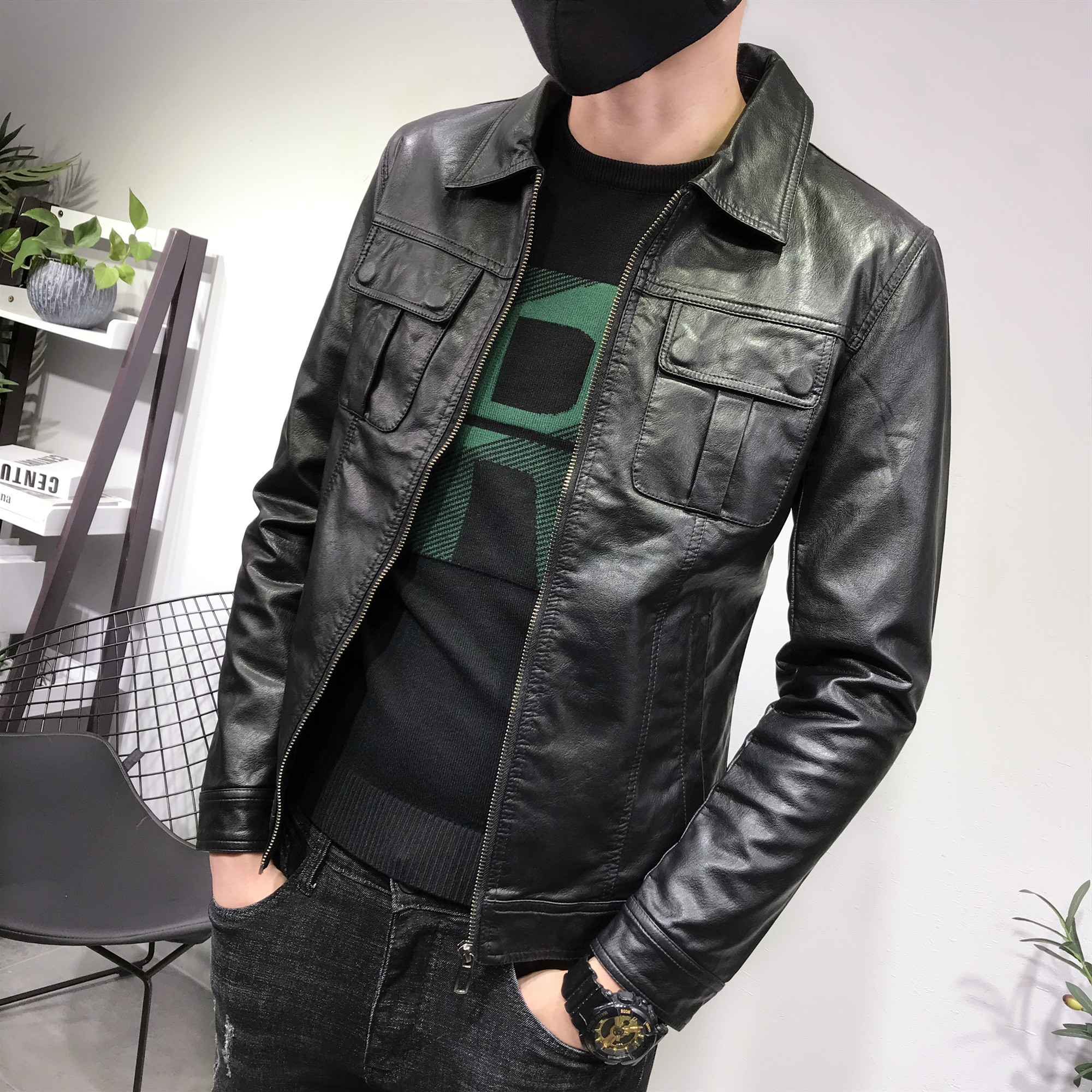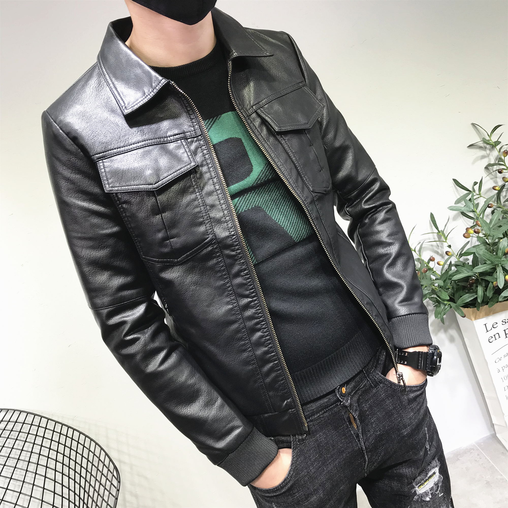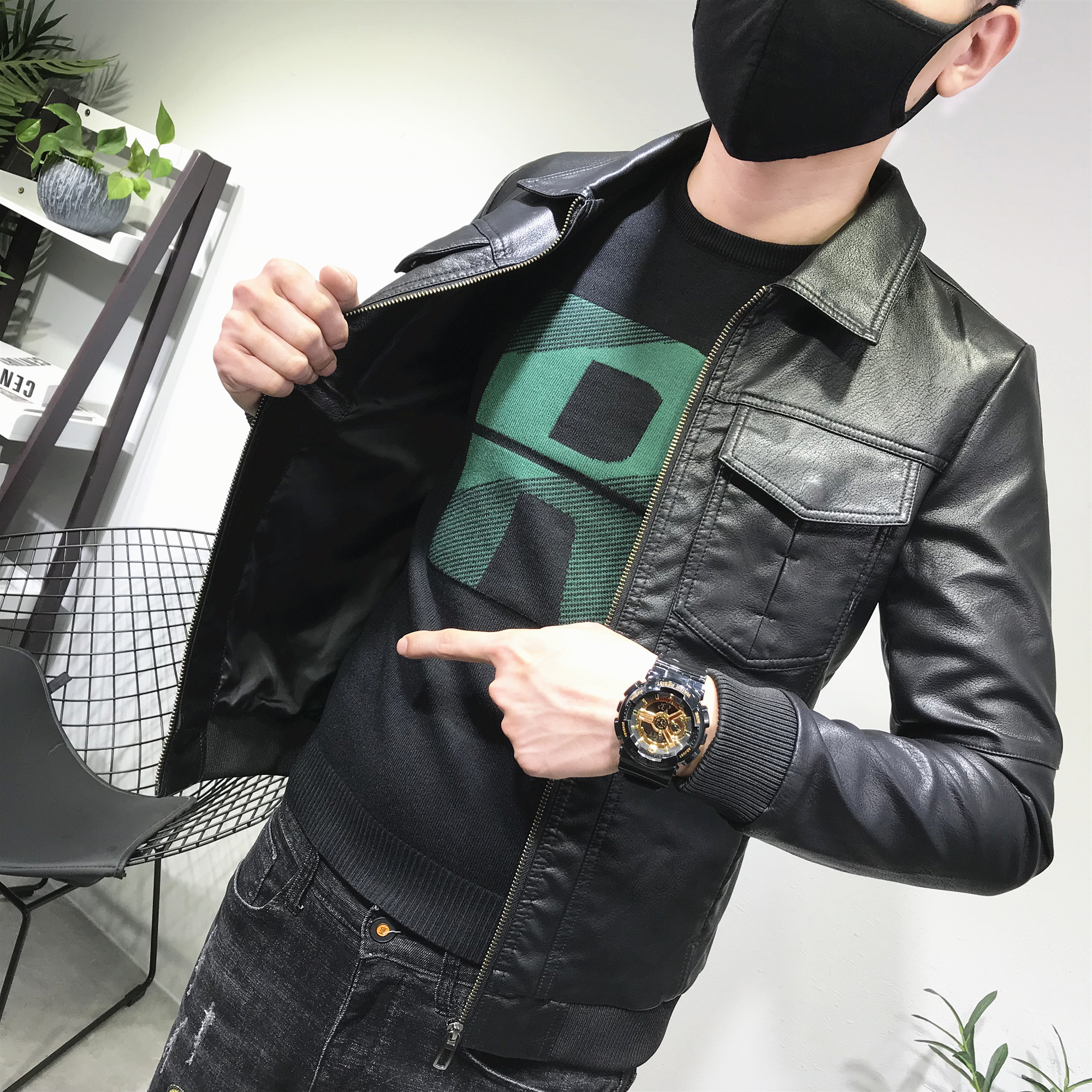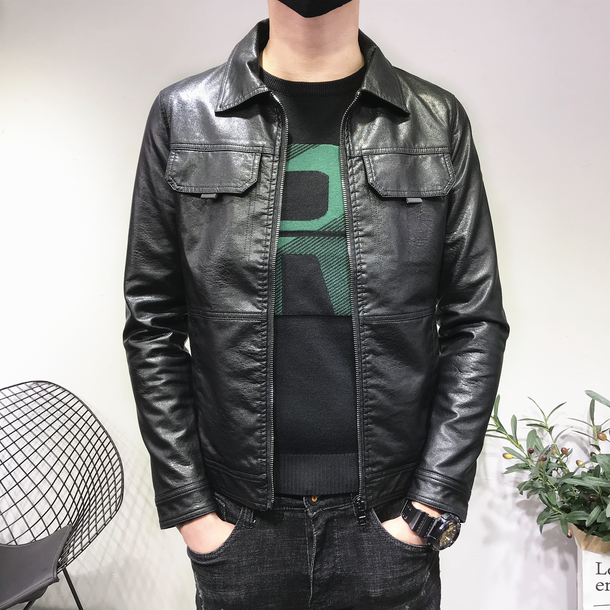 翻领皮衣经典百搭潮男春秋新韩版修身拉链休闲夹克社会人网红青年