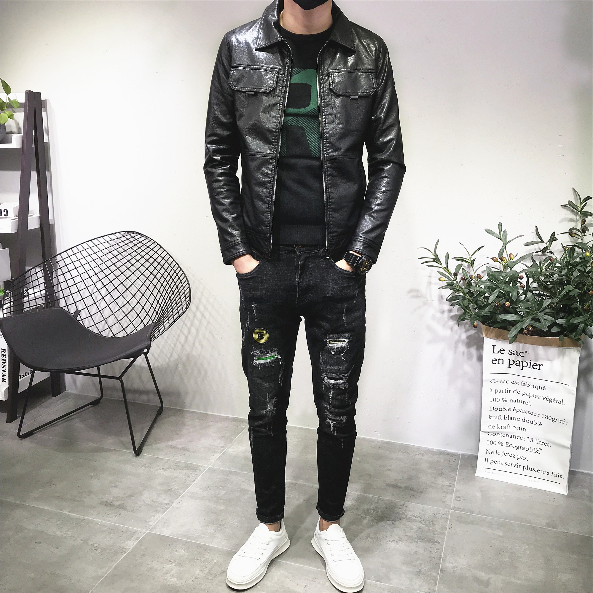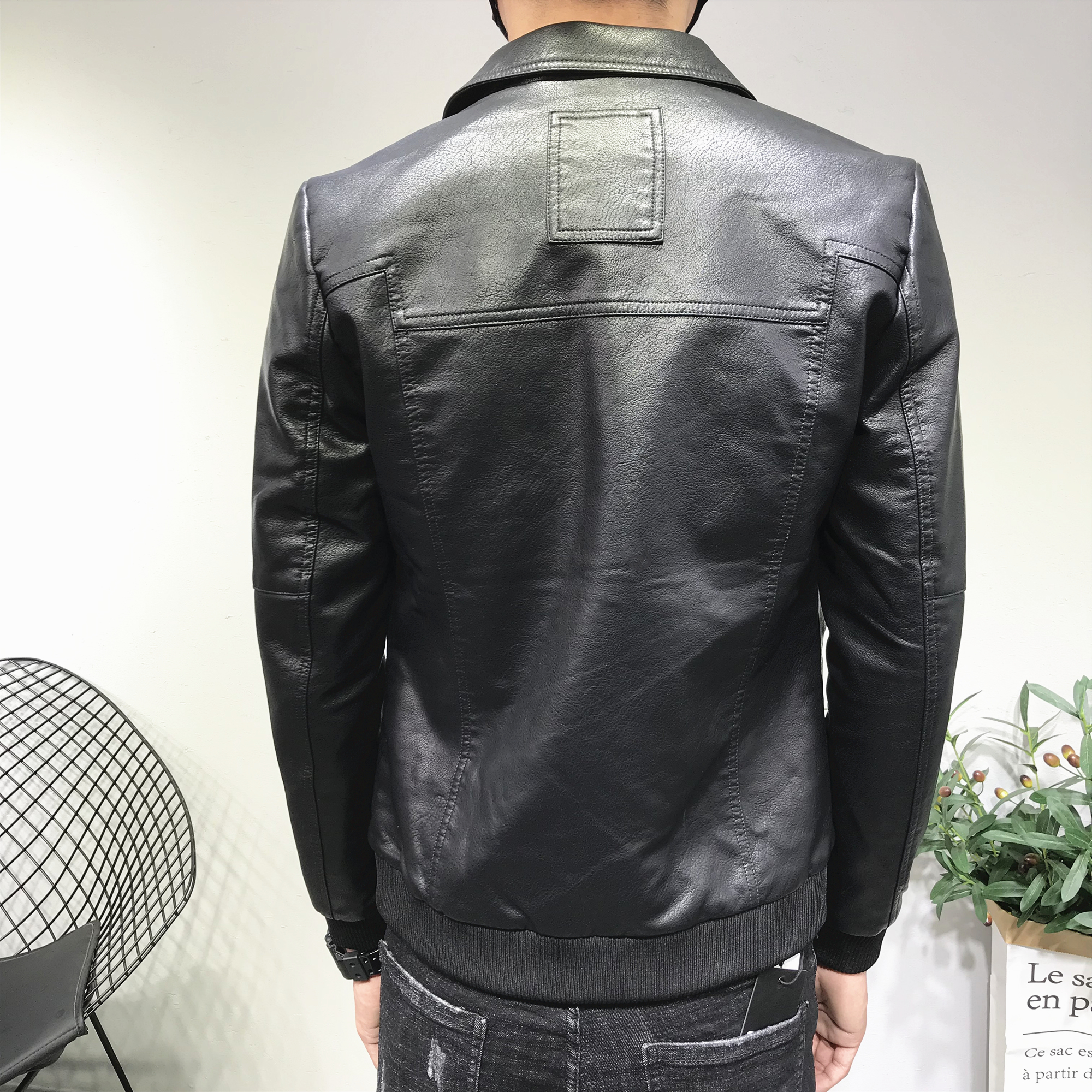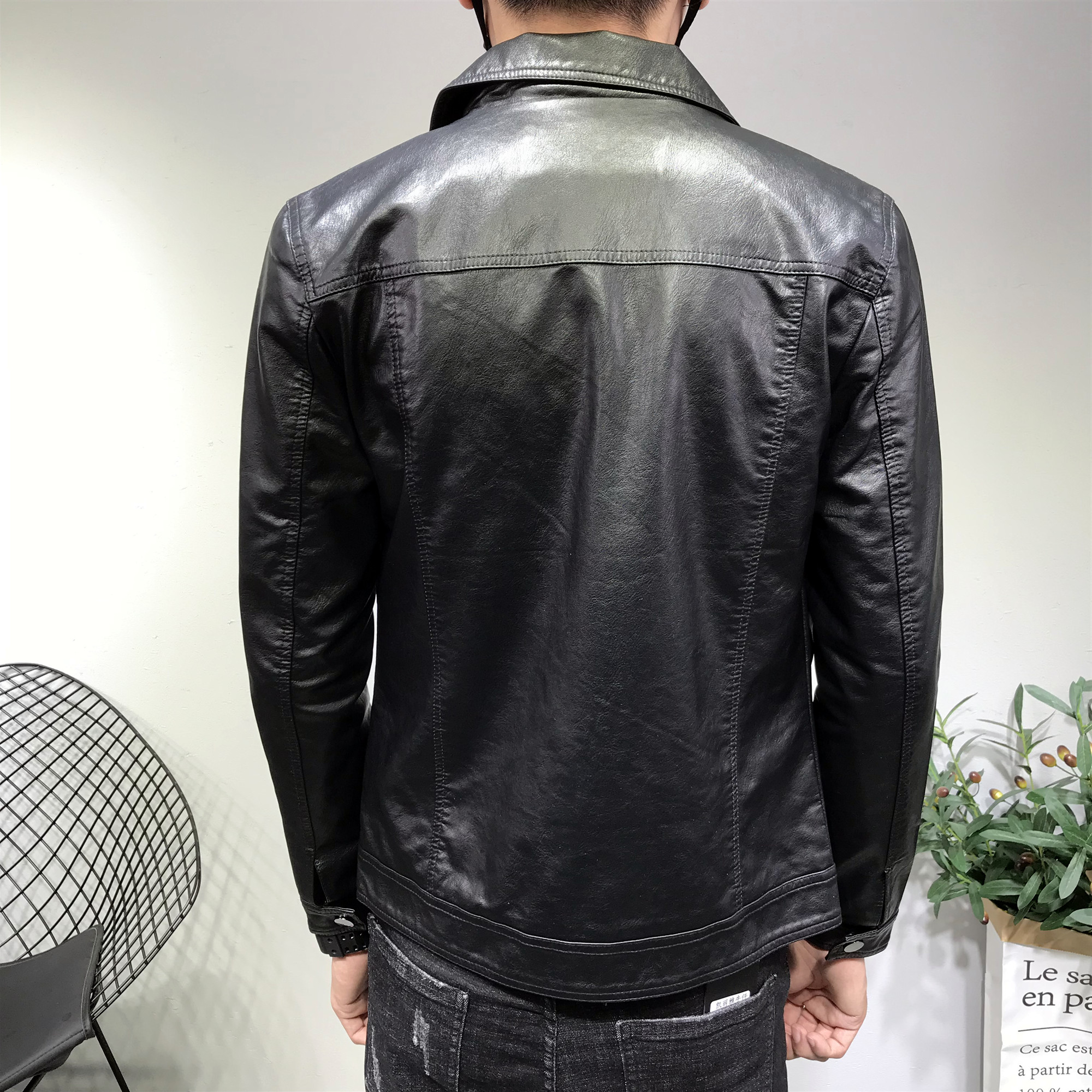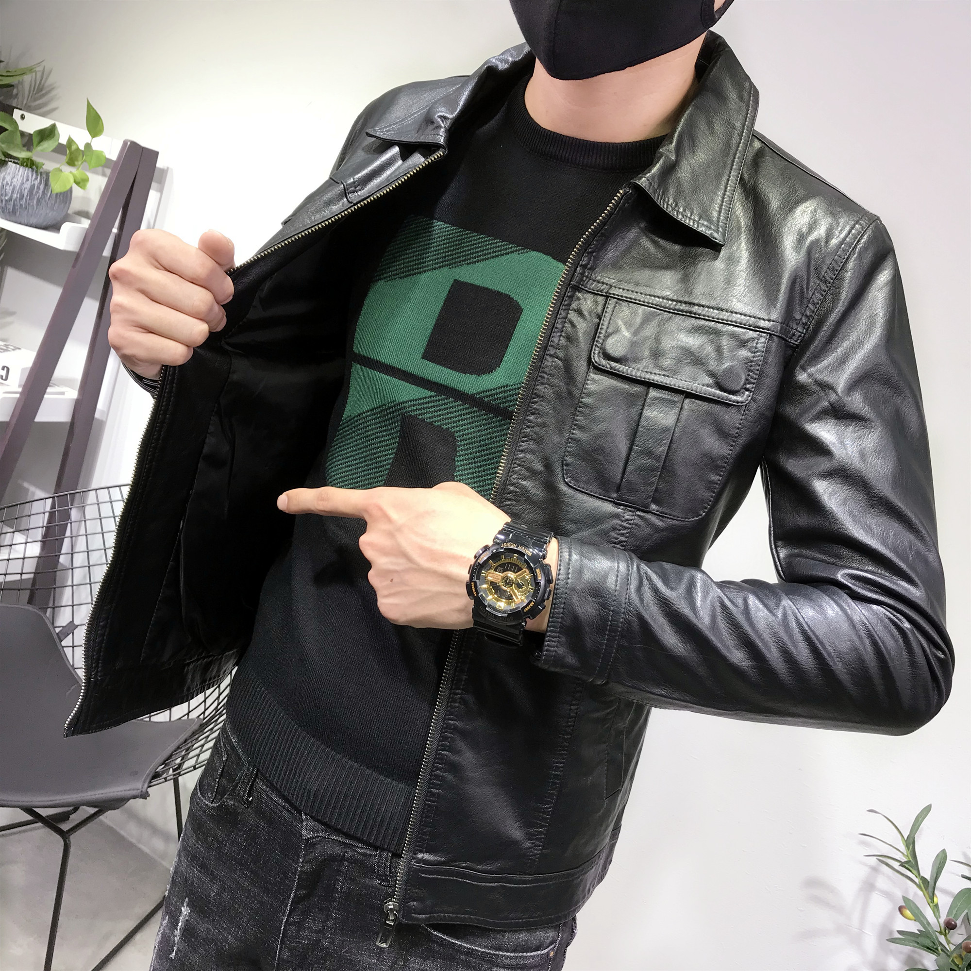 翻领皮衣经典百搭潮男春秋新韩版修身拉链休闲夹克社会人网红青年