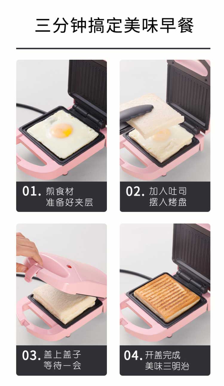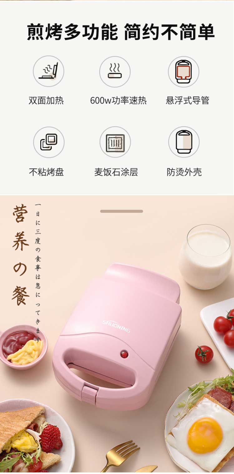 烁宁三明治早餐机家用小型烤面包吐司机2023年新款轻食早餐热压机