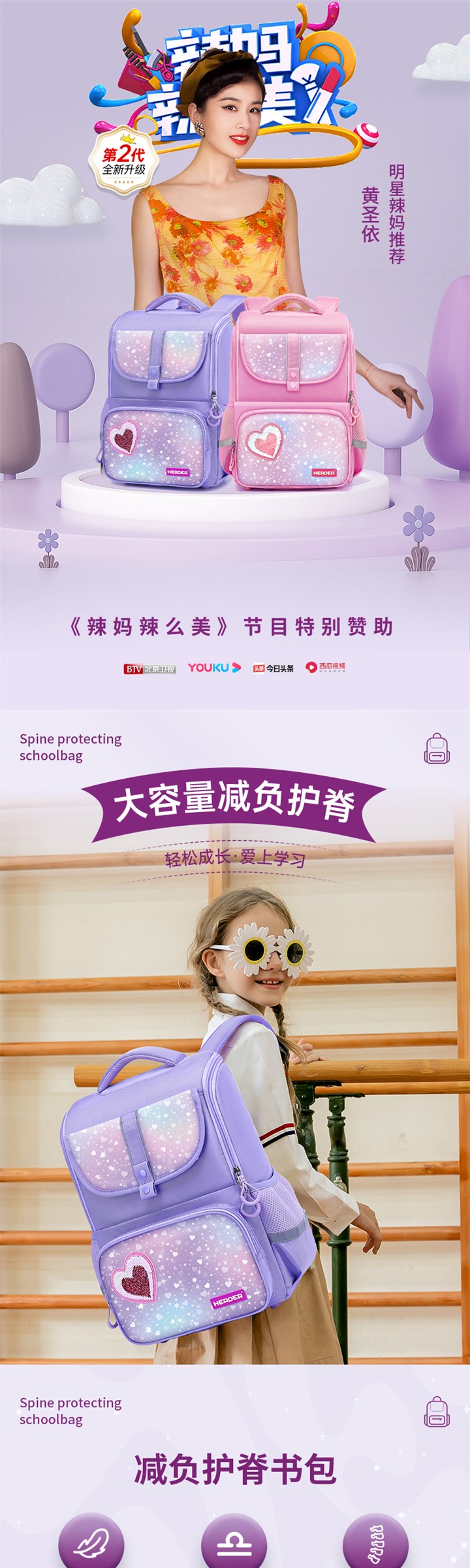 赫登尔儿童书包女小学生2024新款一二三至六年级减负护脊超轻背包