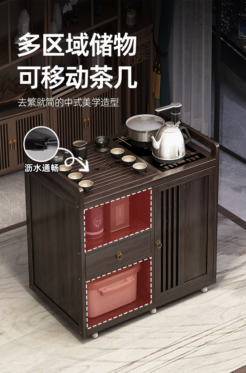 茶几客厅家用新中式茶桌多功能茶水柜茶具茶台一整套移动茶台边几