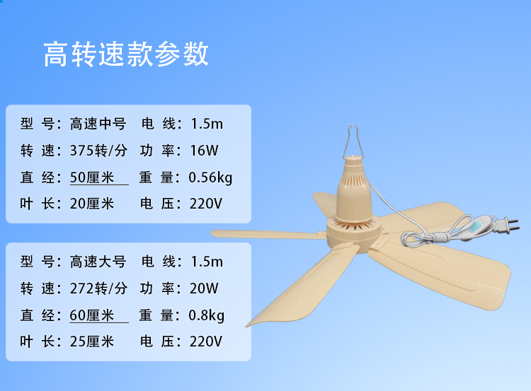直销高转速中大号高速大风力静音小型家用蚊帐吊扇宿舍电风扇床上