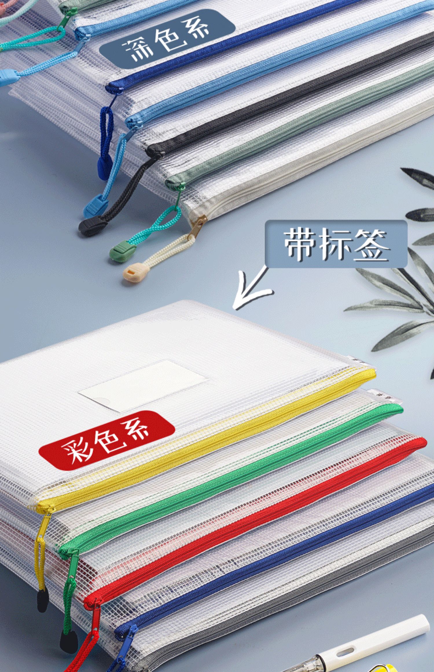 A4文件袋科目分类袋书袋A5透明文件收纳袋拉链式档案塑料办公学生专用初中生小学生学科分类袋试卷收纳袋定制