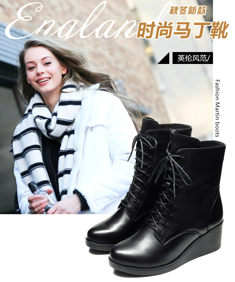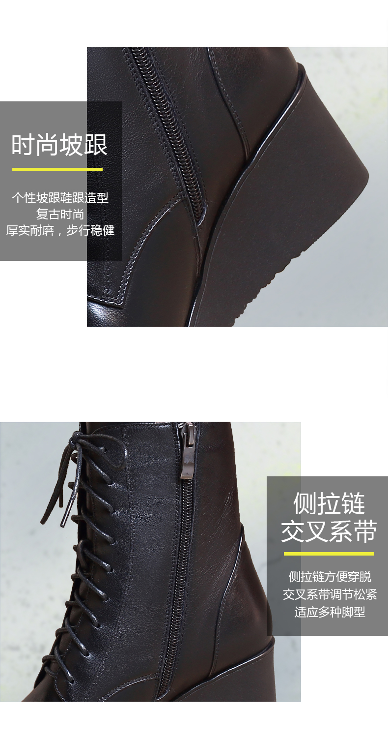 2025秋冬新款真皮马丁靴高跟女靴坡跟显瘦短靴女单鞋鞋靴女士靴子