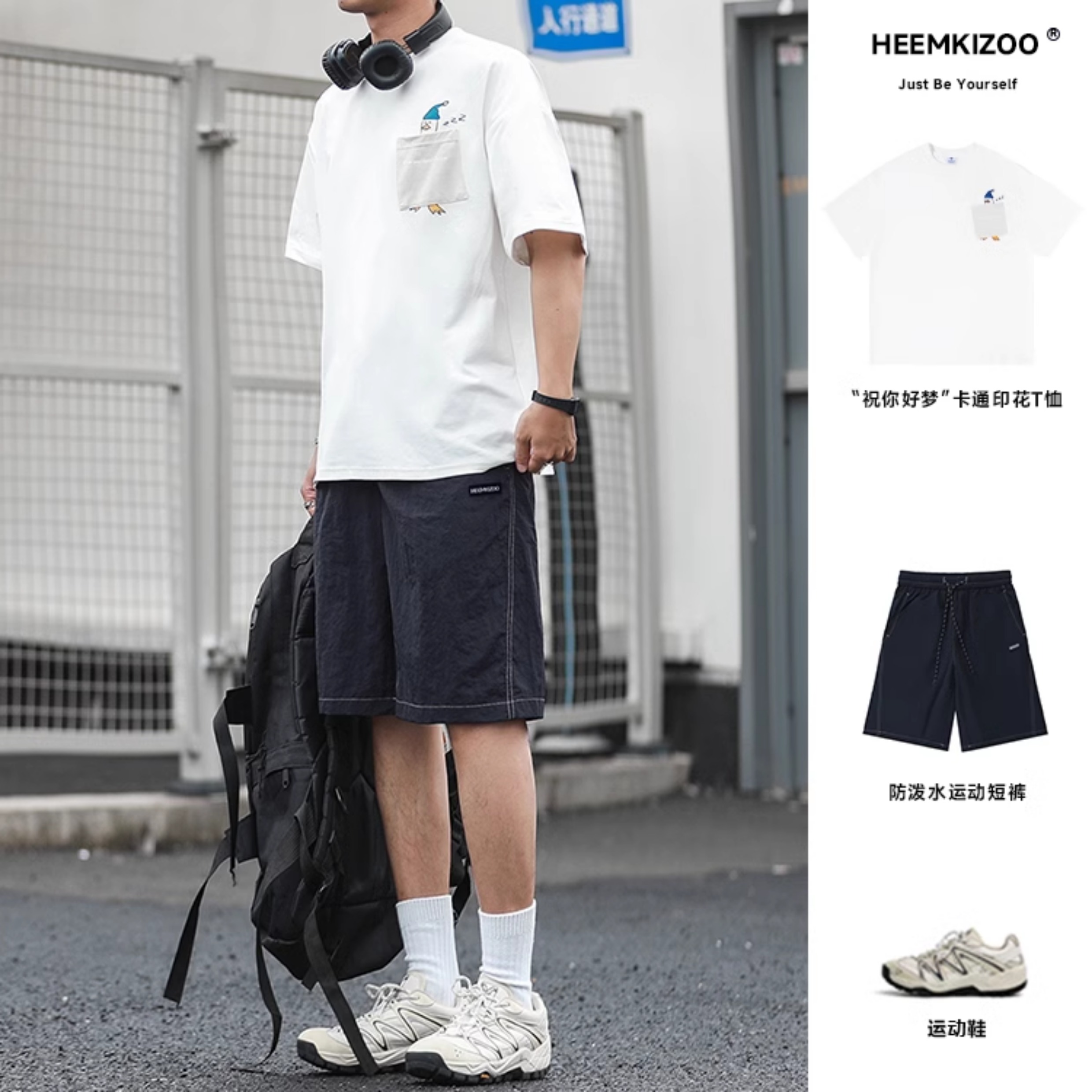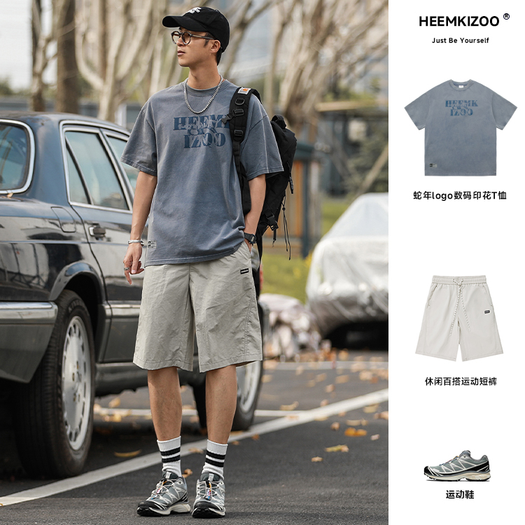 嘿马七作日系复古夏季户外运动短裤男士宽松休闲直筒五分裤子潮牌