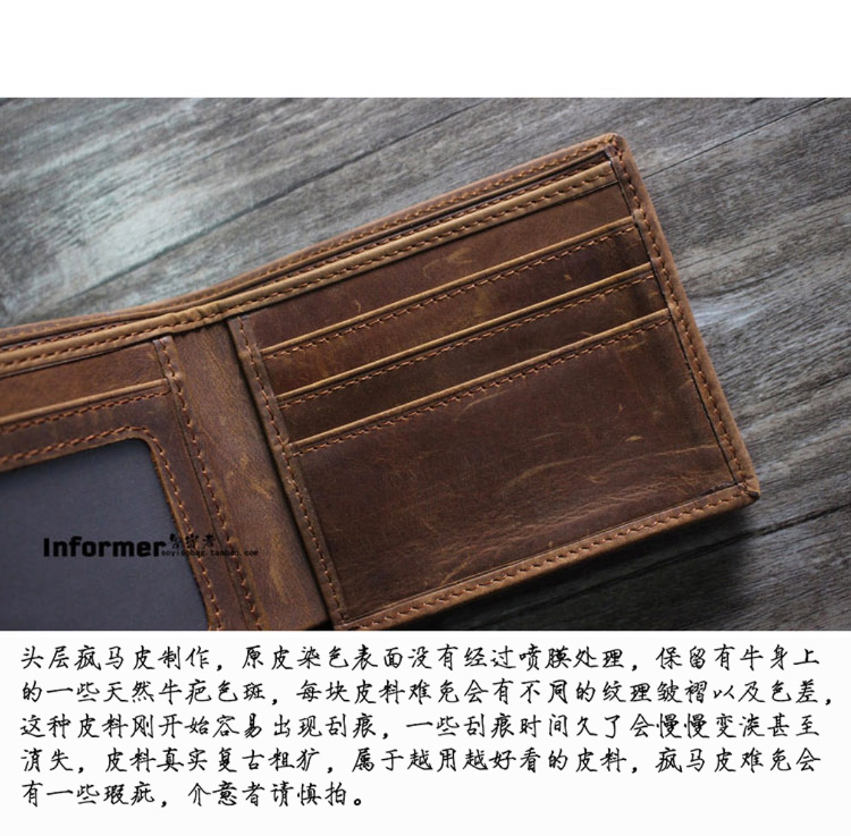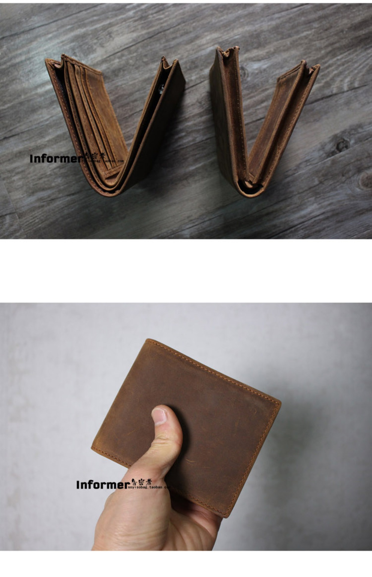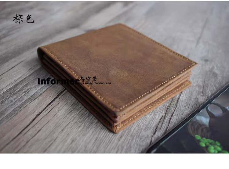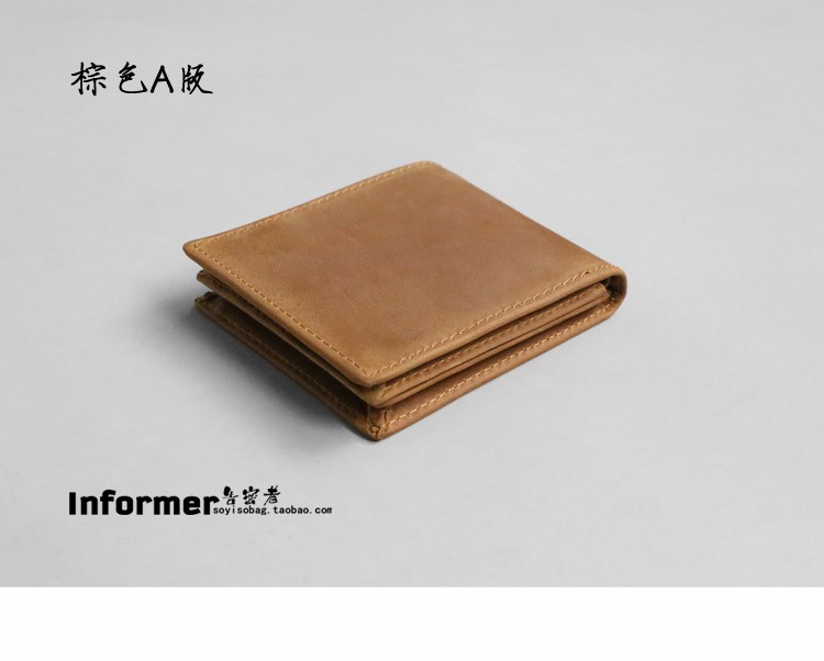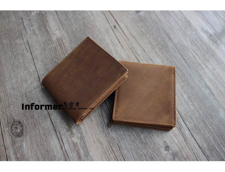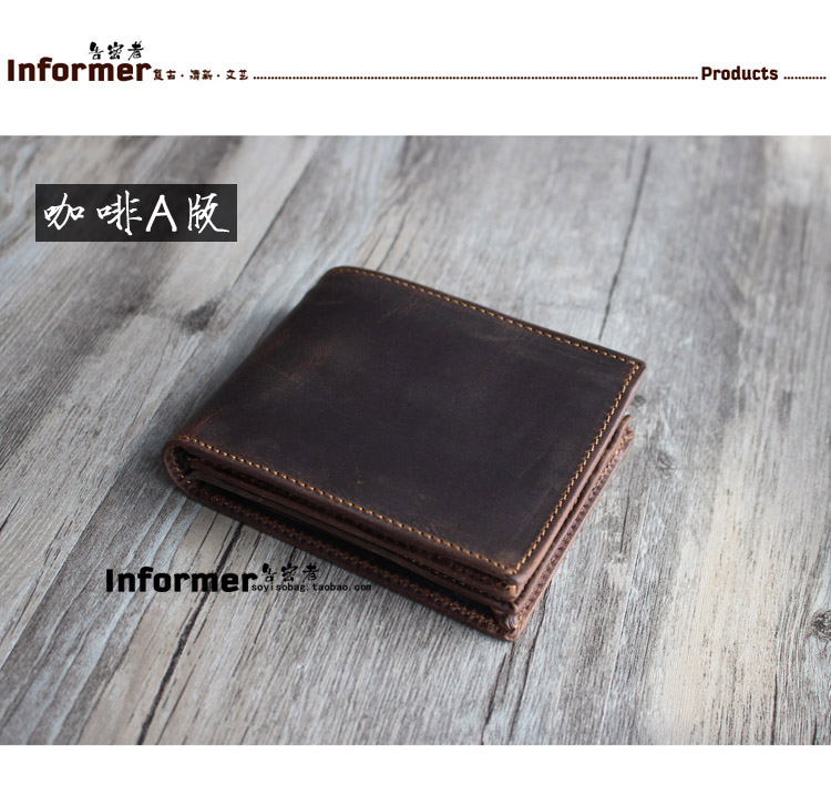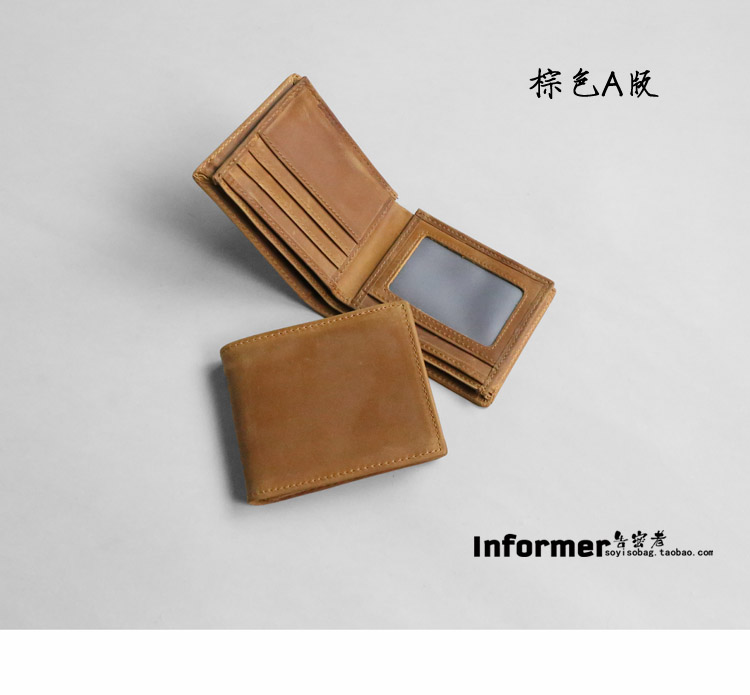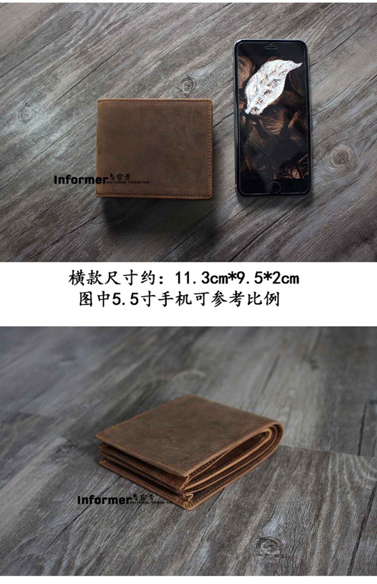 告密者 疯马皮简约短款钱包头层牛皮复古男女大容量卡包钱夹真皮