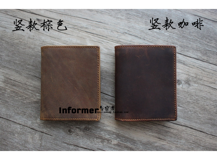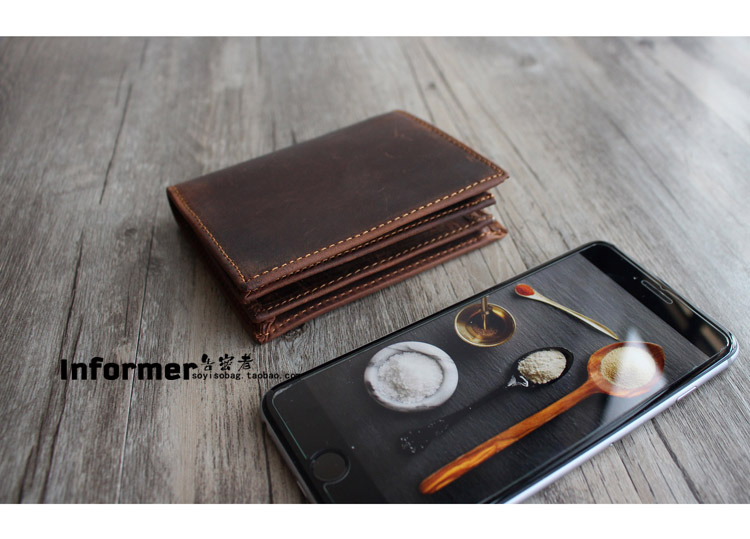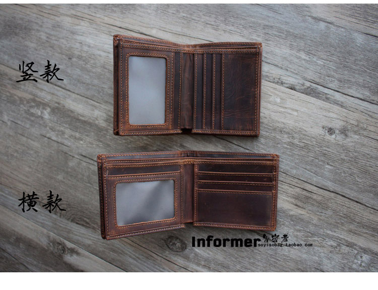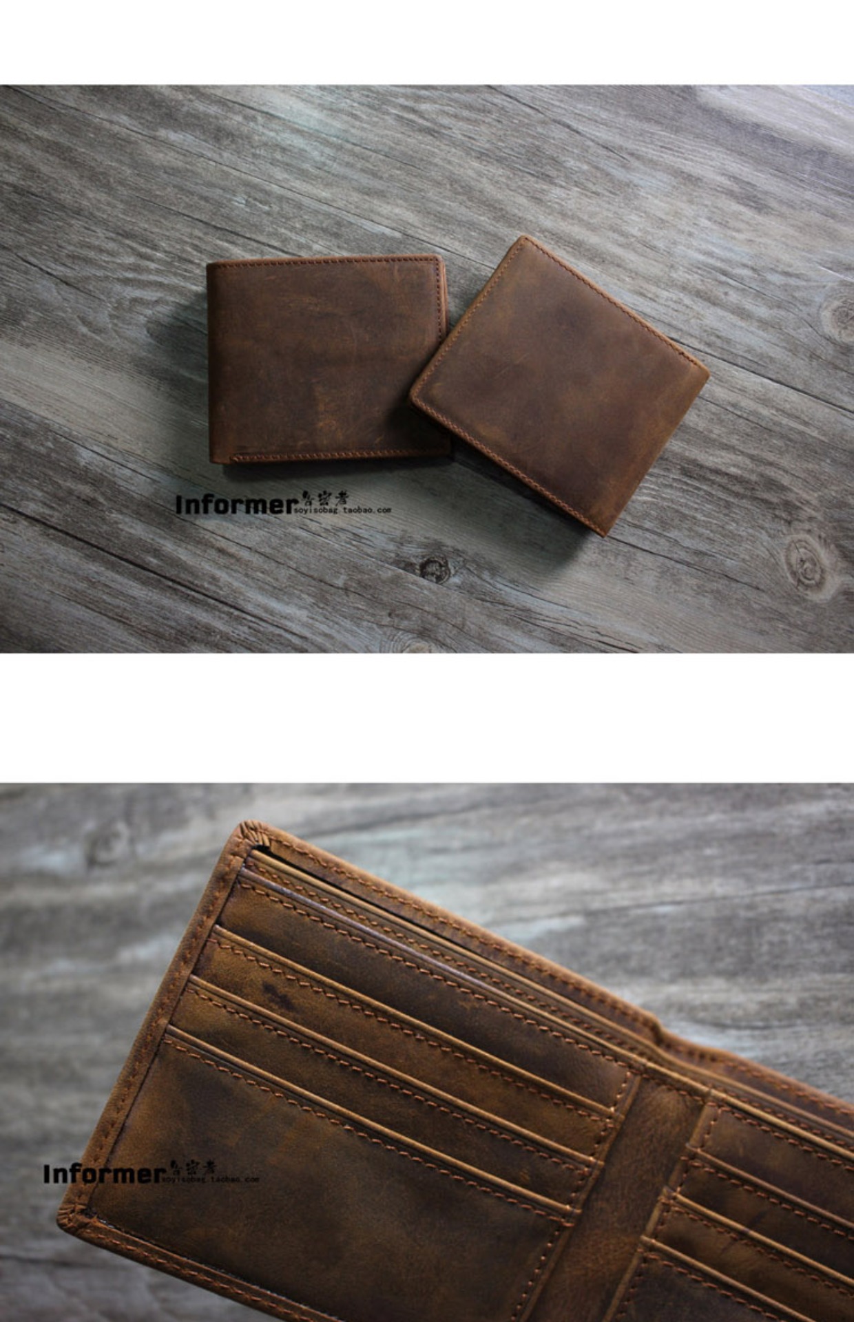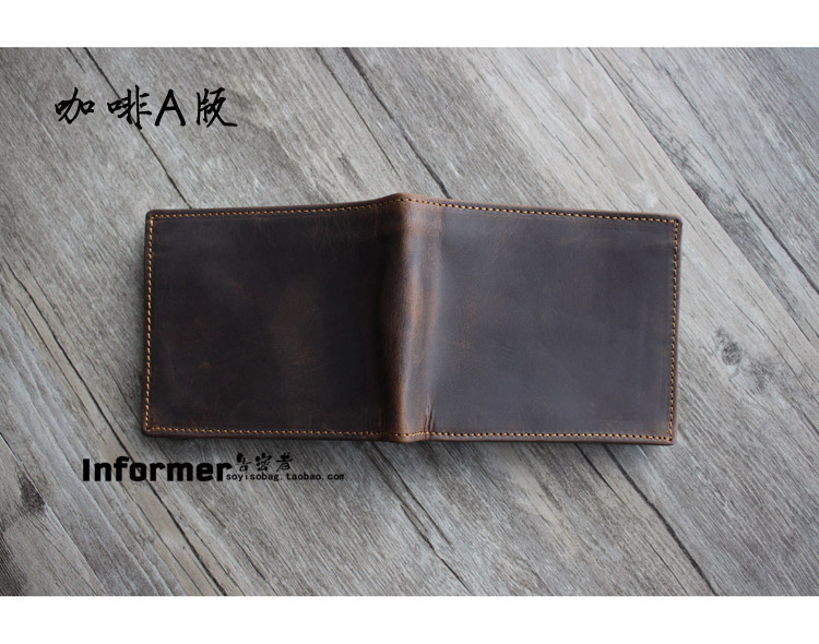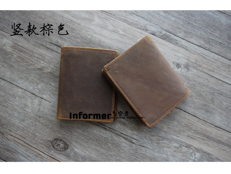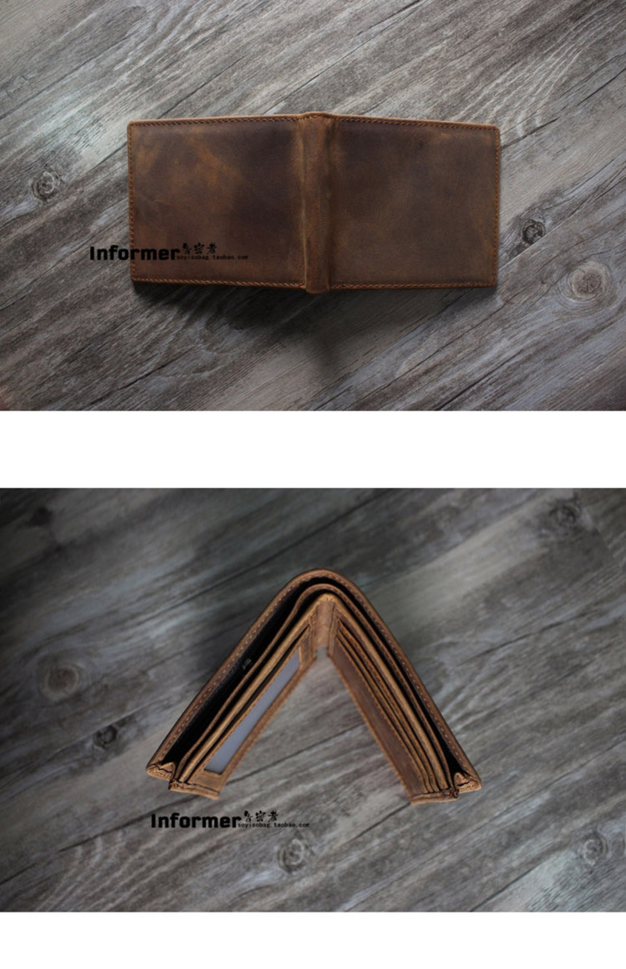 告密者 疯马皮简约短款钱包头层牛皮复古男女大容量卡包钱夹真皮