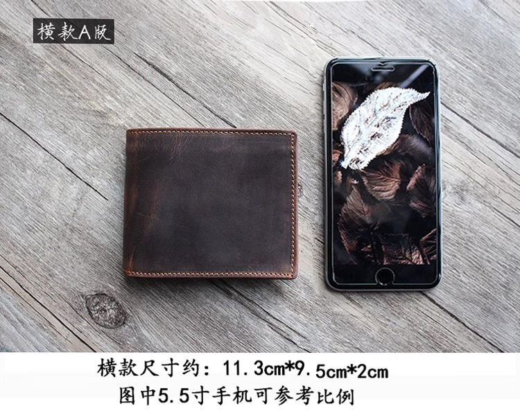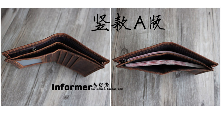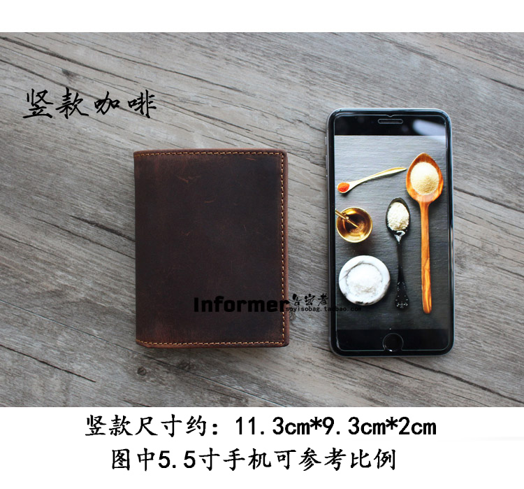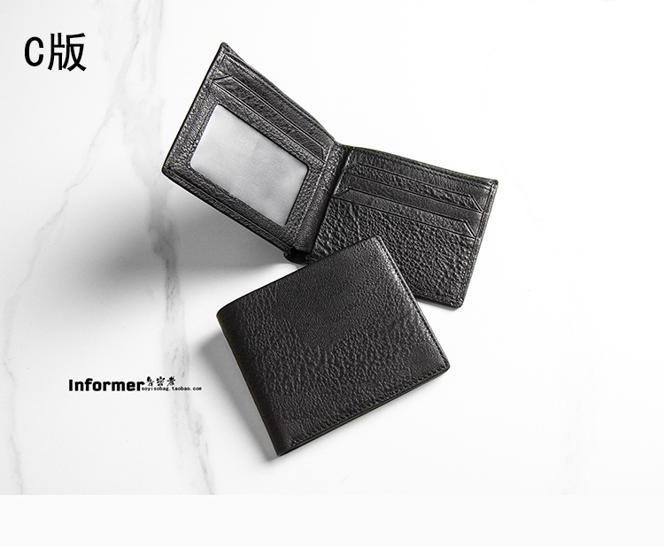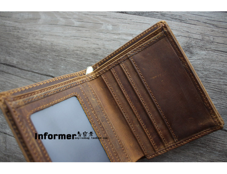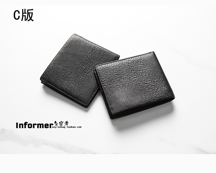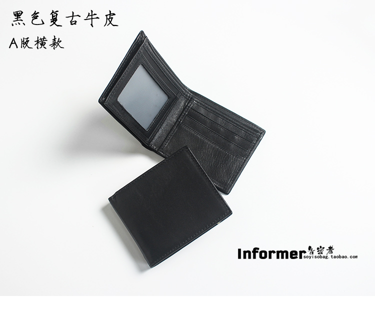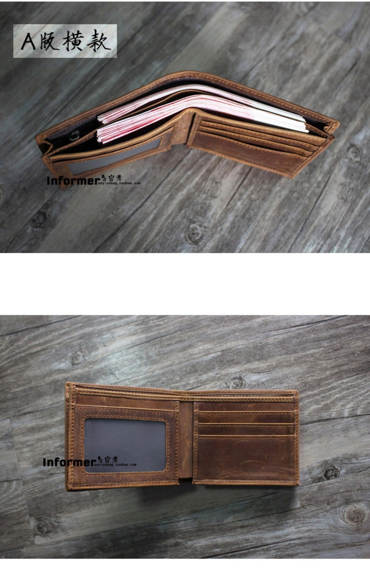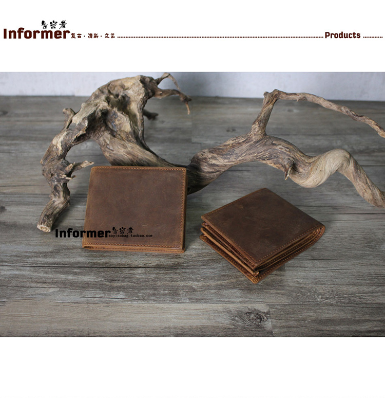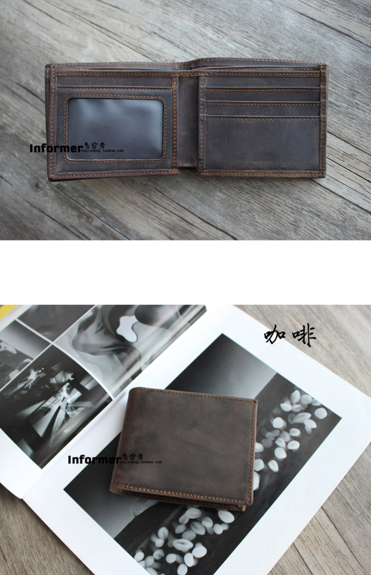告密者 疯马皮简约短款钱包头层牛皮复古男女大容量卡包钱夹真皮