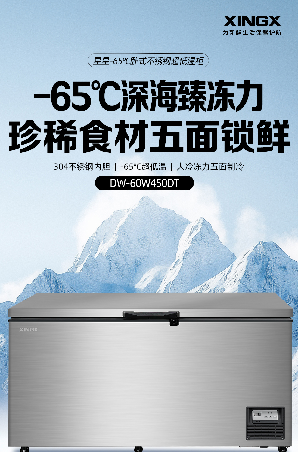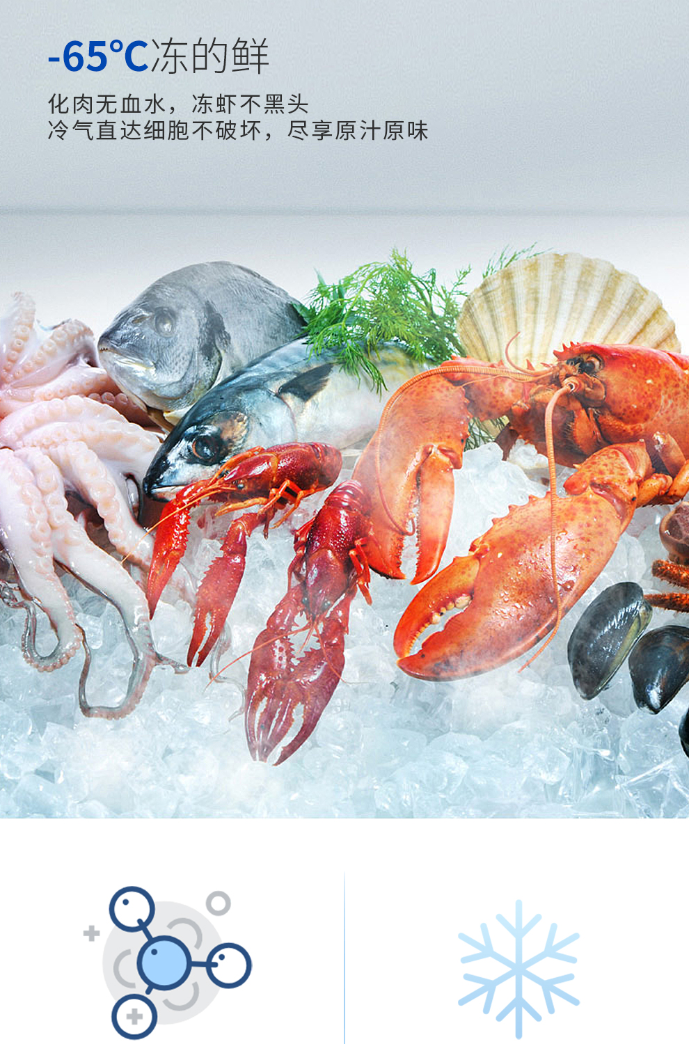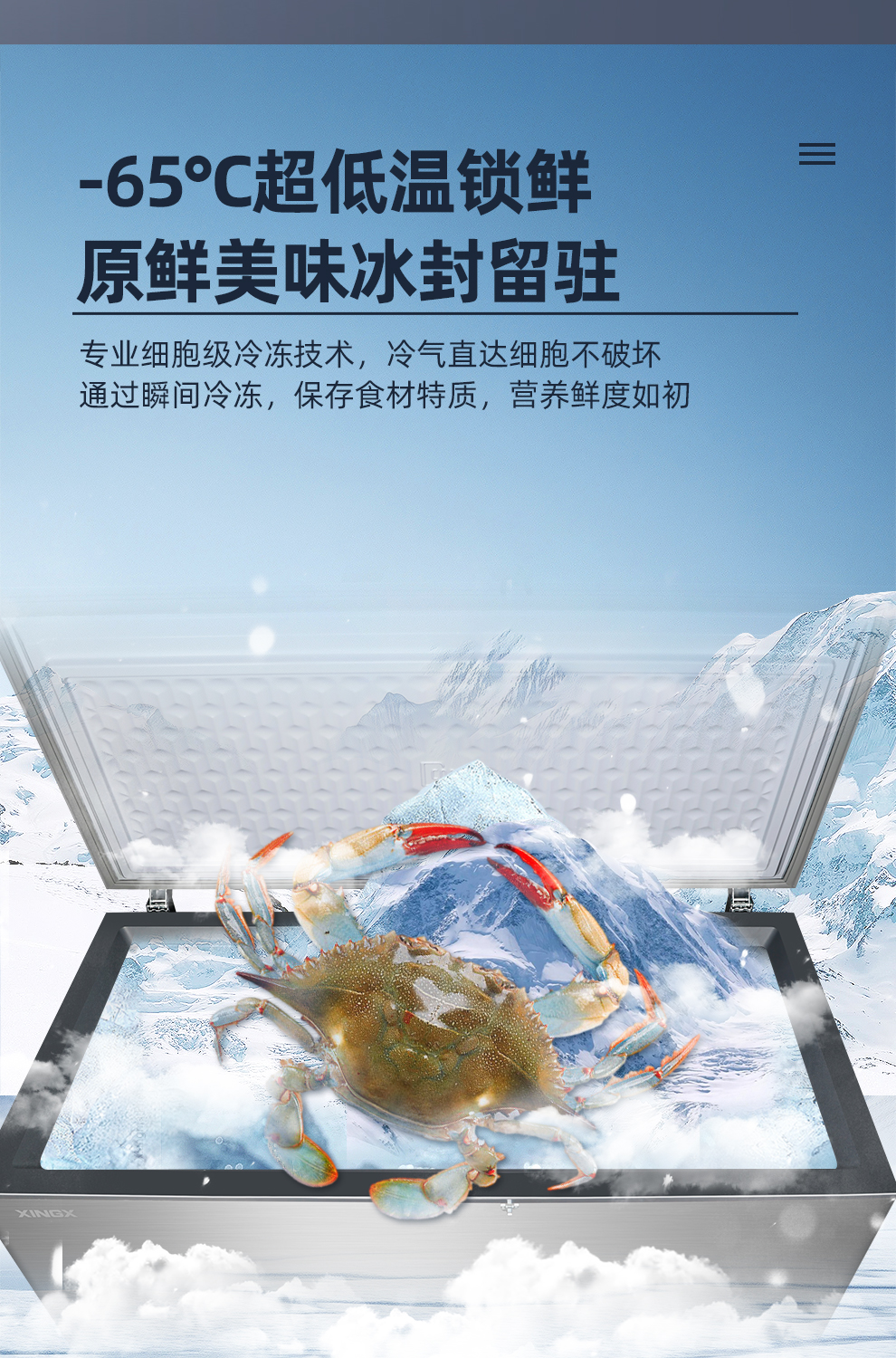 星星超低温冰柜家商用零下-65°C度冷冻海鲜速冻全铜管不锈钢冷柜