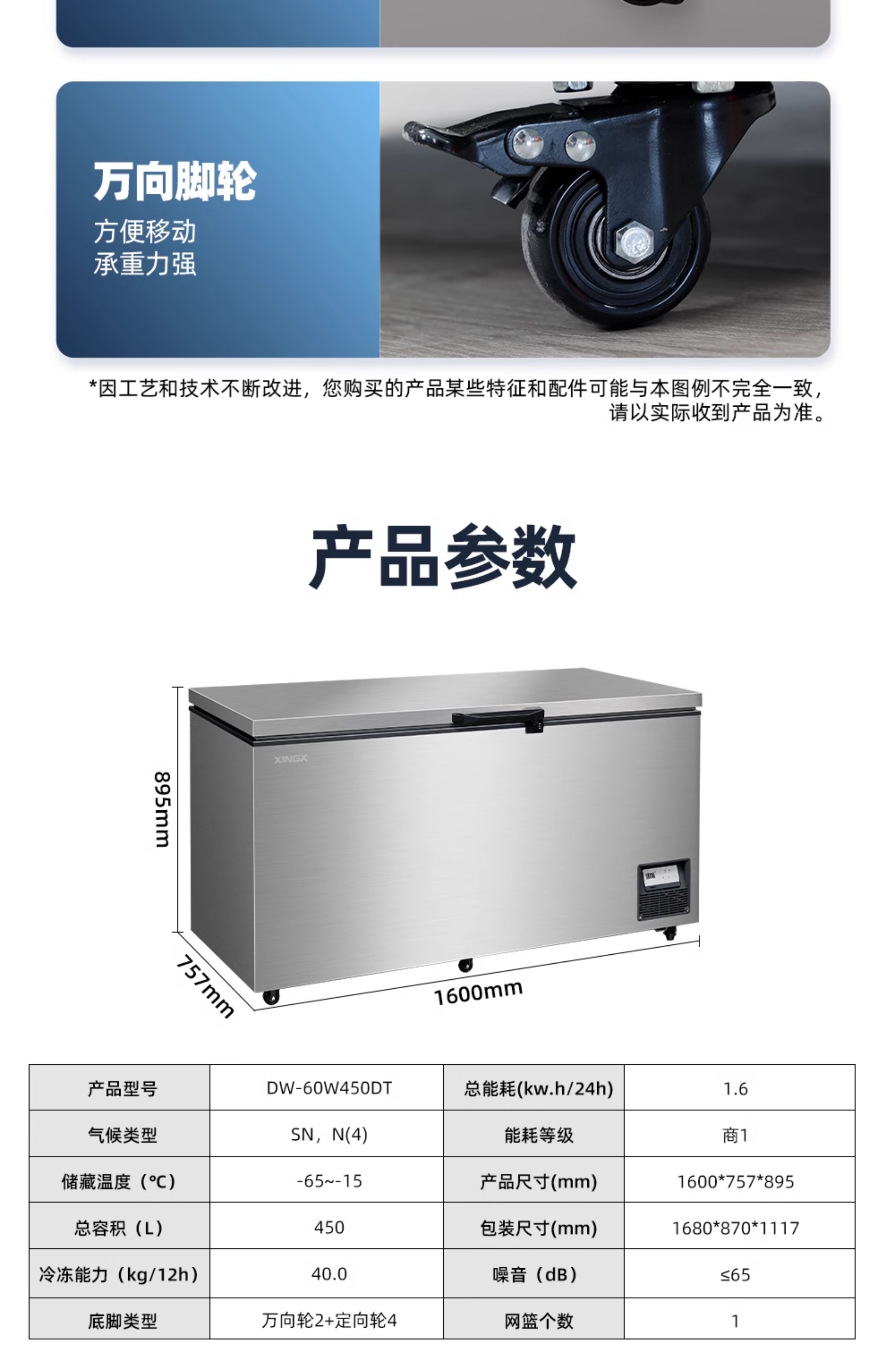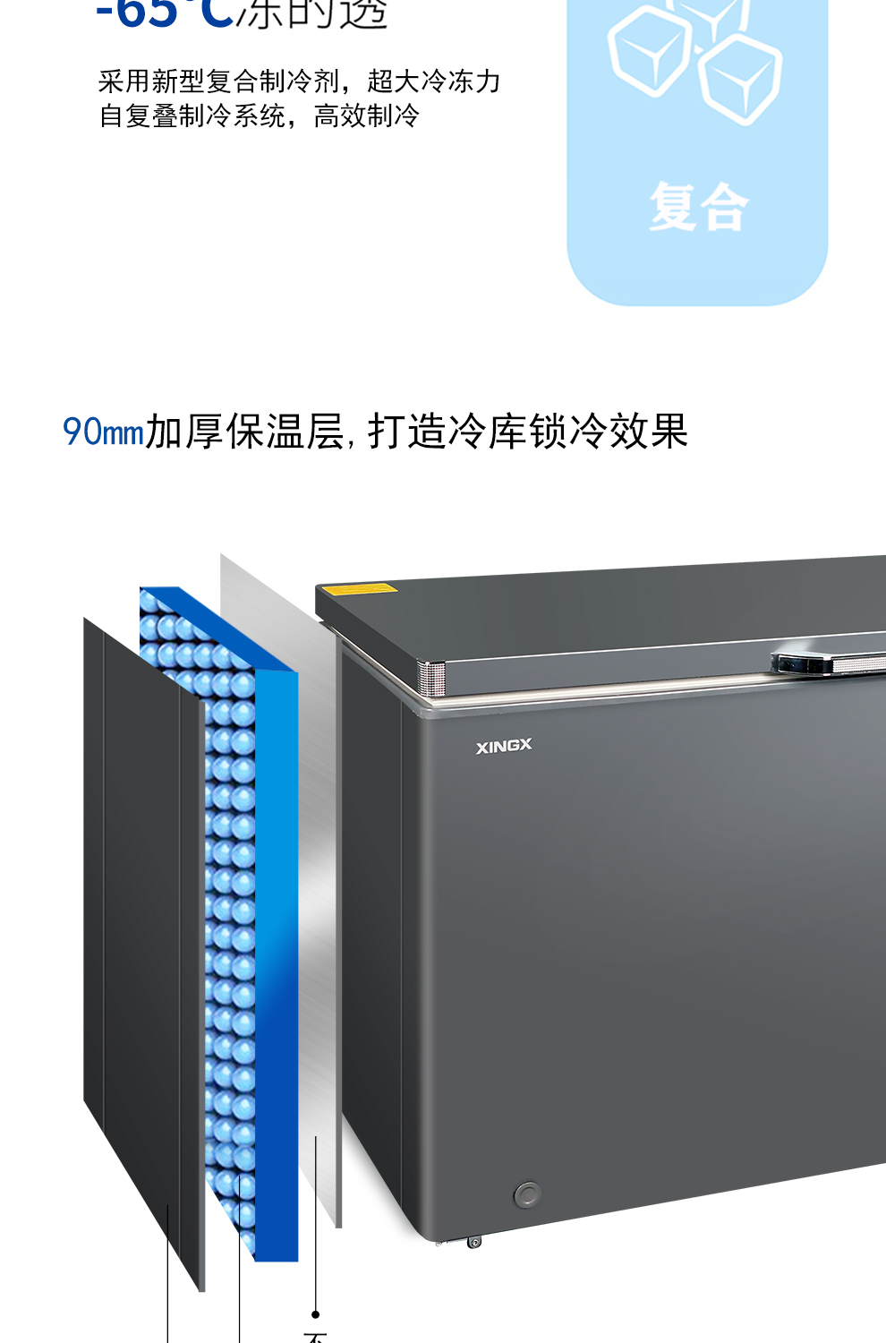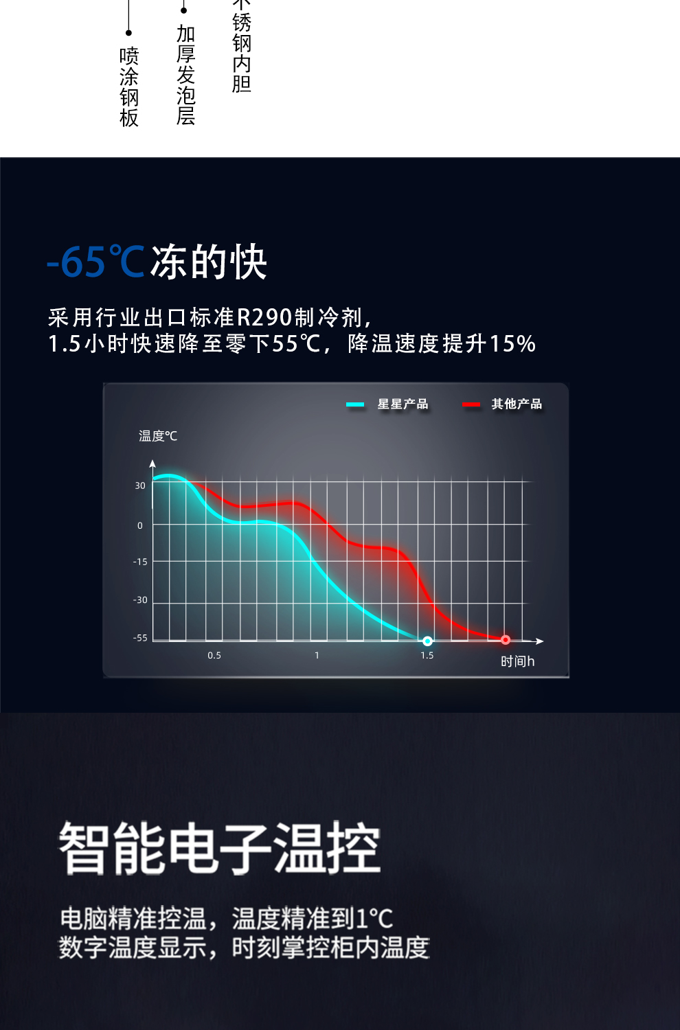 星星超低温冰柜家商用零下-65°C度冷冻海鲜速冻全铜管不锈钢冷柜