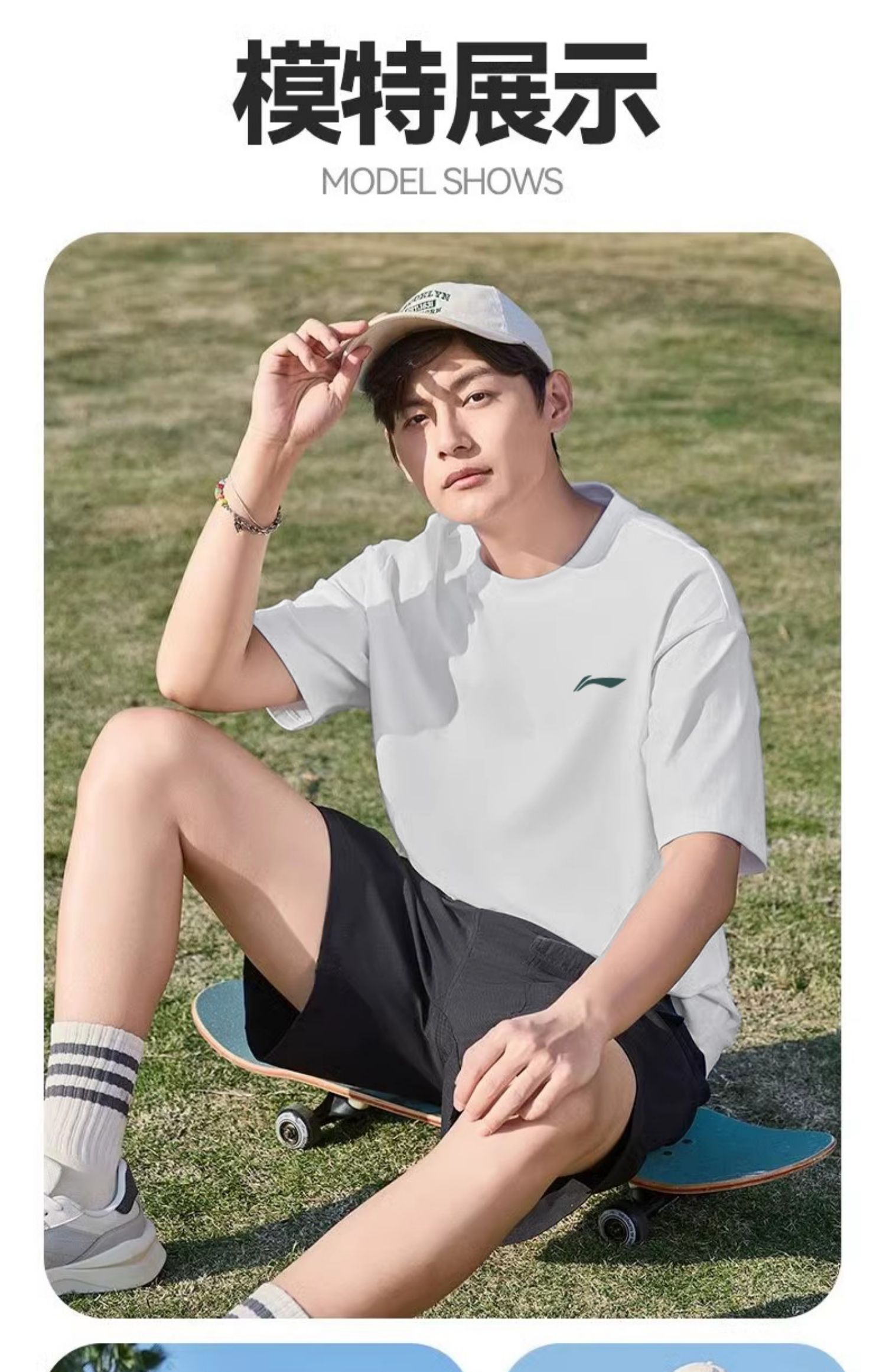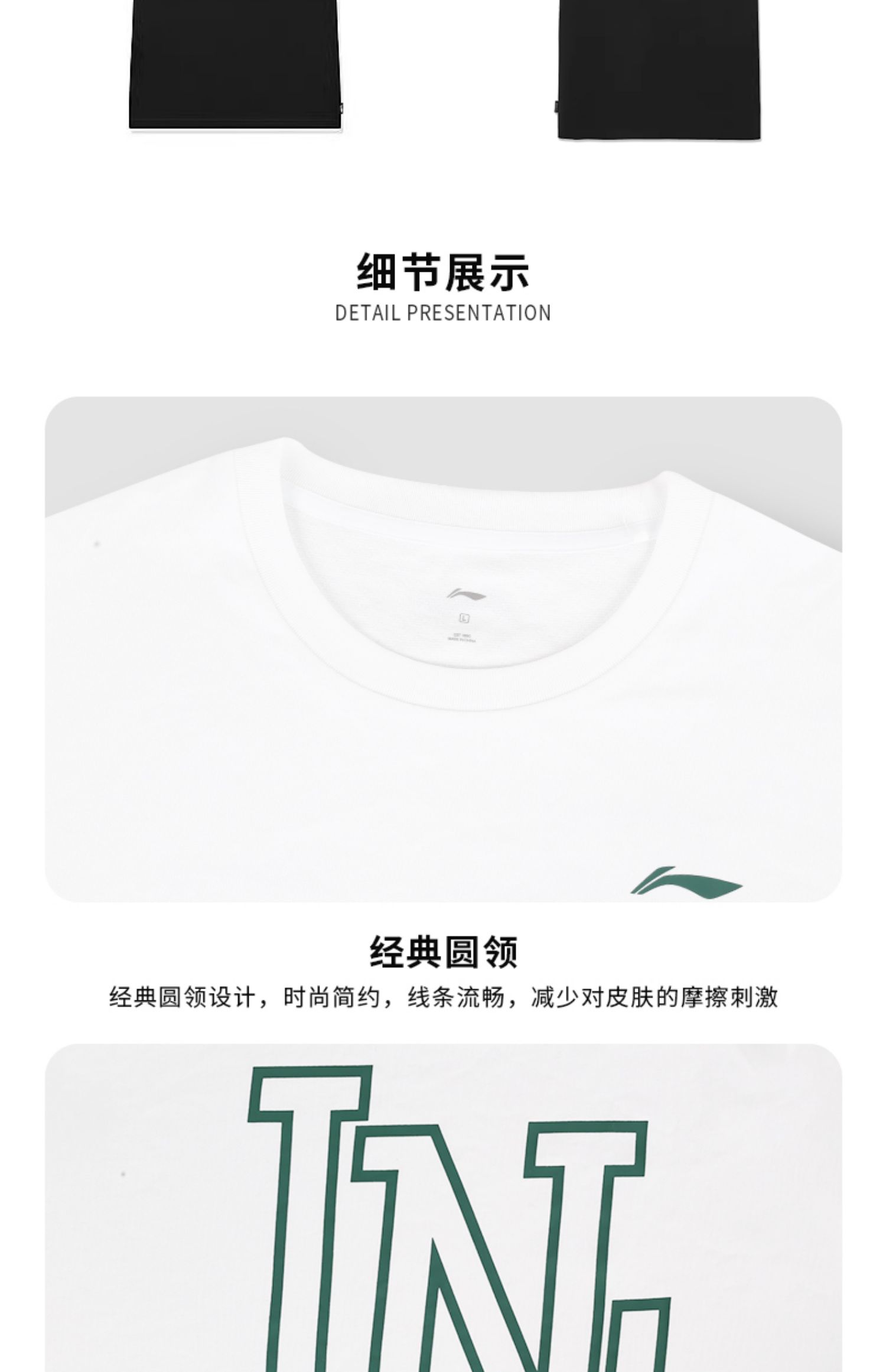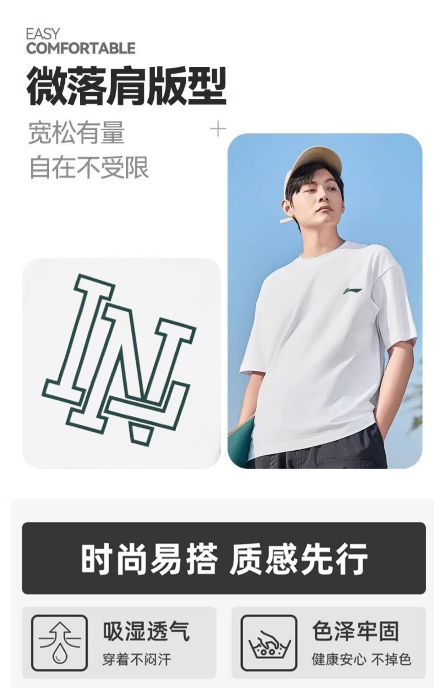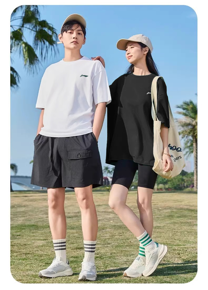 李宁短袖男士夏季2025新款休闲半袖白色圆领宽松体恤情侣纯棉t恤