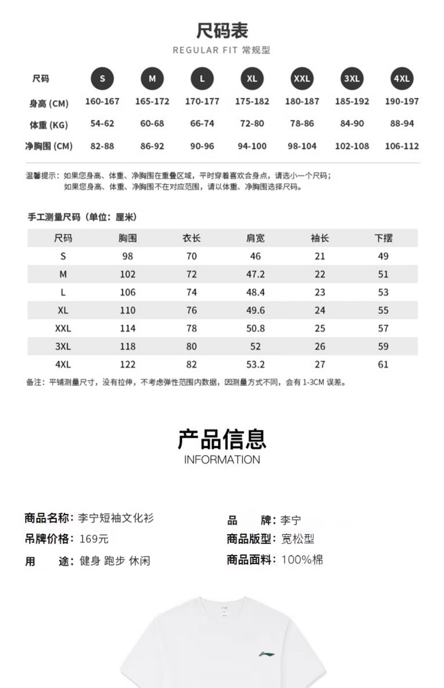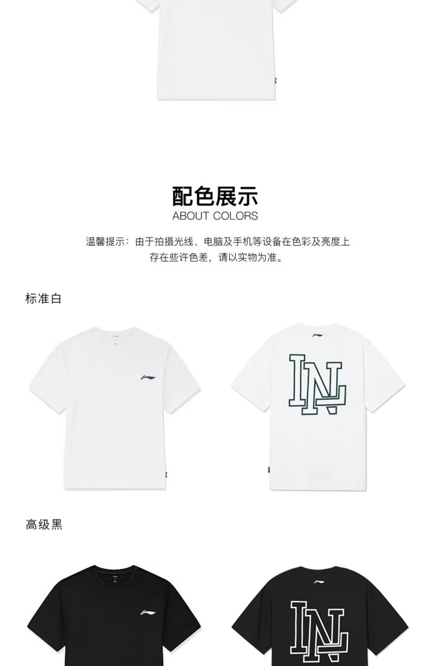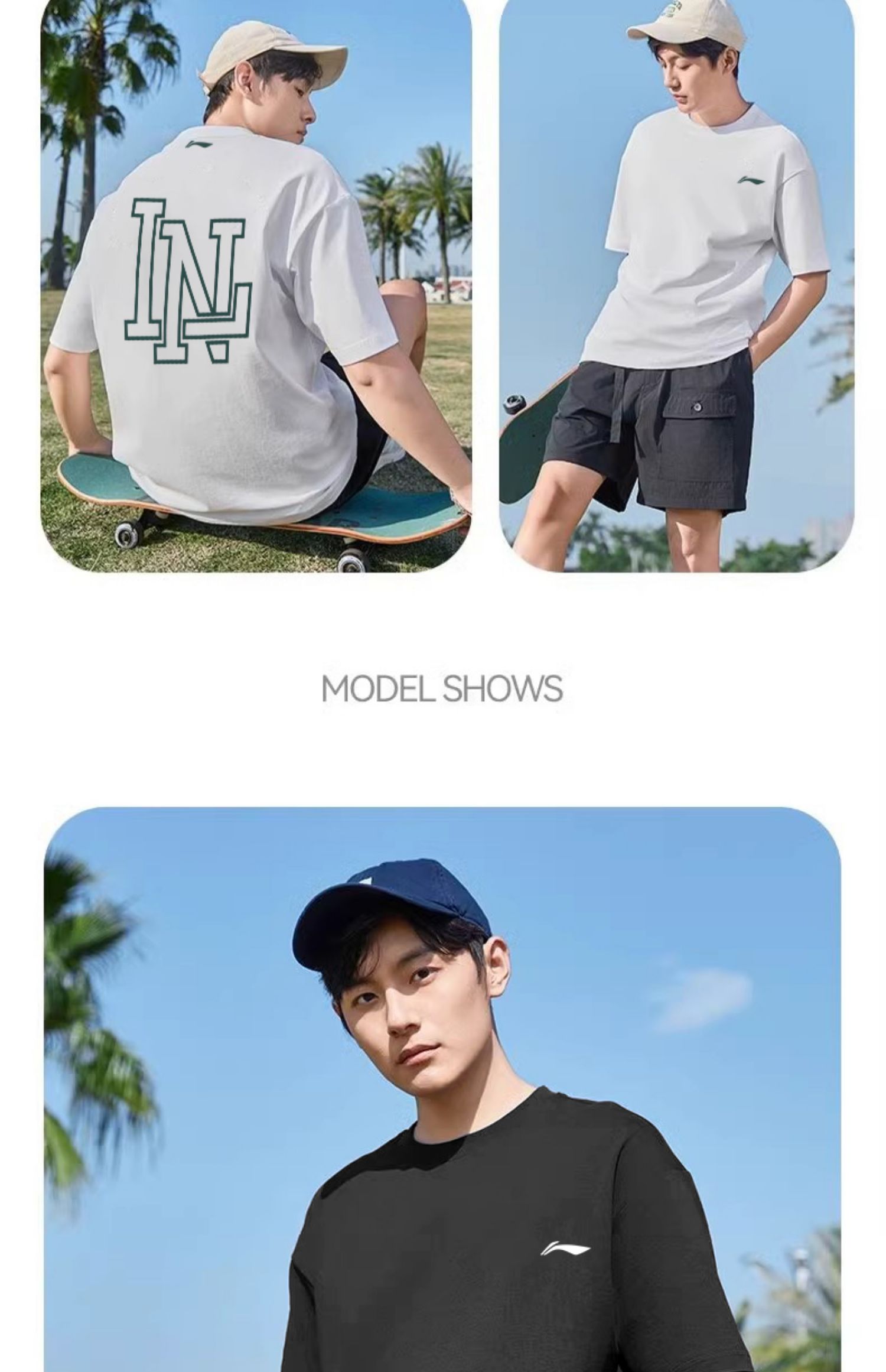 李宁短袖男士夏季2025新款休闲半袖白色圆领宽松体恤情侣纯棉t恤