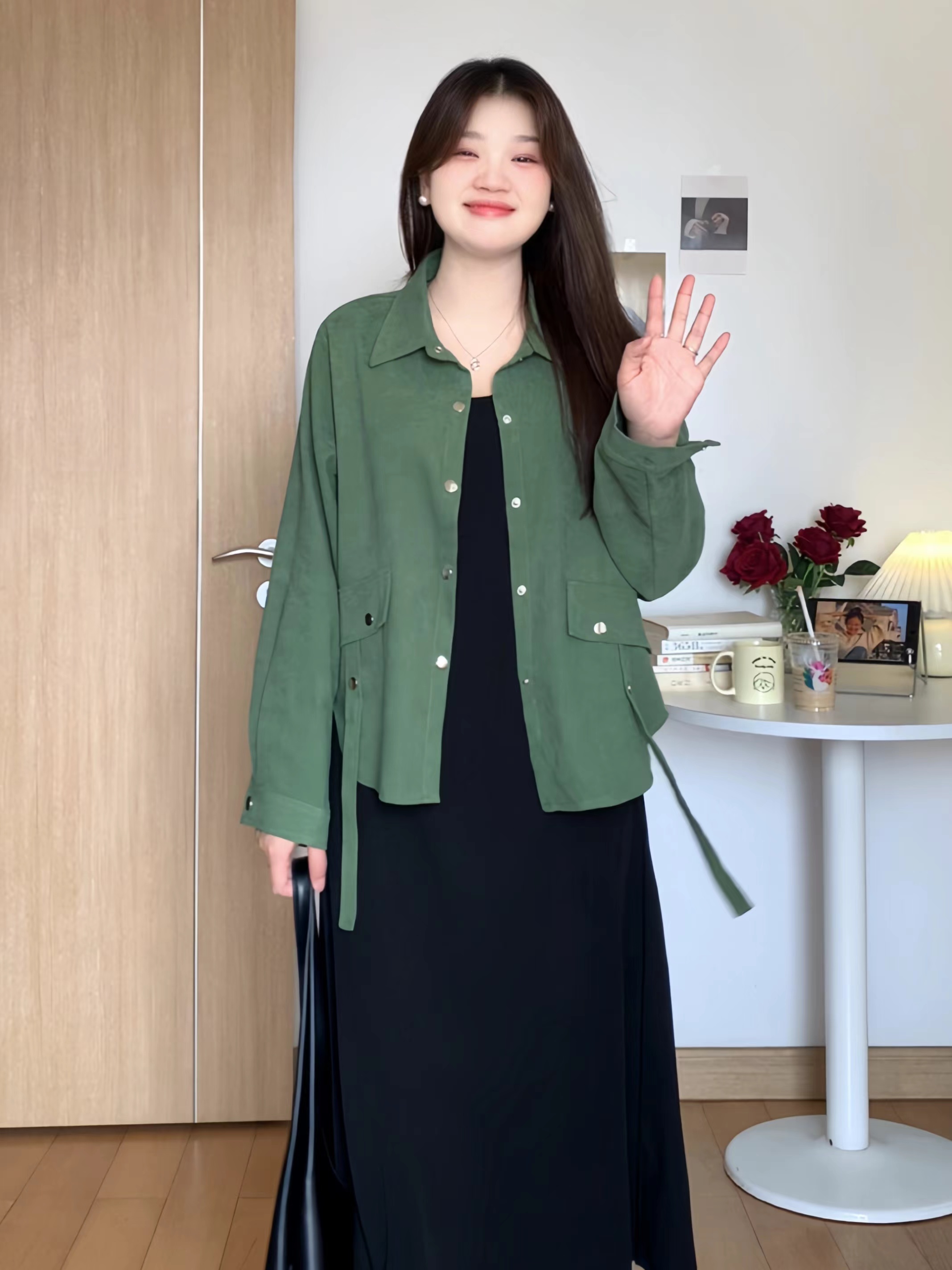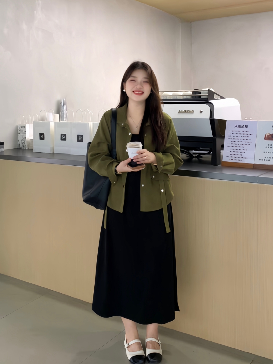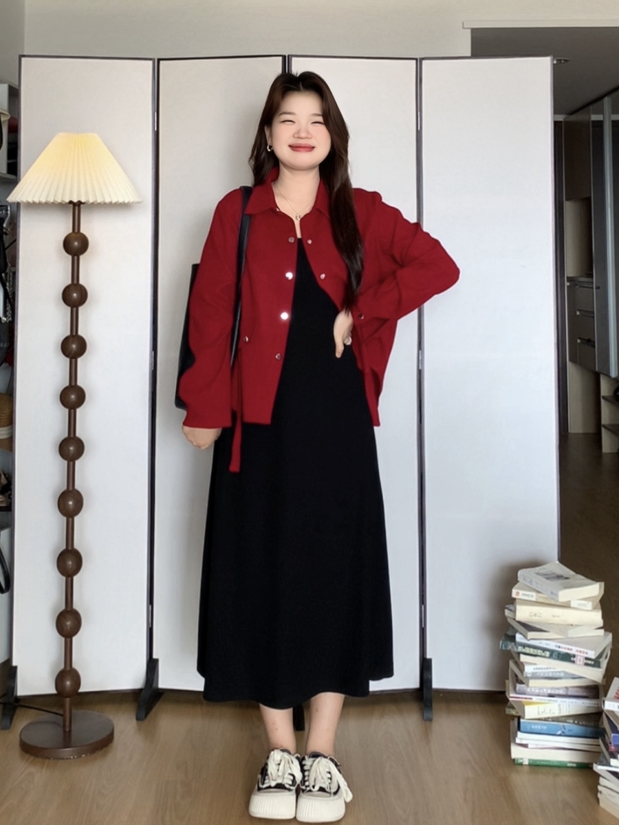 微胖的喵喵 梨形mm春季遮肉显瘦气质百搭衬衫连衣裙大码女装套装