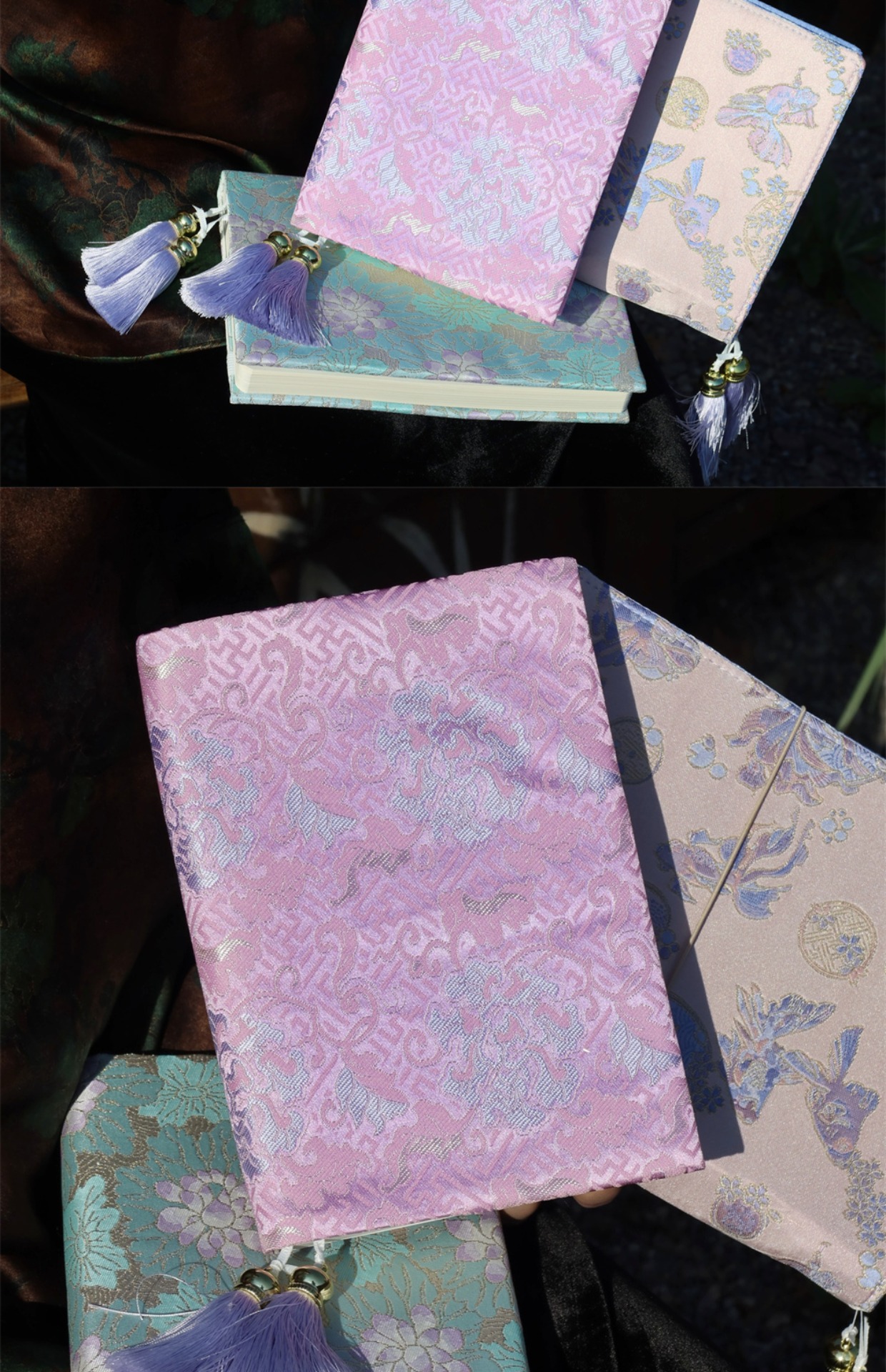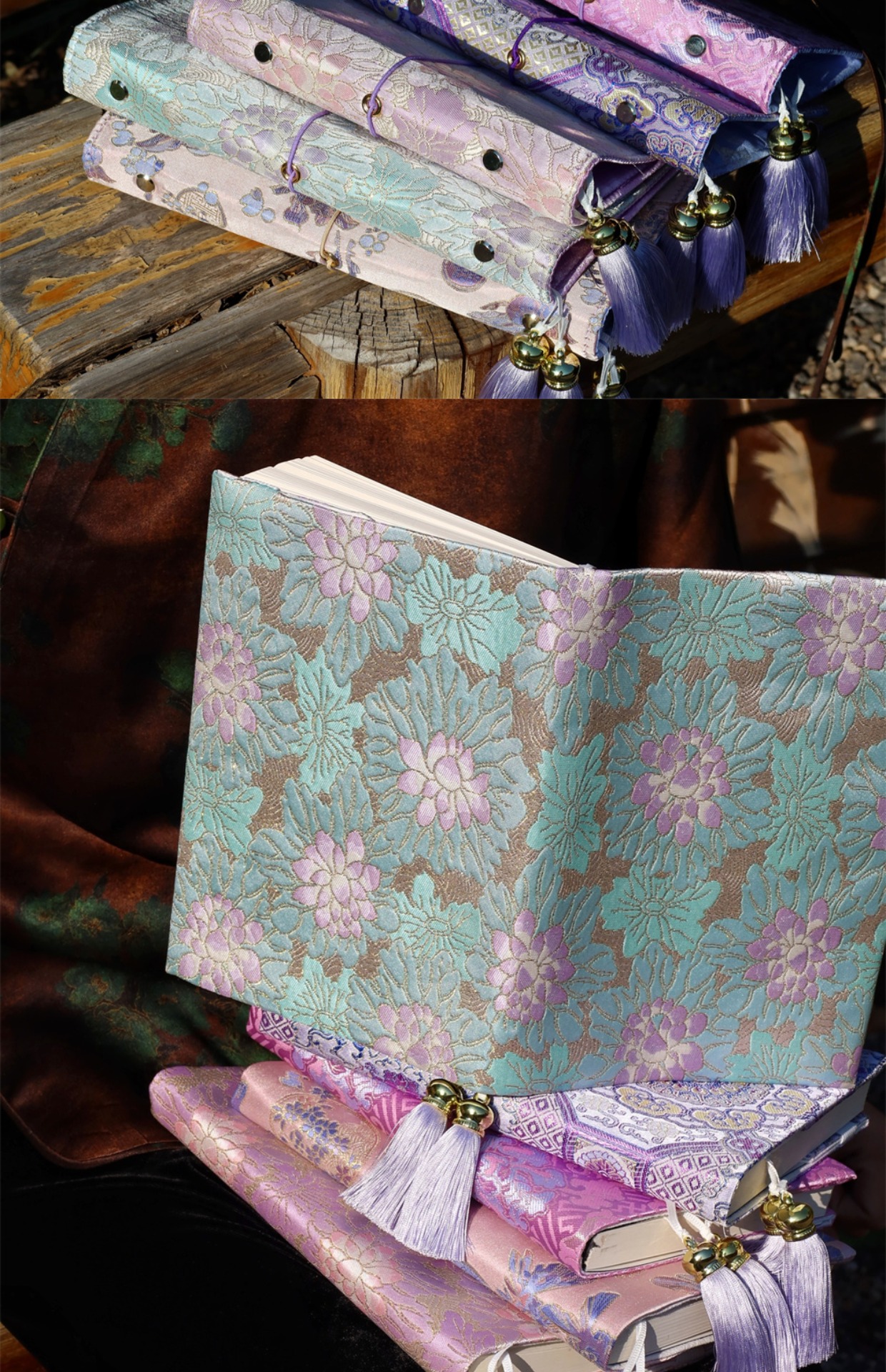 真我 暮山紫 国风新中式织锦缎手账帐本手工布书衣日记笔记本a5a6