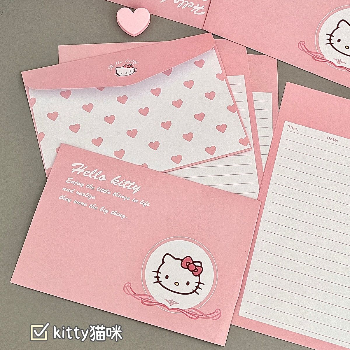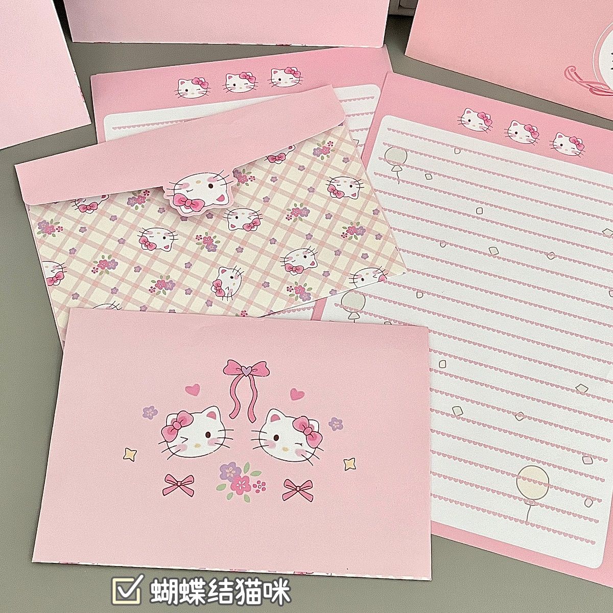 粉粉猫咪可爱信封信纸ins高颜值书信手写简约信笺创意卡通送礼用