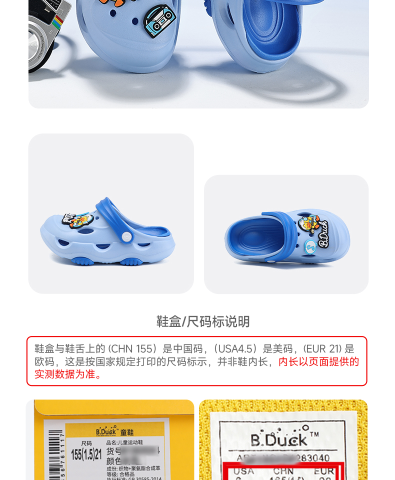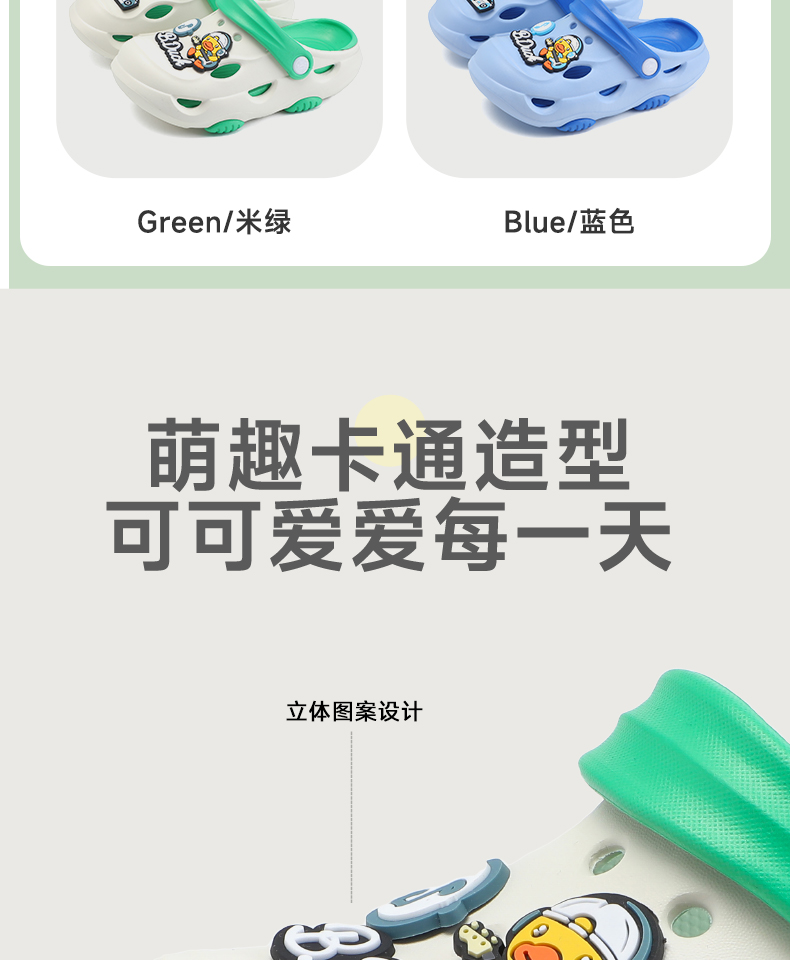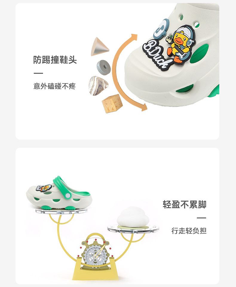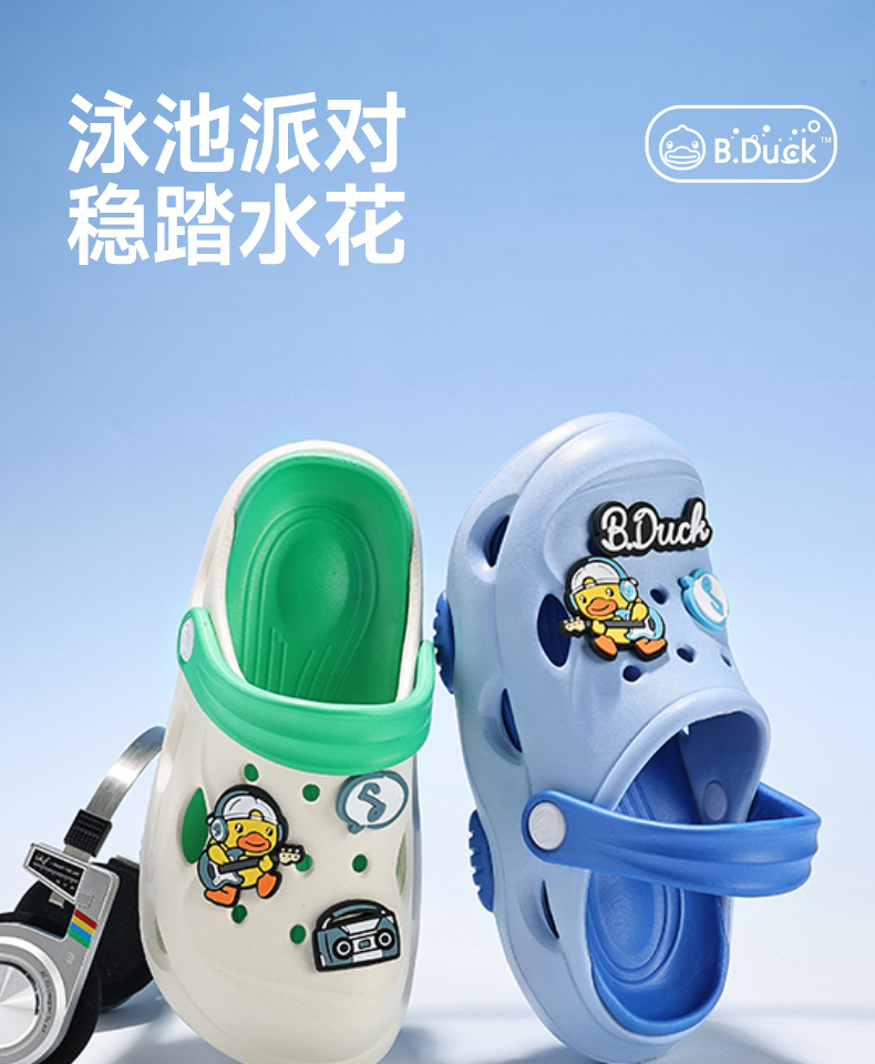 BDuck小黄鸭童鞋男童洞洞鞋夏季新款儿童凉鞋包头女孩沙滩鞋防滑