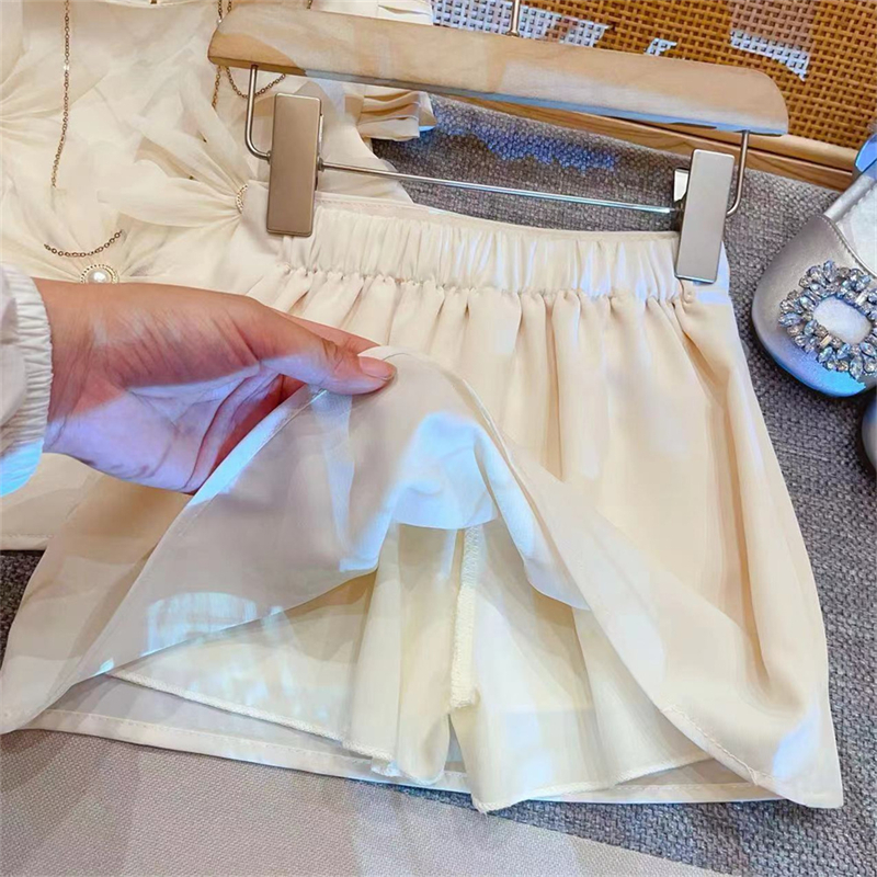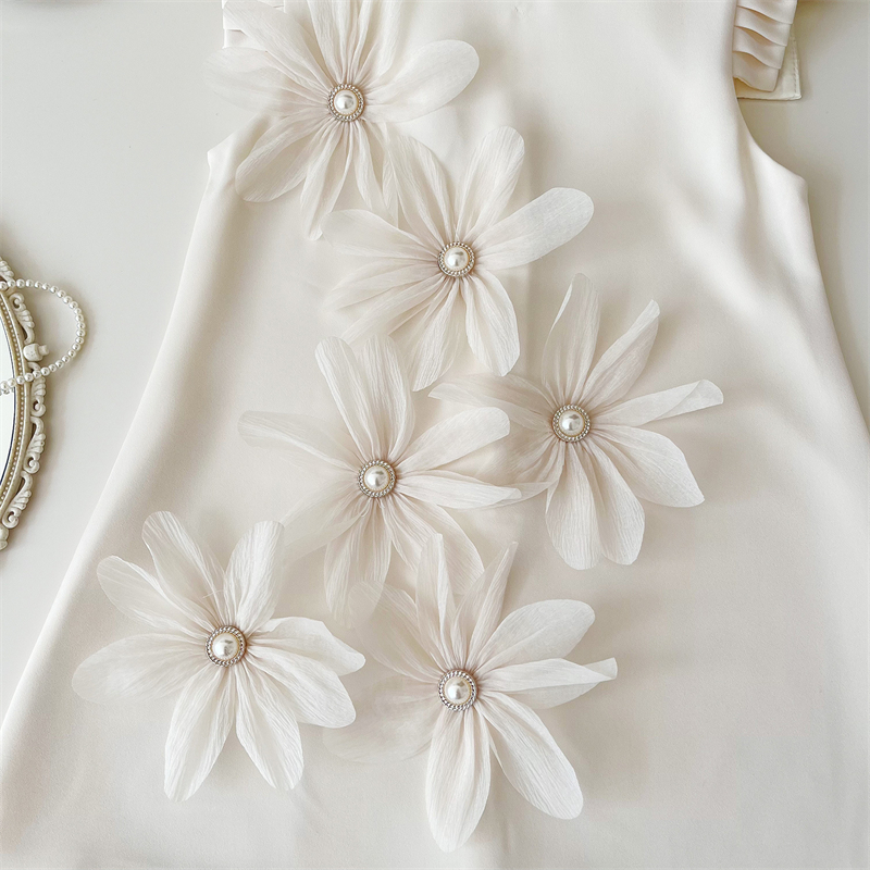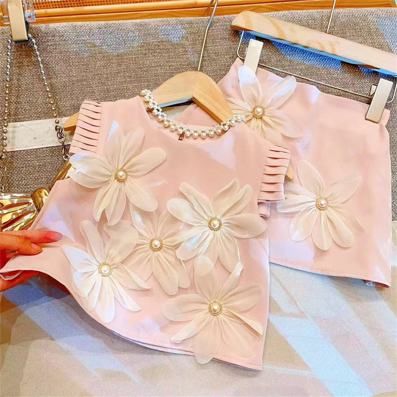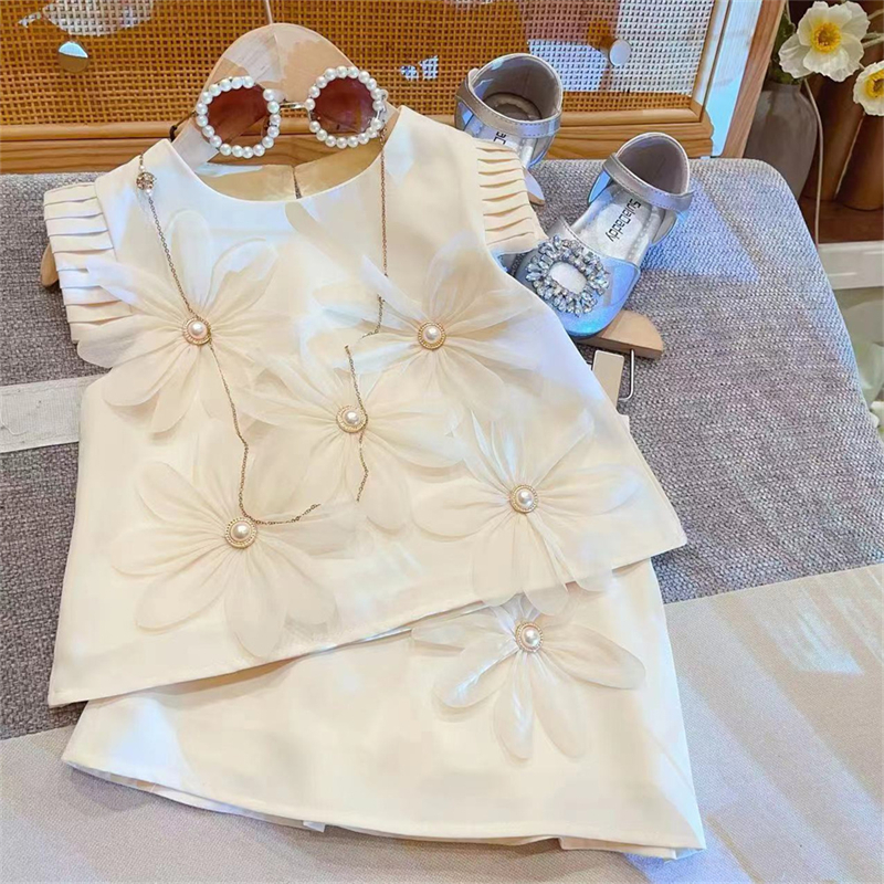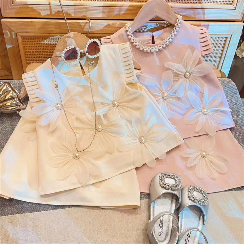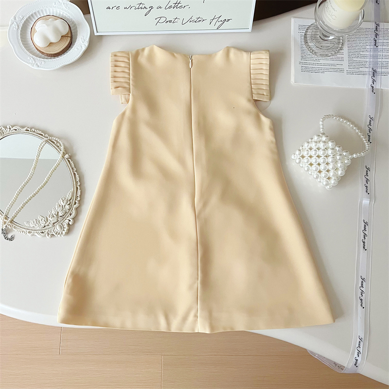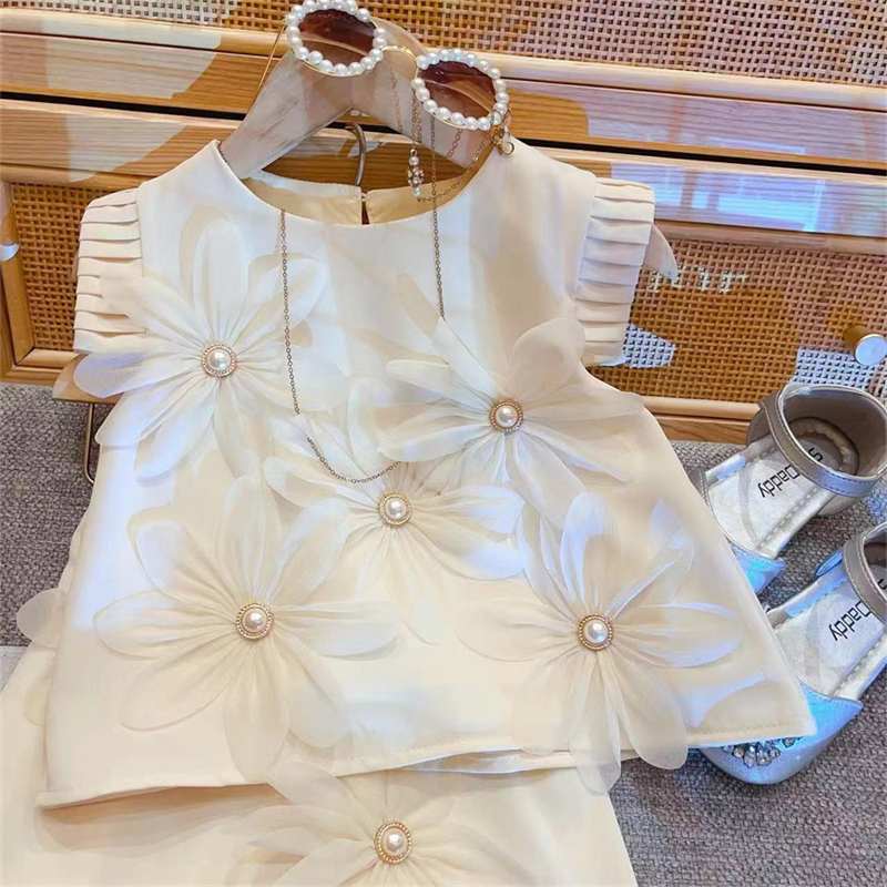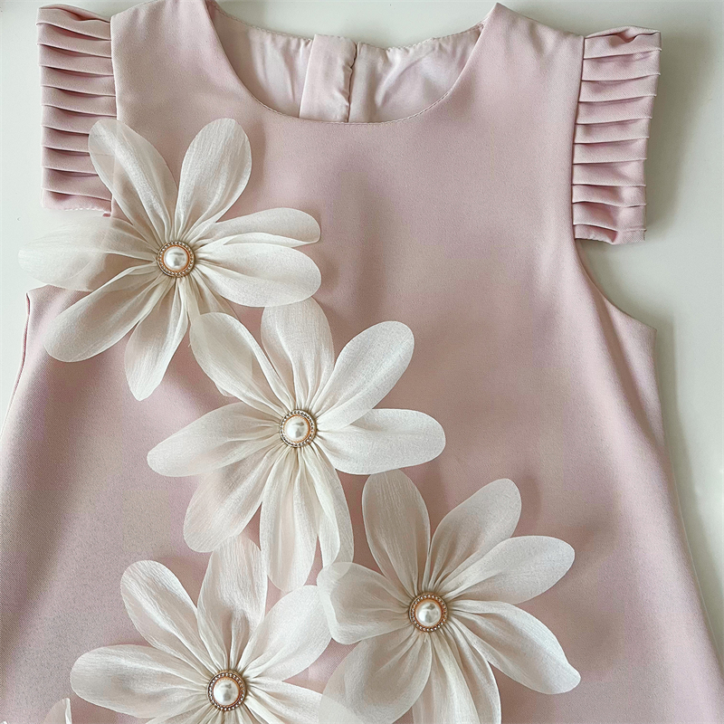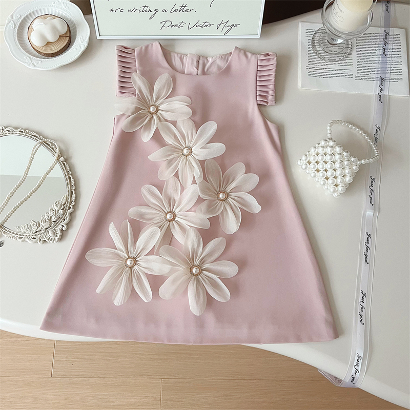 夏季新款韩版女童立体花朵百褶裙小女孩飞袖长裙高级感气质连衣裙