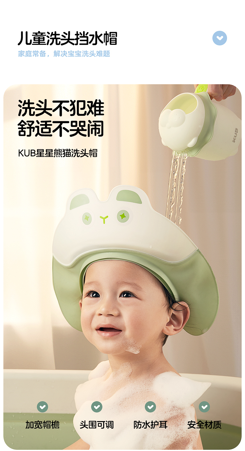 KUB可优比宝宝洗头帽小孩洗澡帽可调节婴儿洗发帽儿童浴帽防水护
