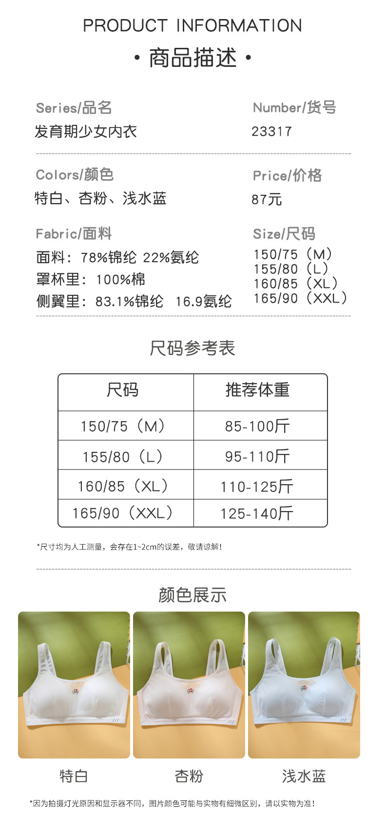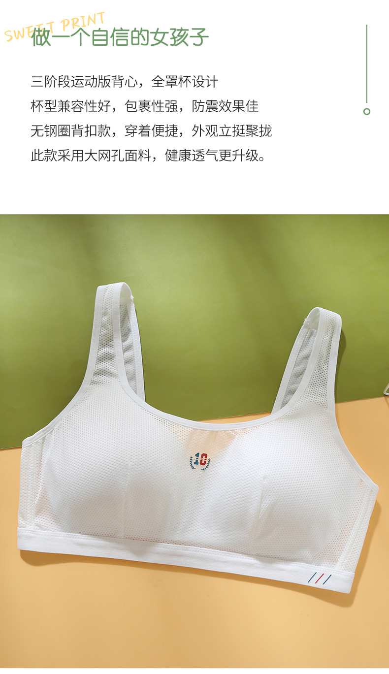 青春期少女文胸背扣初中高中生发育期学生运动防震内衣女大童背心