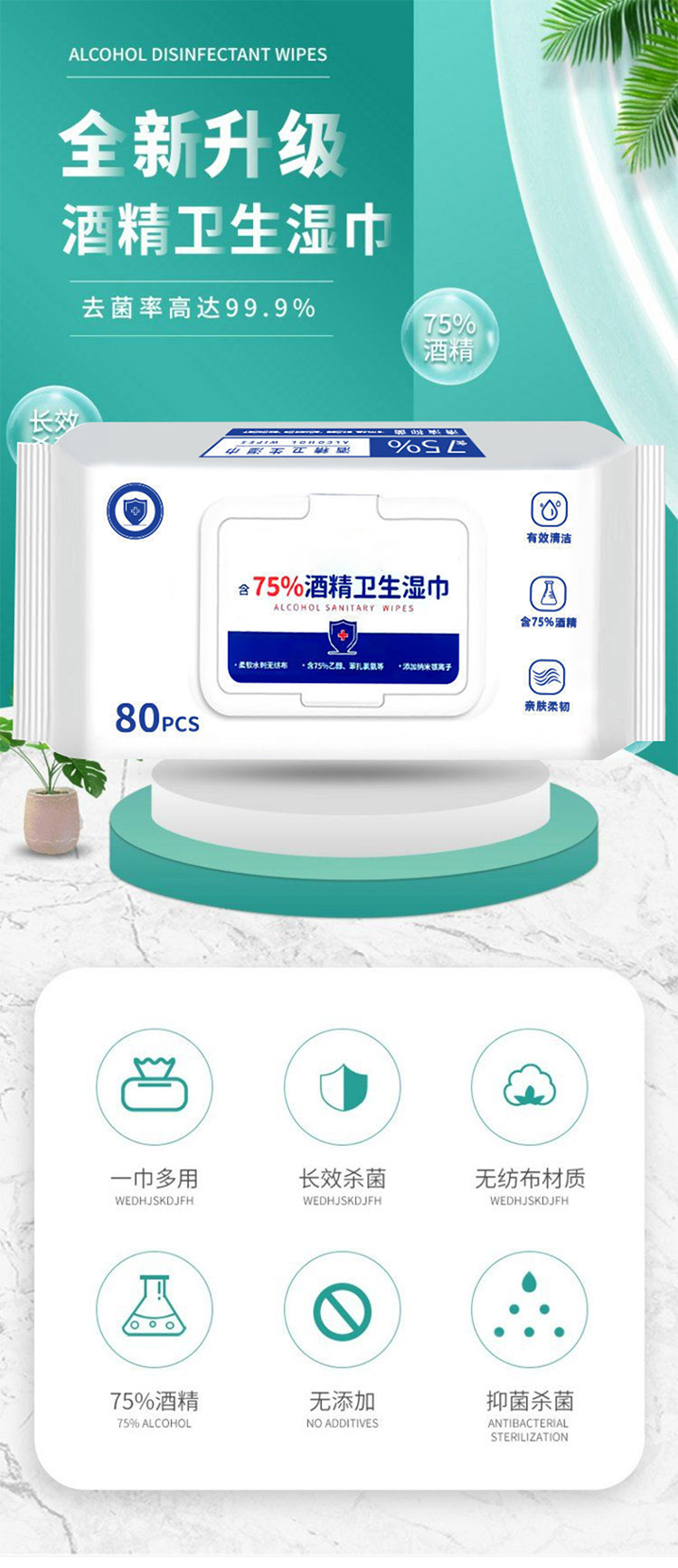 含75度酒精消毒湿巾办公家用卫生杀菌专用湿纸巾大包婴儿手口湿巾