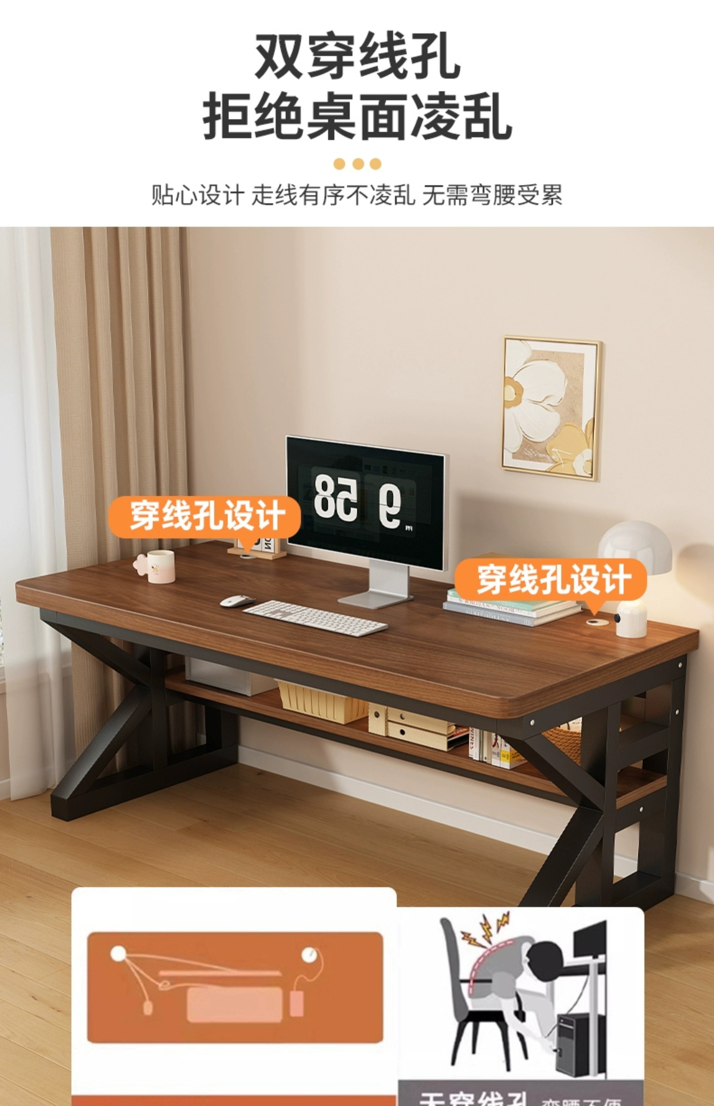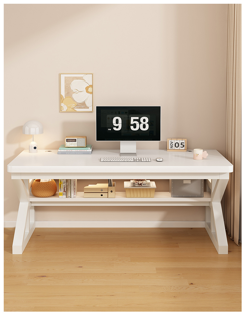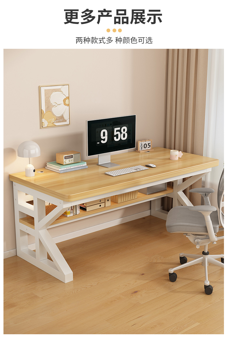 实木电脑桌台式电竞桌卧室家用书桌学生学习桌双人简易电脑办公桌