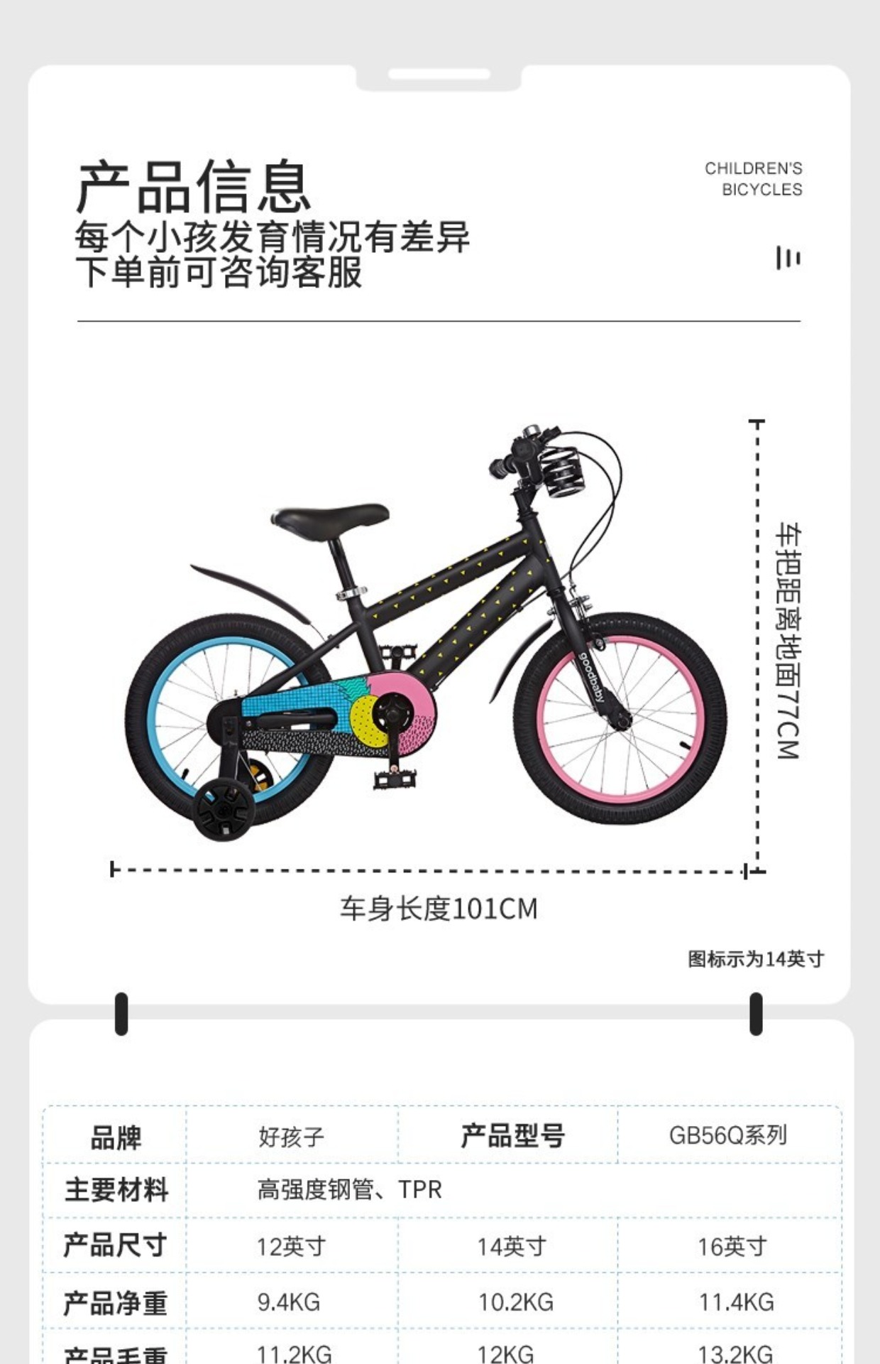 好孩子自行车儿童脚踏车3岁宝宝2-4-6岁男女童童车12/14/16寸单车