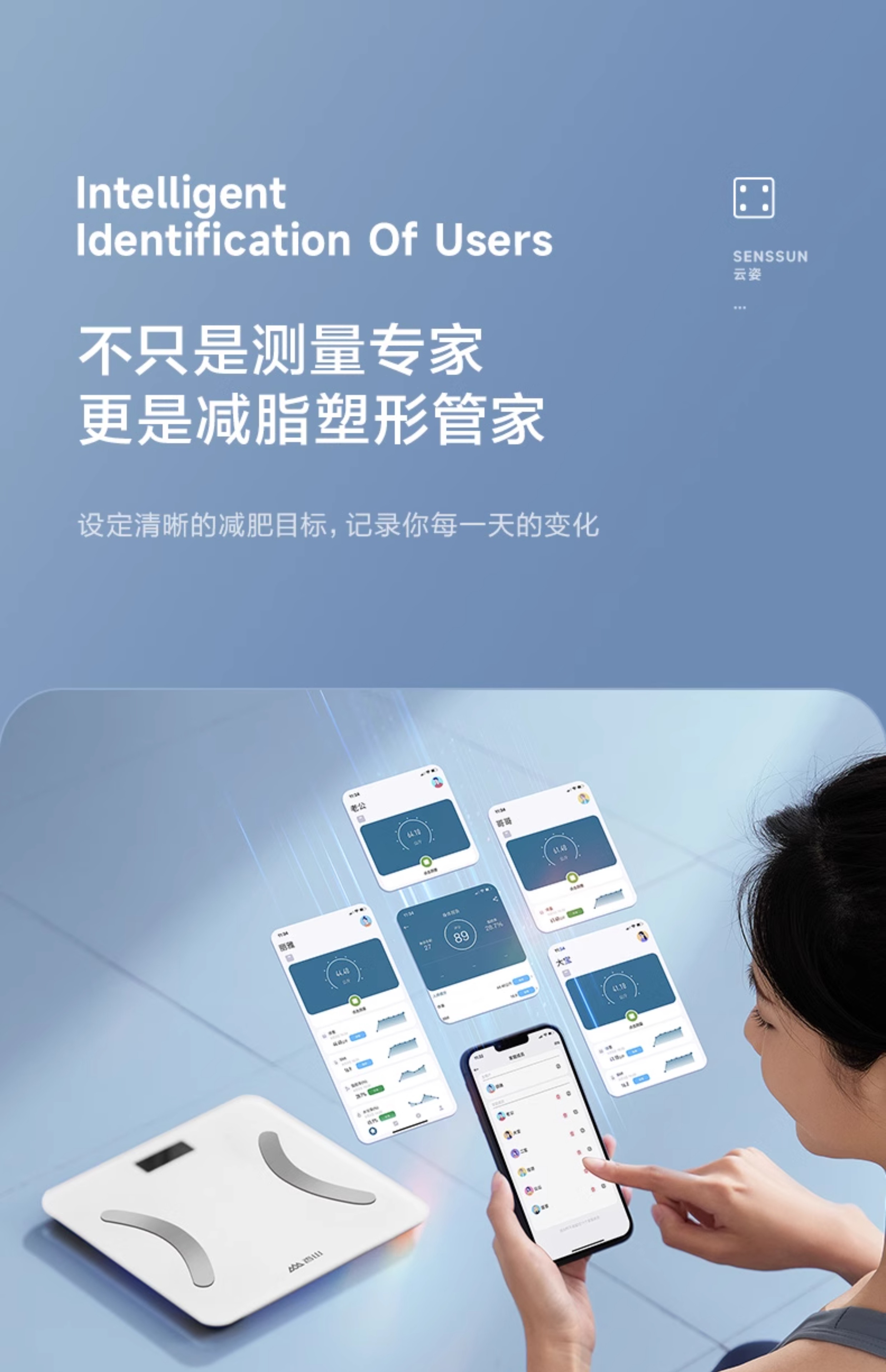 香山精准电子秤体重秤体脂秤家用体脂称充电智能测脂肪小型人体秤