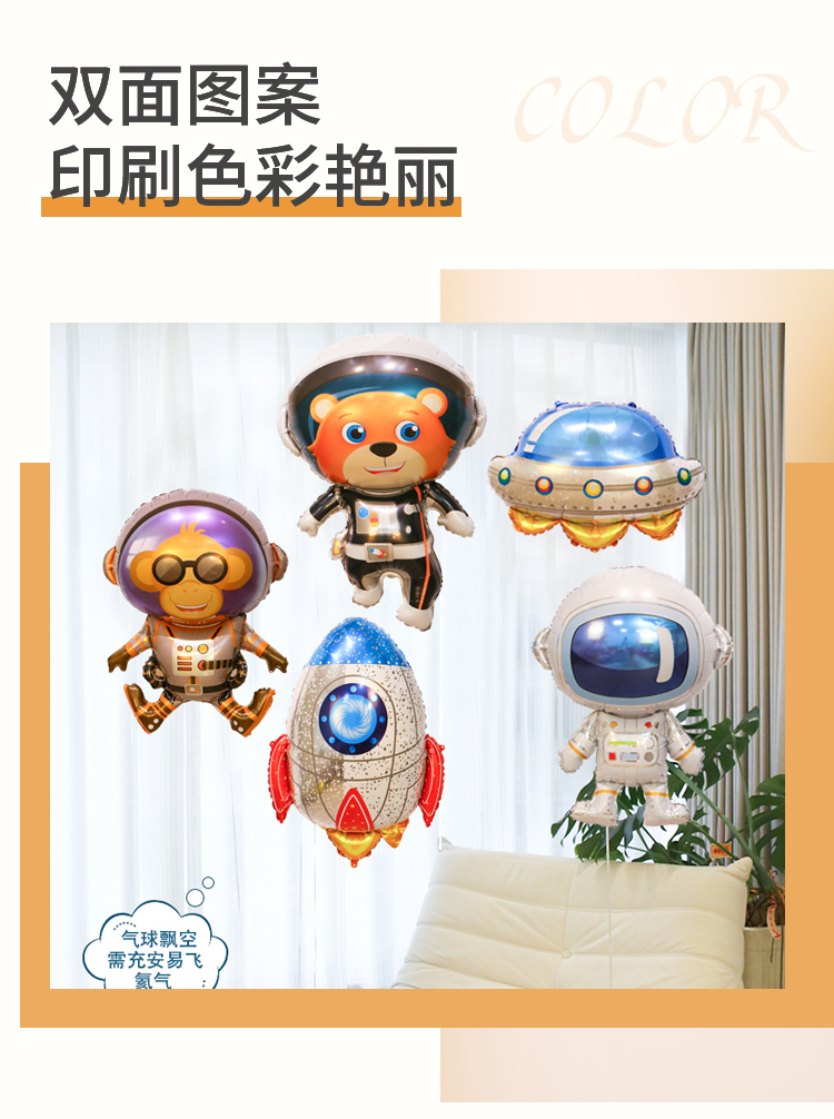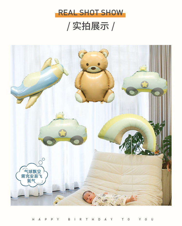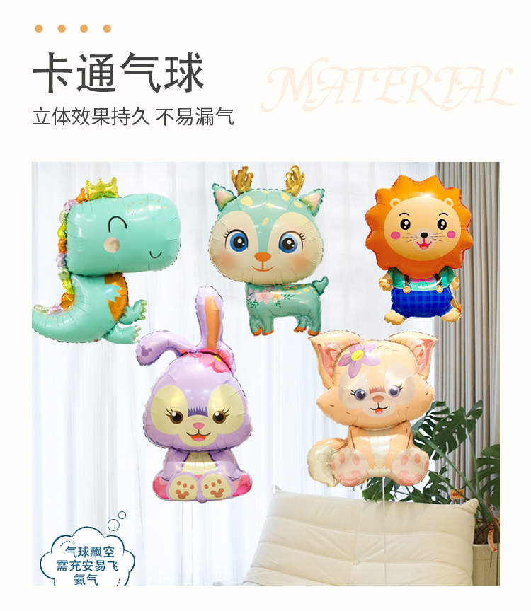 卡通动物造型氦气飘空气球婴儿满月生日派对装饰宝宝绑腿玩具布置