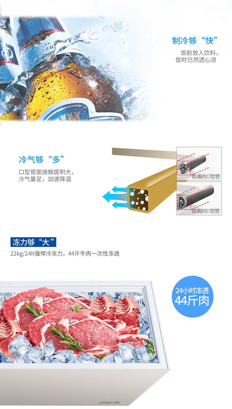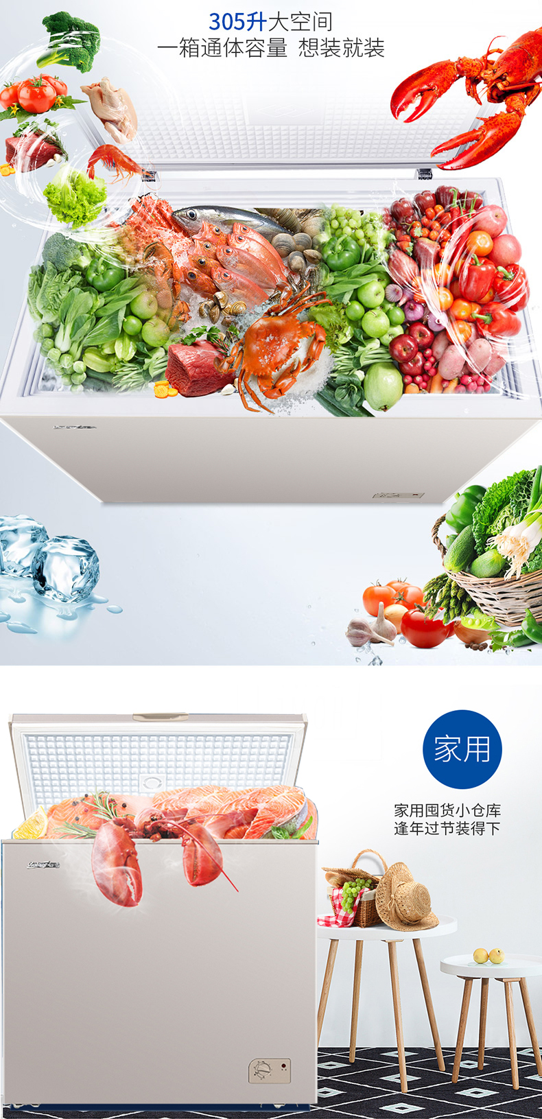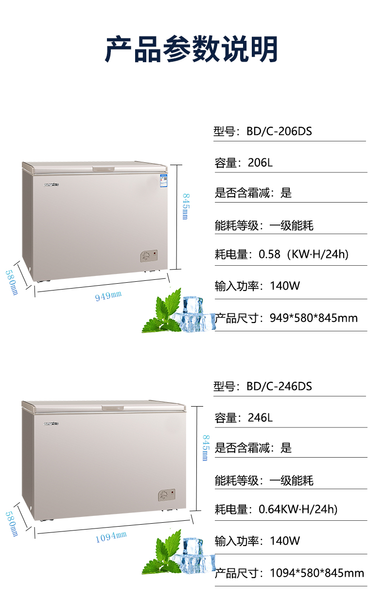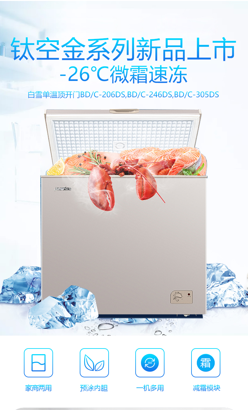 白雪减霜冰柜家用商用冷柜全冷冻冷藏单温减霜节能192/206/246L