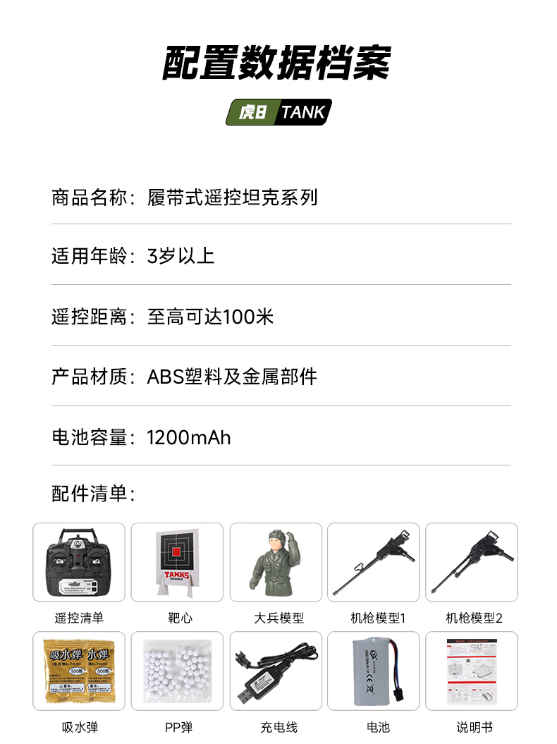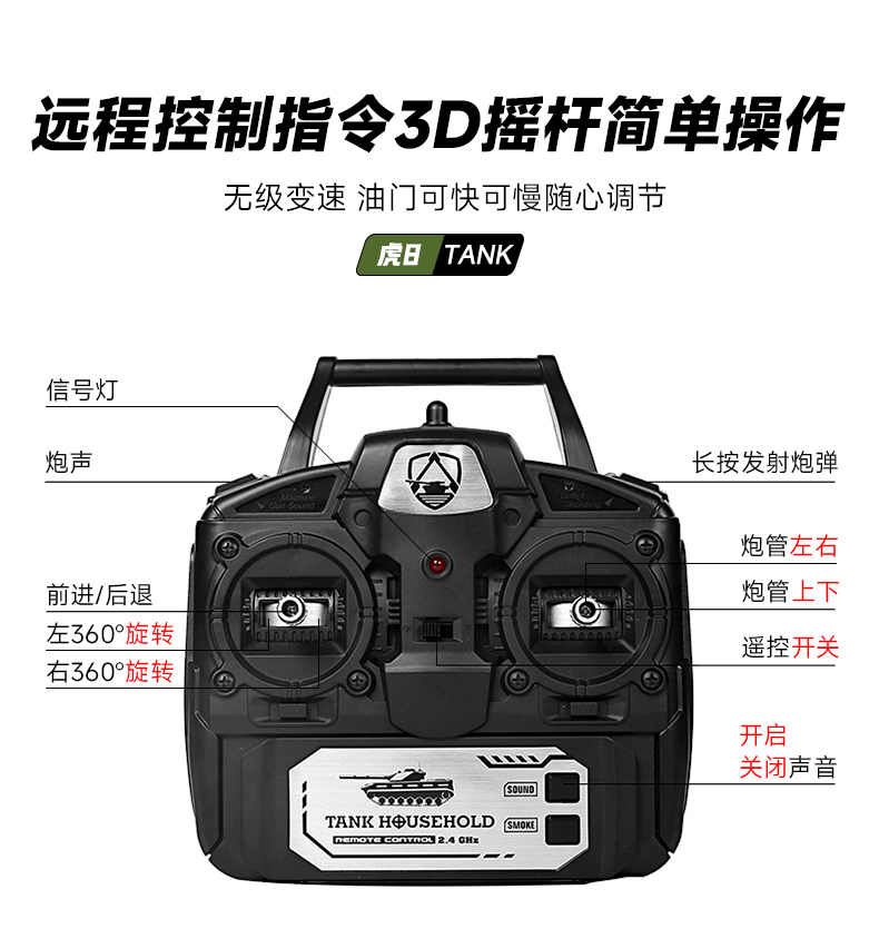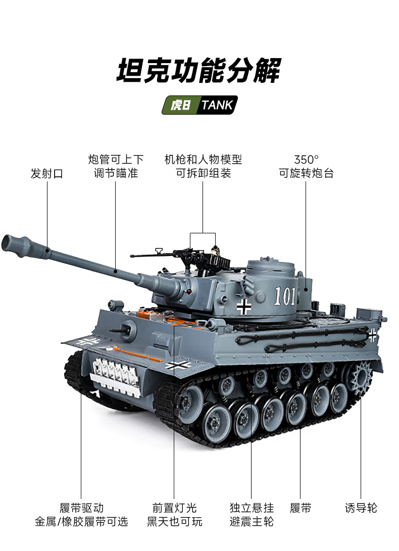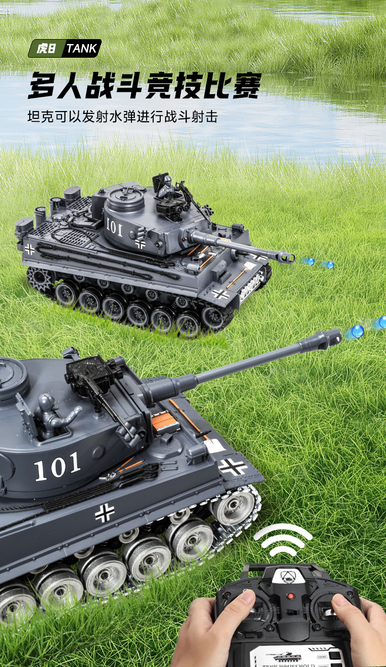 德国虎式遥控坦克可开炮儿童玩具汽车专业男孩电动履带式合金模型