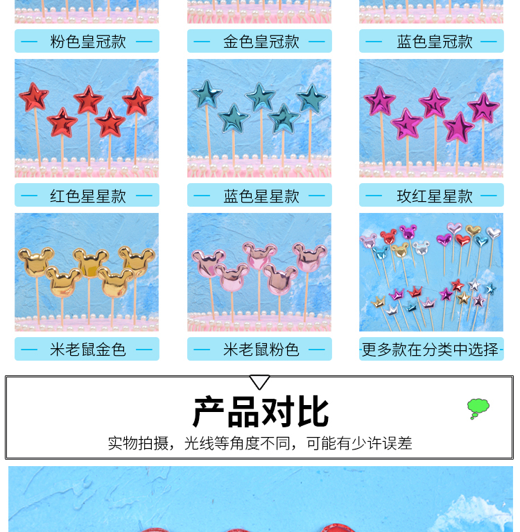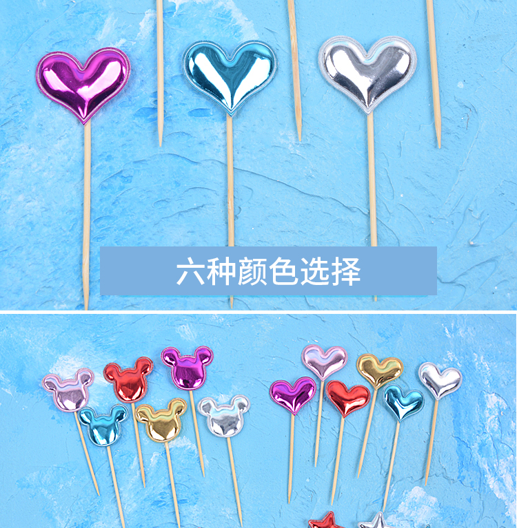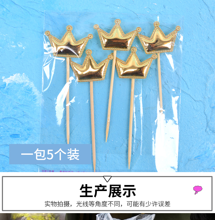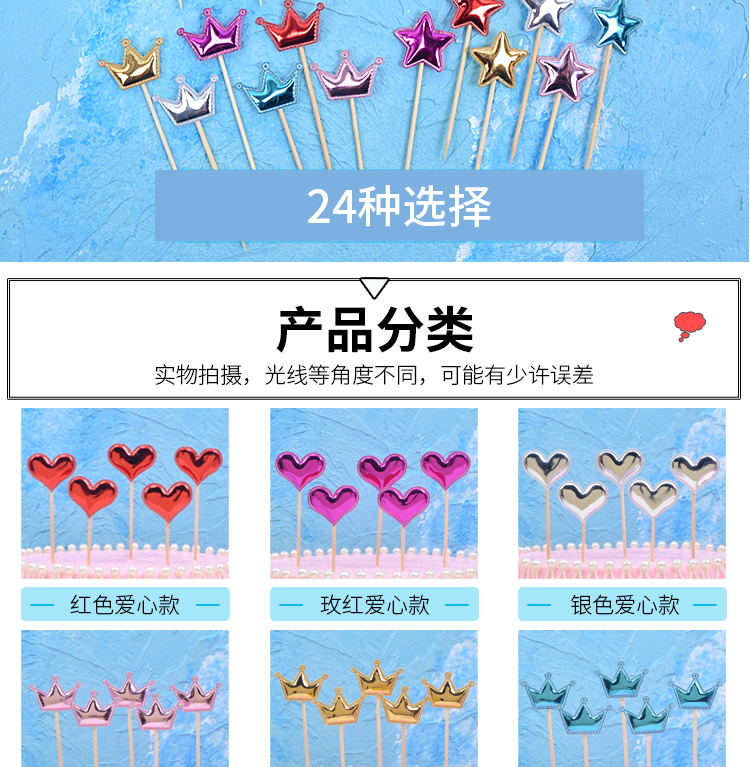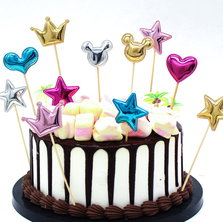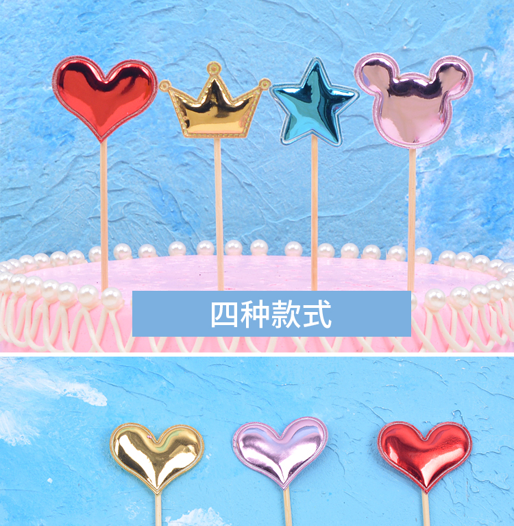 PU爱心皇冠五角星星金色儿童生日蛋糕插旗插牌插签派对装饰插件