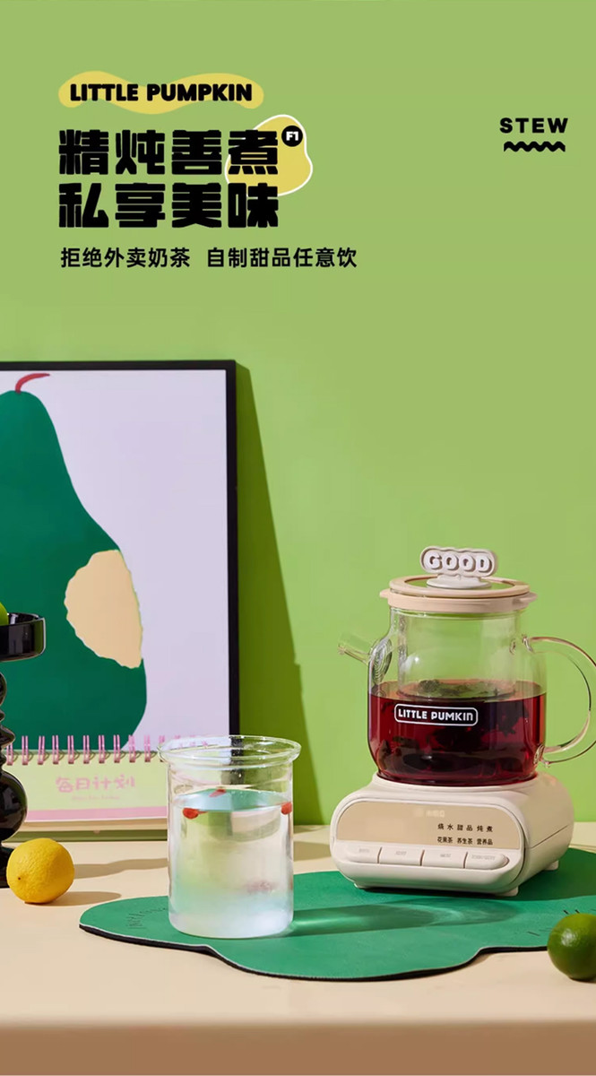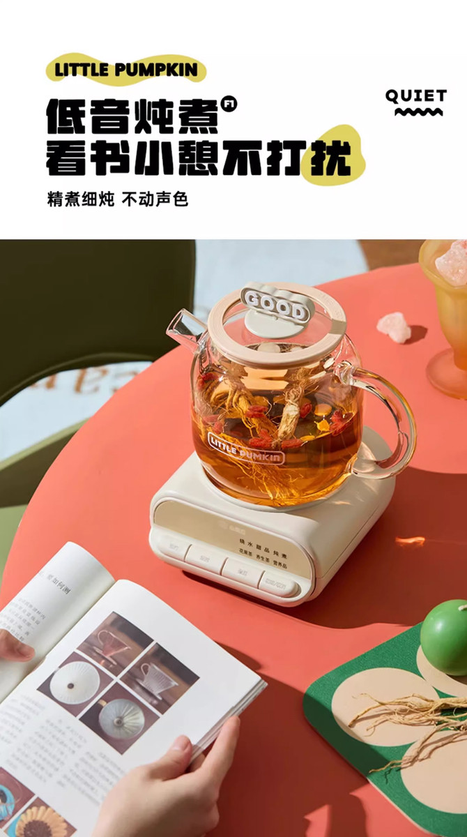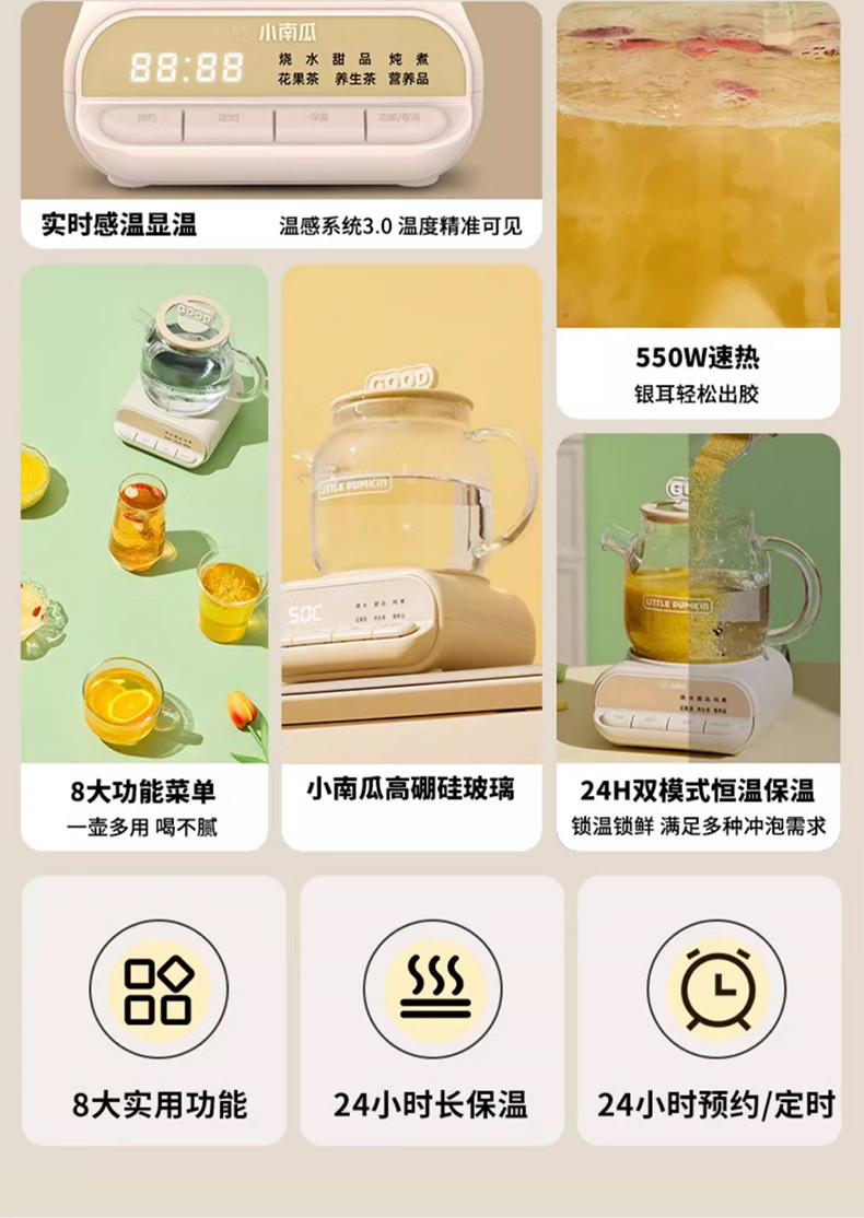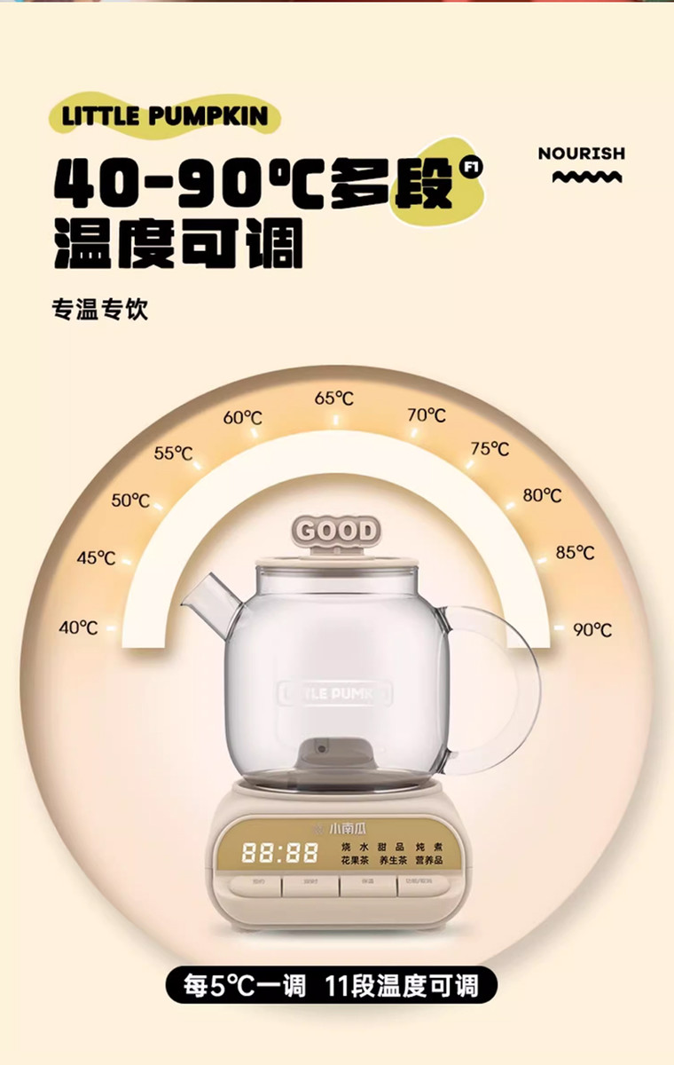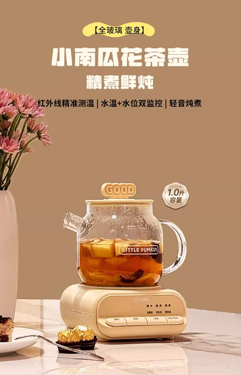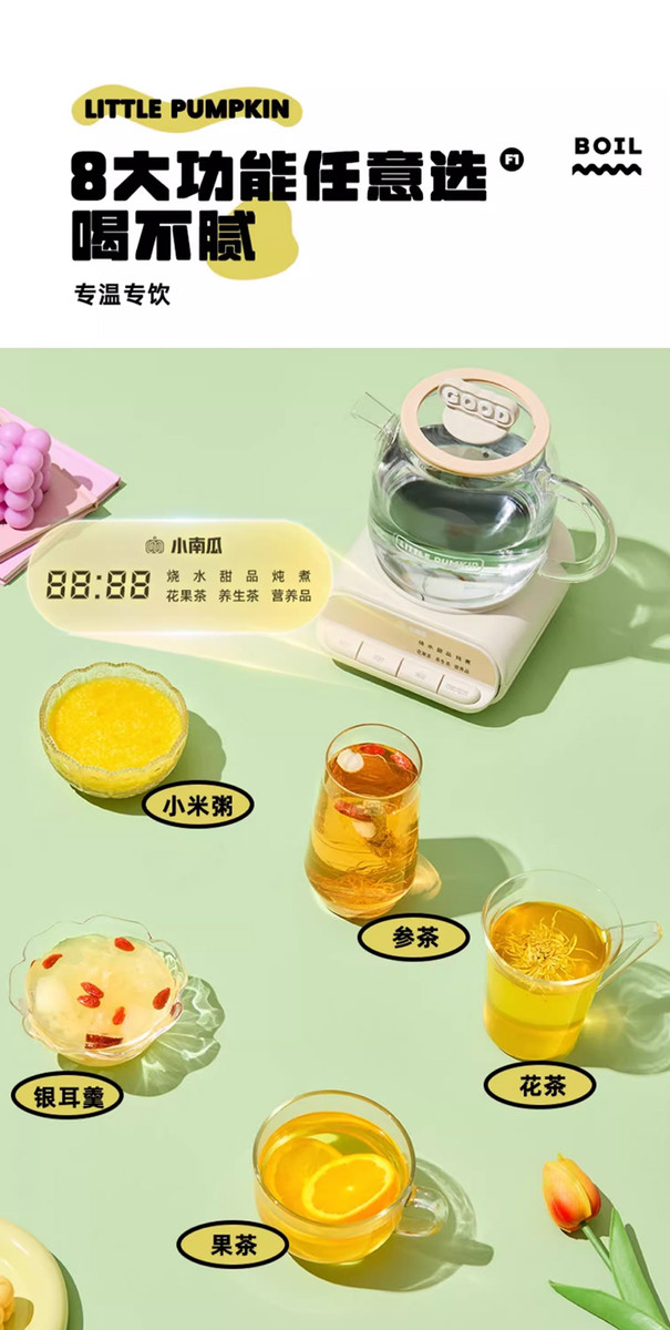 小南瓜养生壶2025新款全玻璃0胶水办公室小型纯玻璃一体恒温烧水