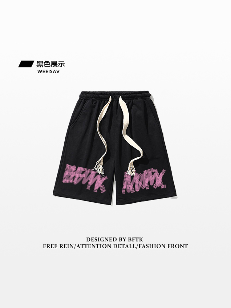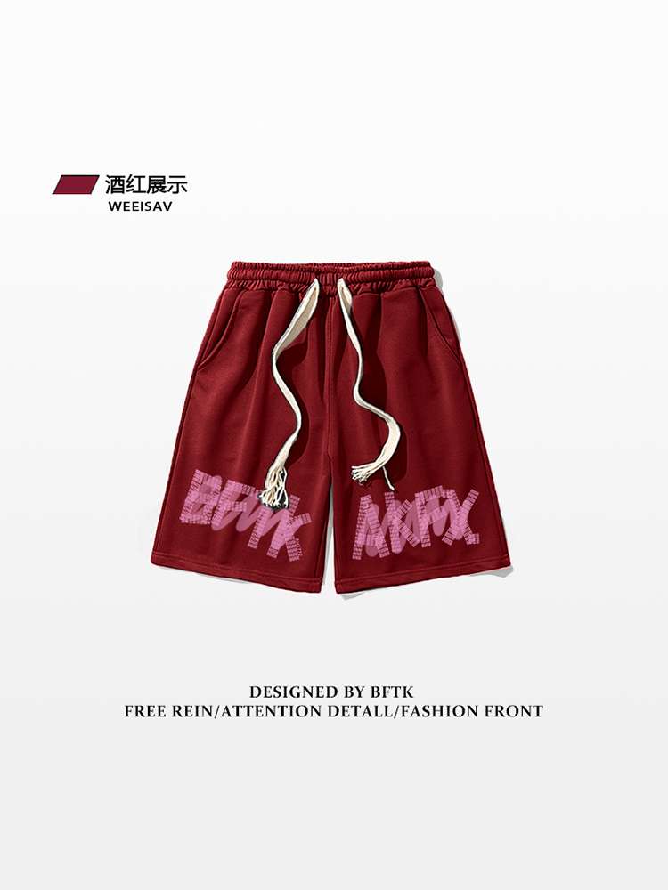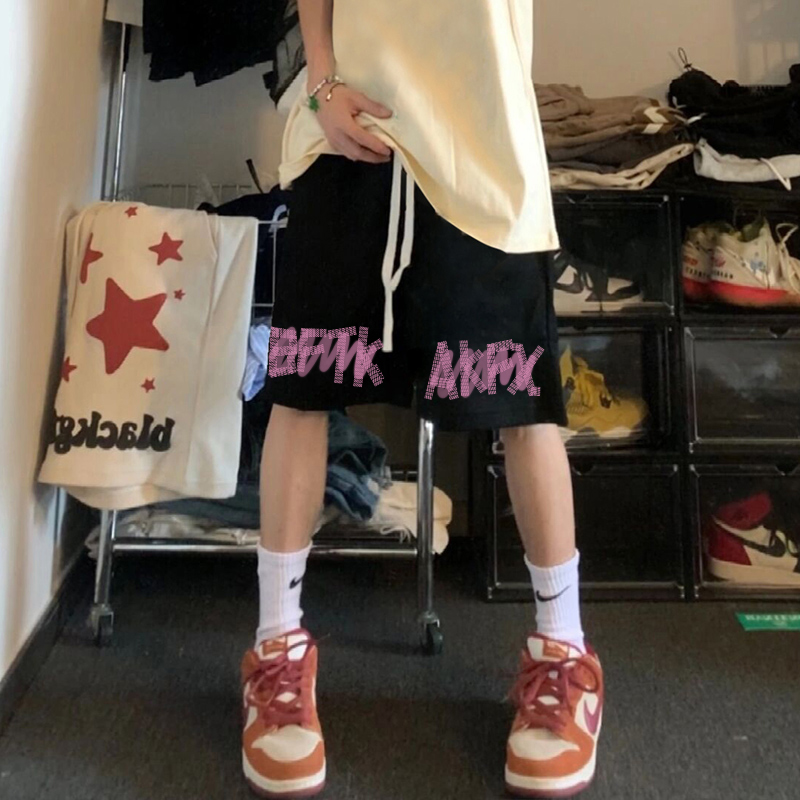 美式运动休闲复古短裤男生夏季百搭简约跑步宽松直筒抽绳五分裤潮