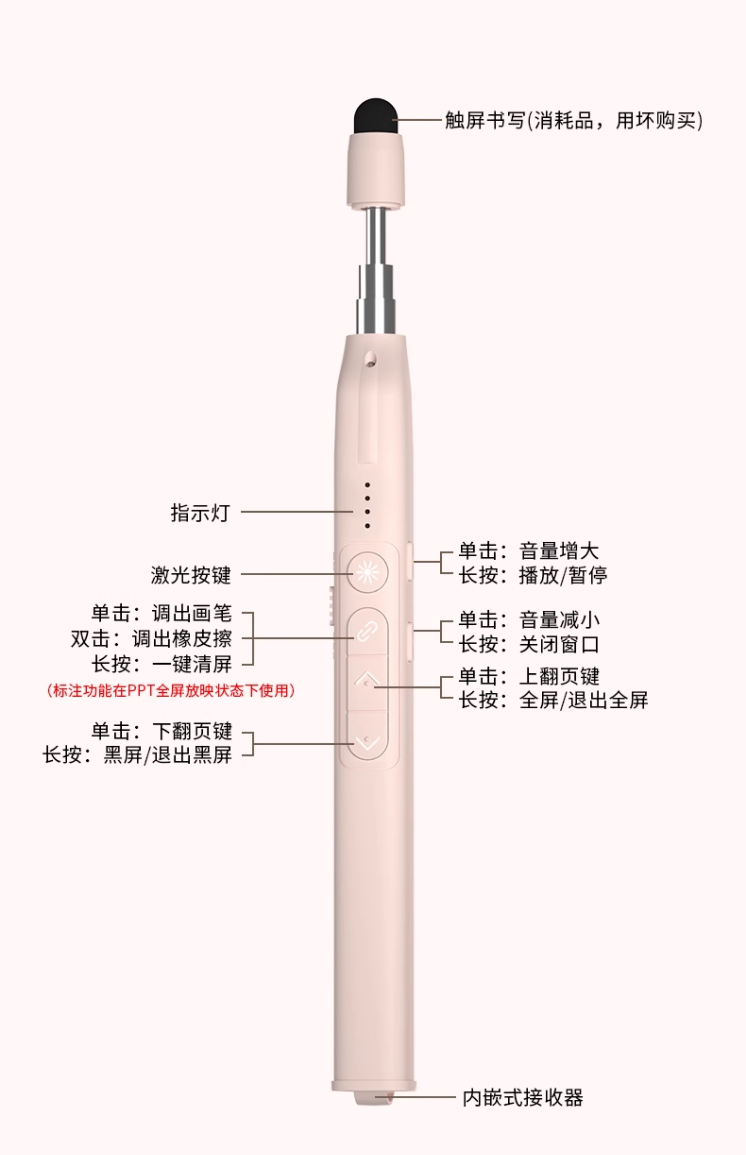 惠斯特K9伸缩教鞭翻页笔教师用多功能ppt遥控笔适用希沃白板多媒体一体机触屏笔二合一上课教学激光投影笔