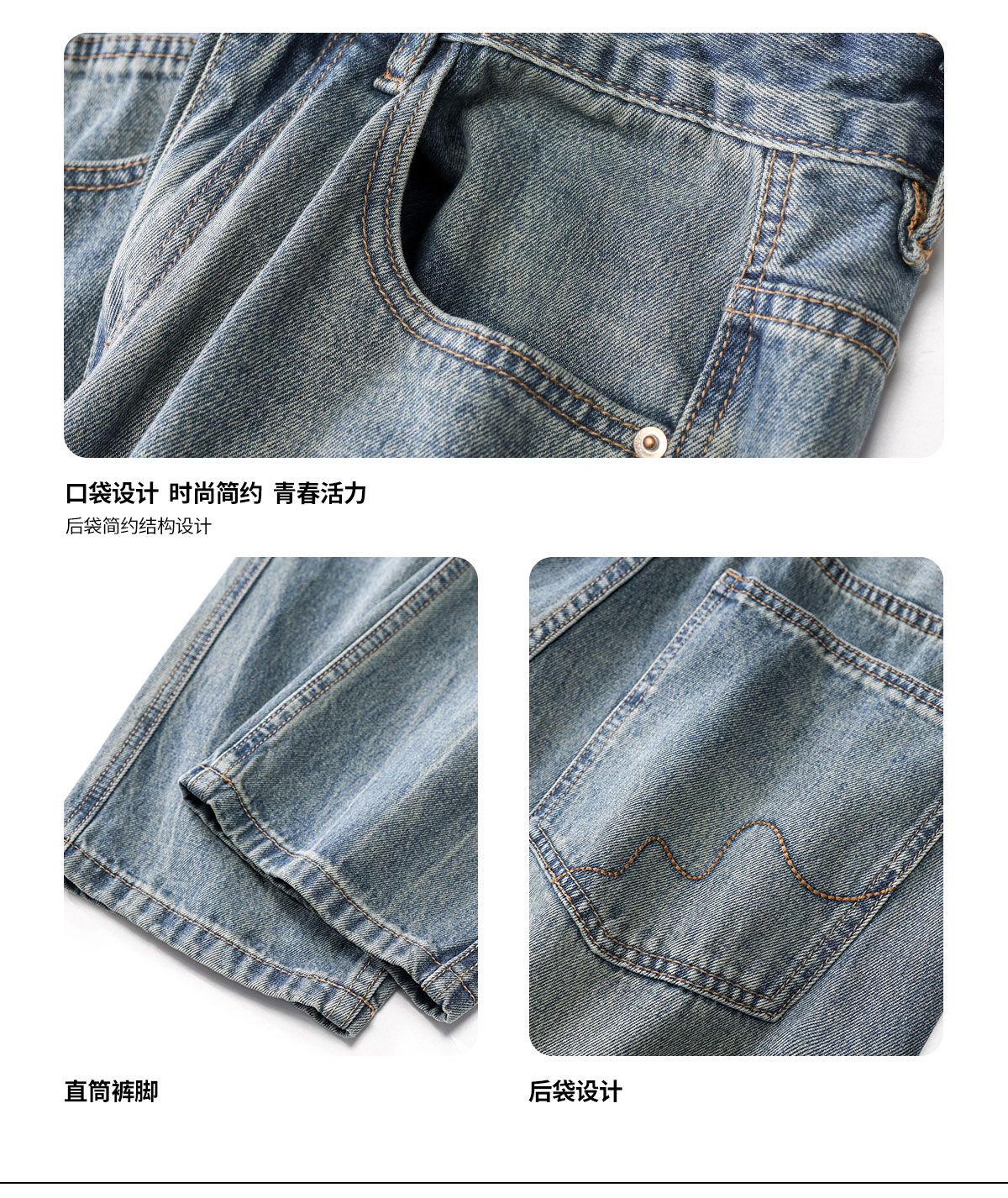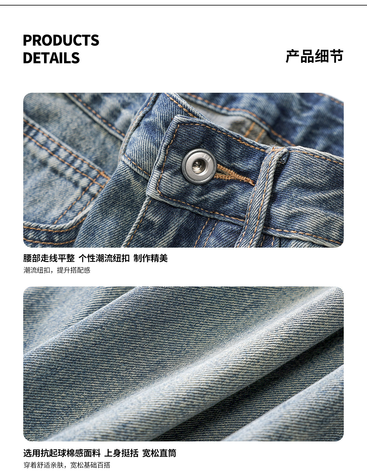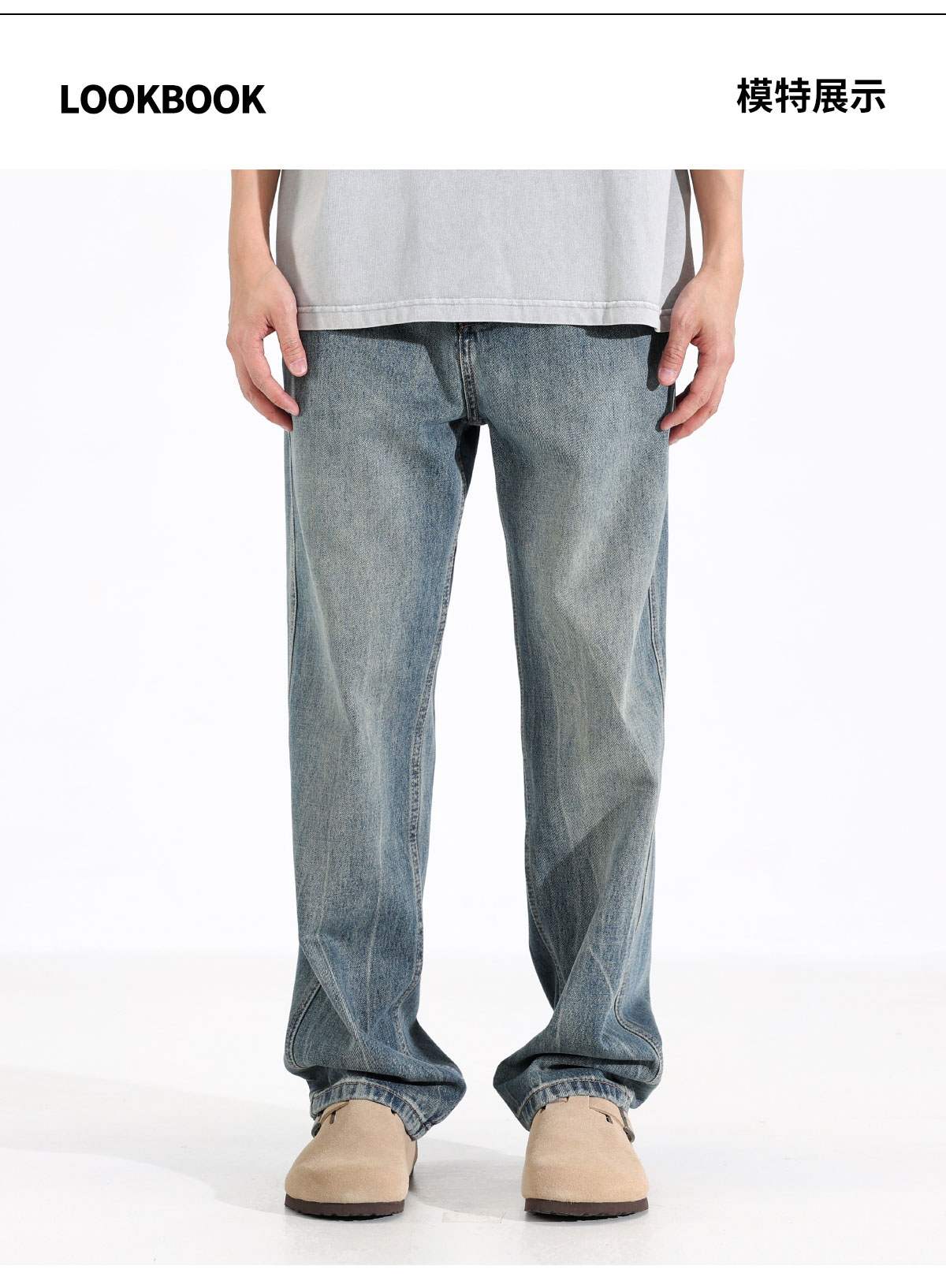 Ceecuz水洗直筒牛仔裤男美式cleanfit春季浅色拖地阔腿休闲长裤子