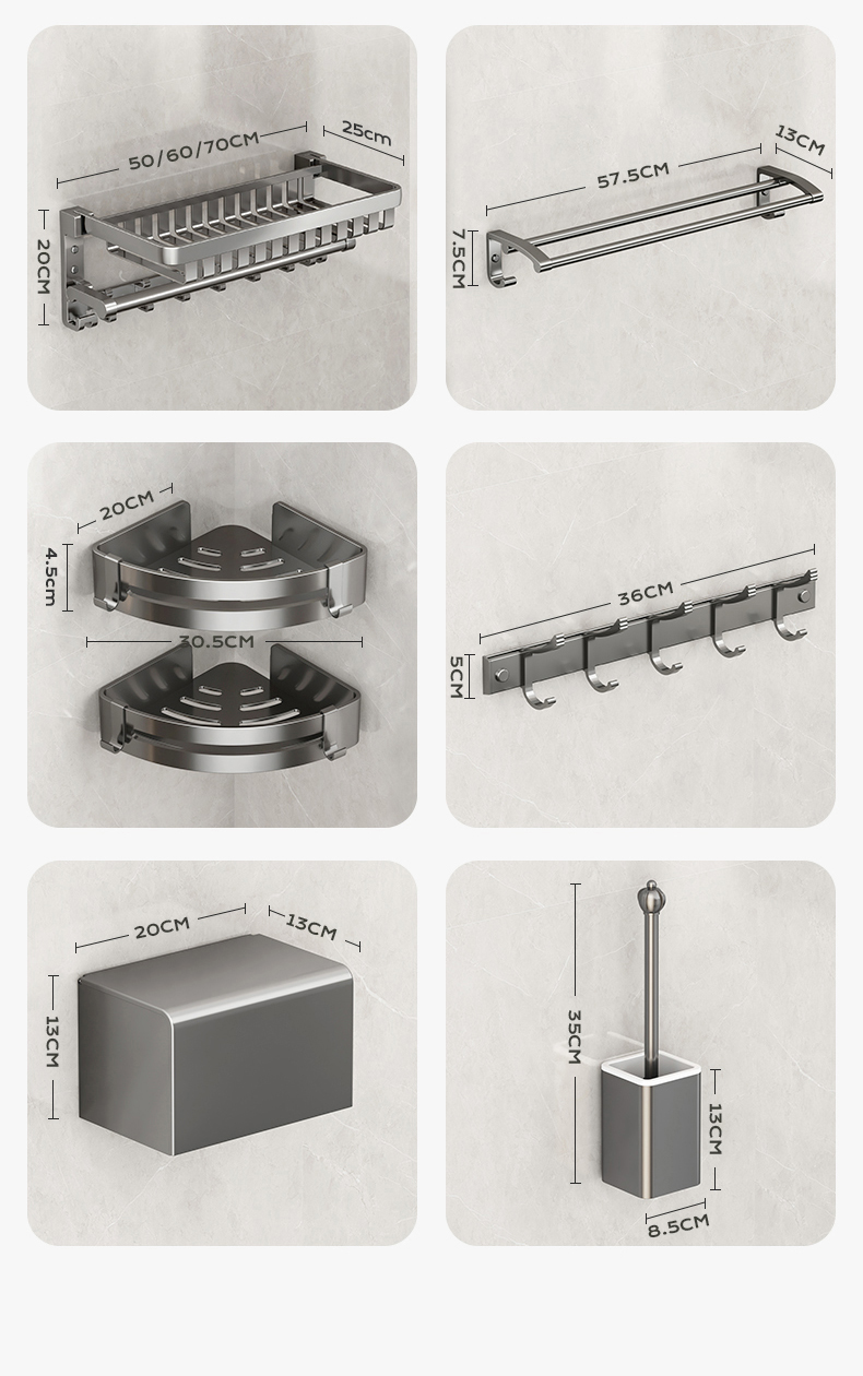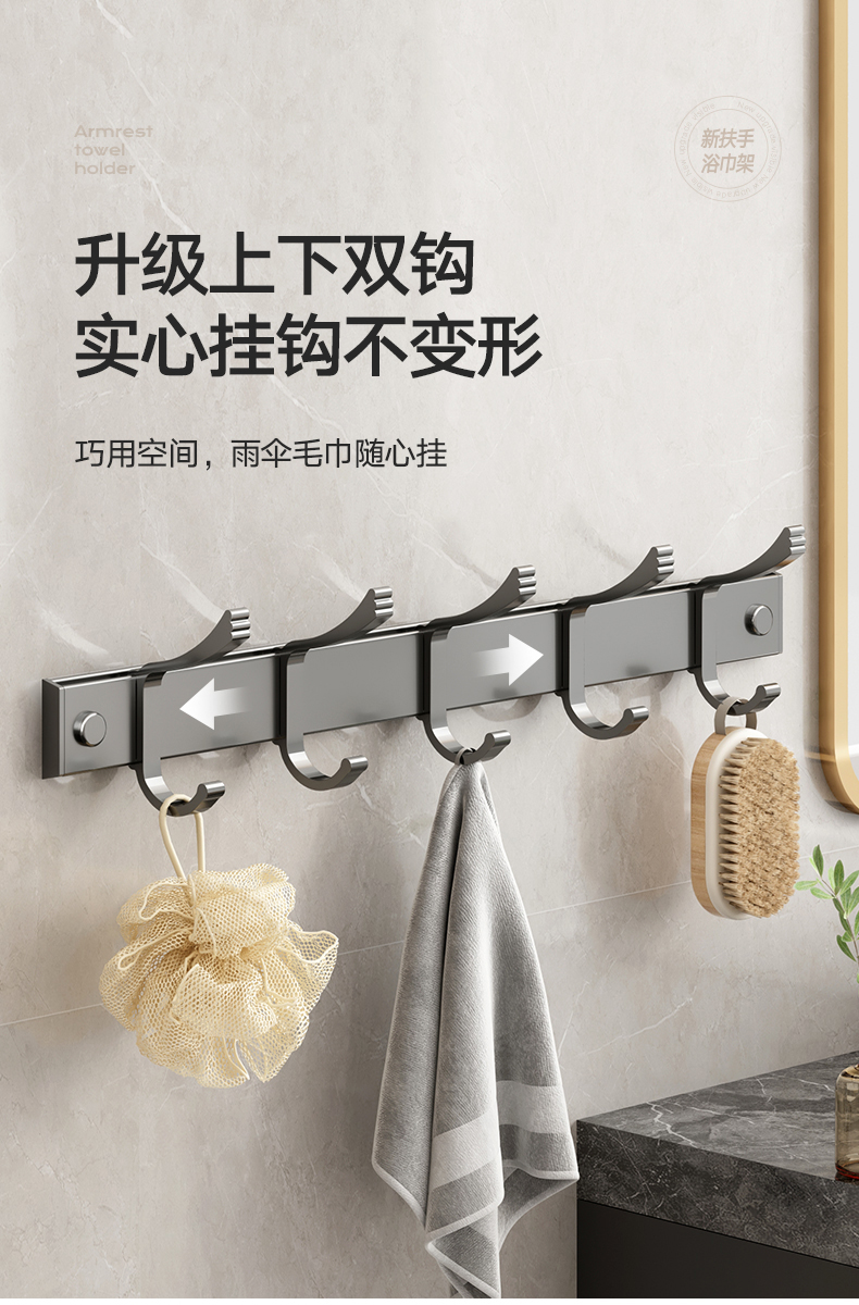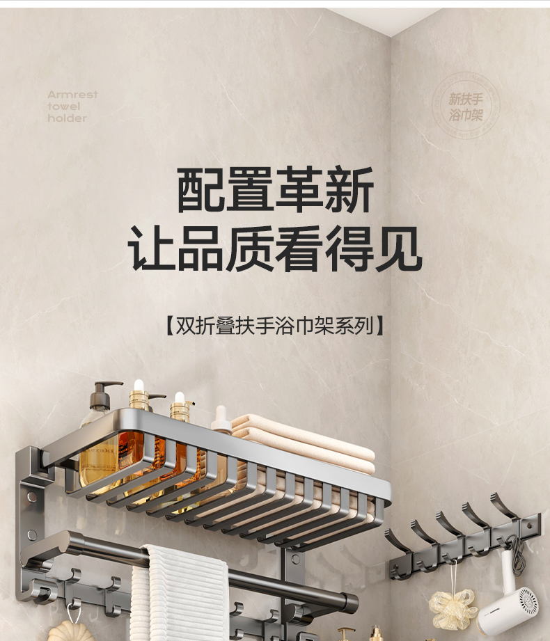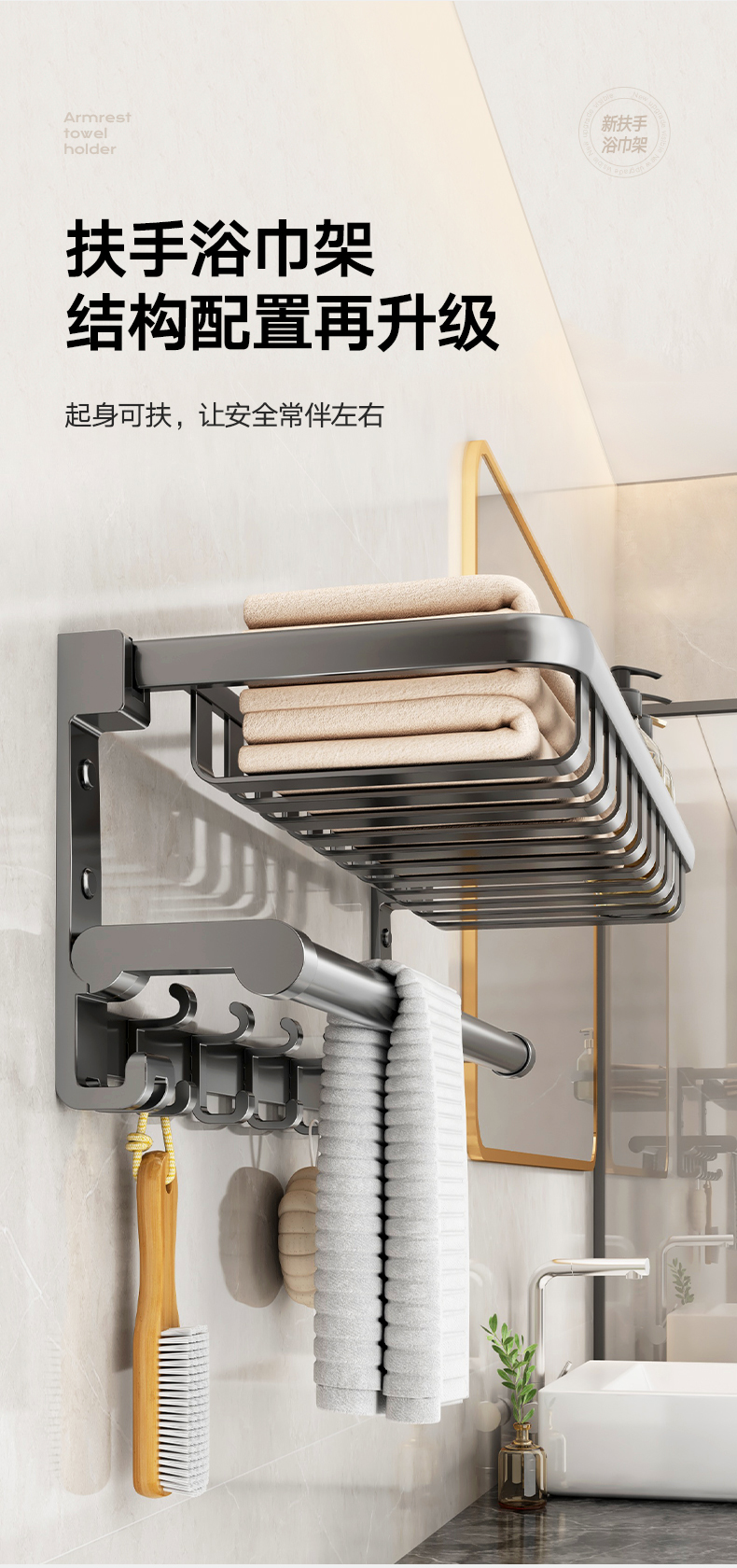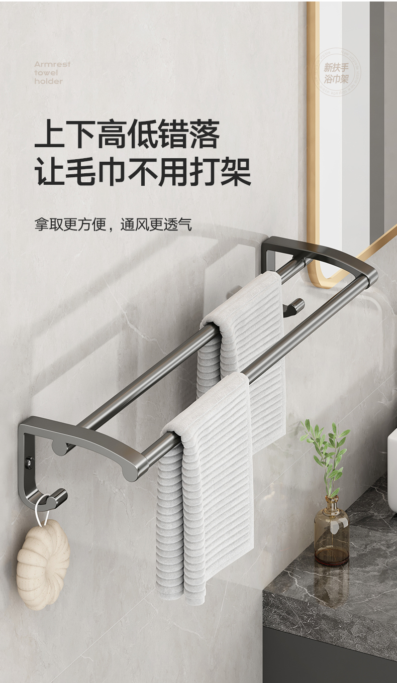 枪灰免打孔浴室浴巾架毛巾架厕所卫浴架子置物架卫生间五件套挂件