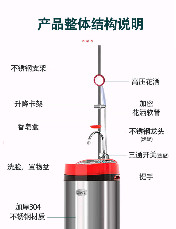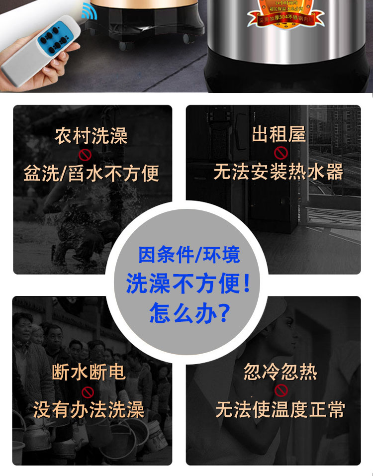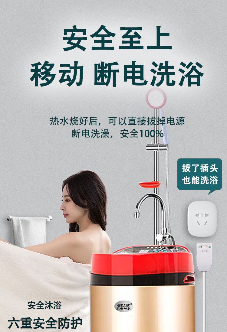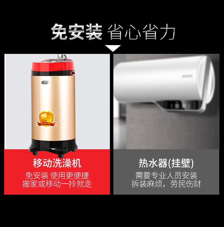 全自动移动智能洗澡机农村家用不锈钢储水电热水器出租屋断电淋浴