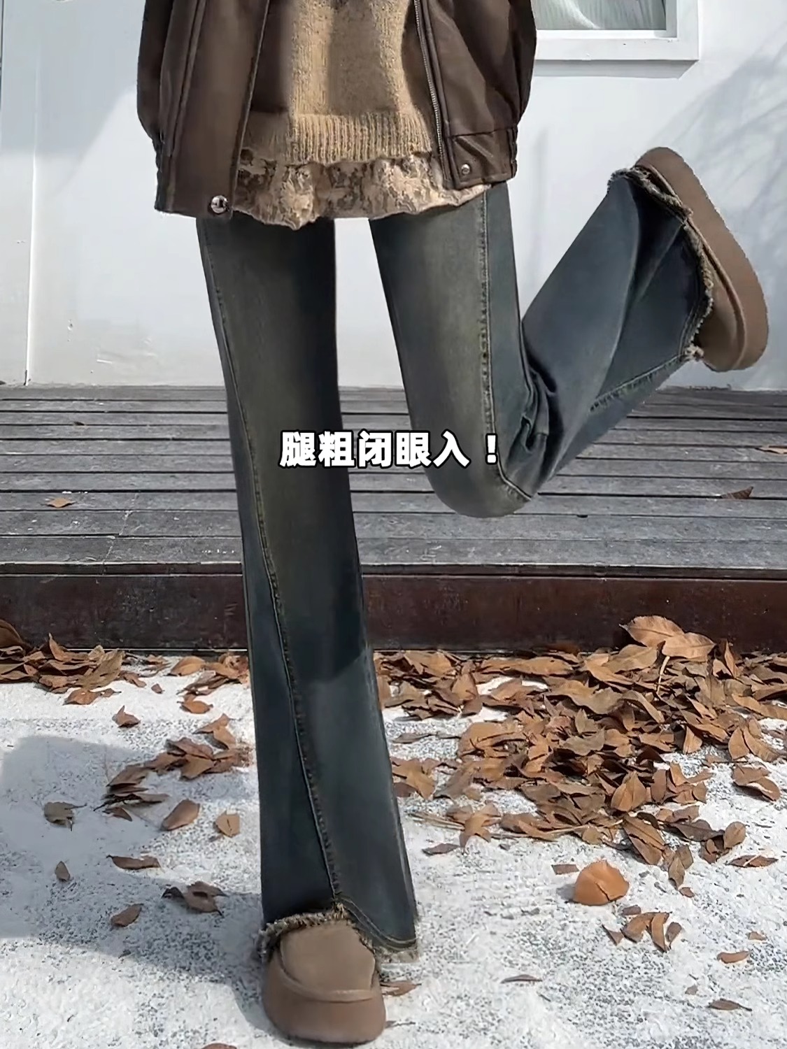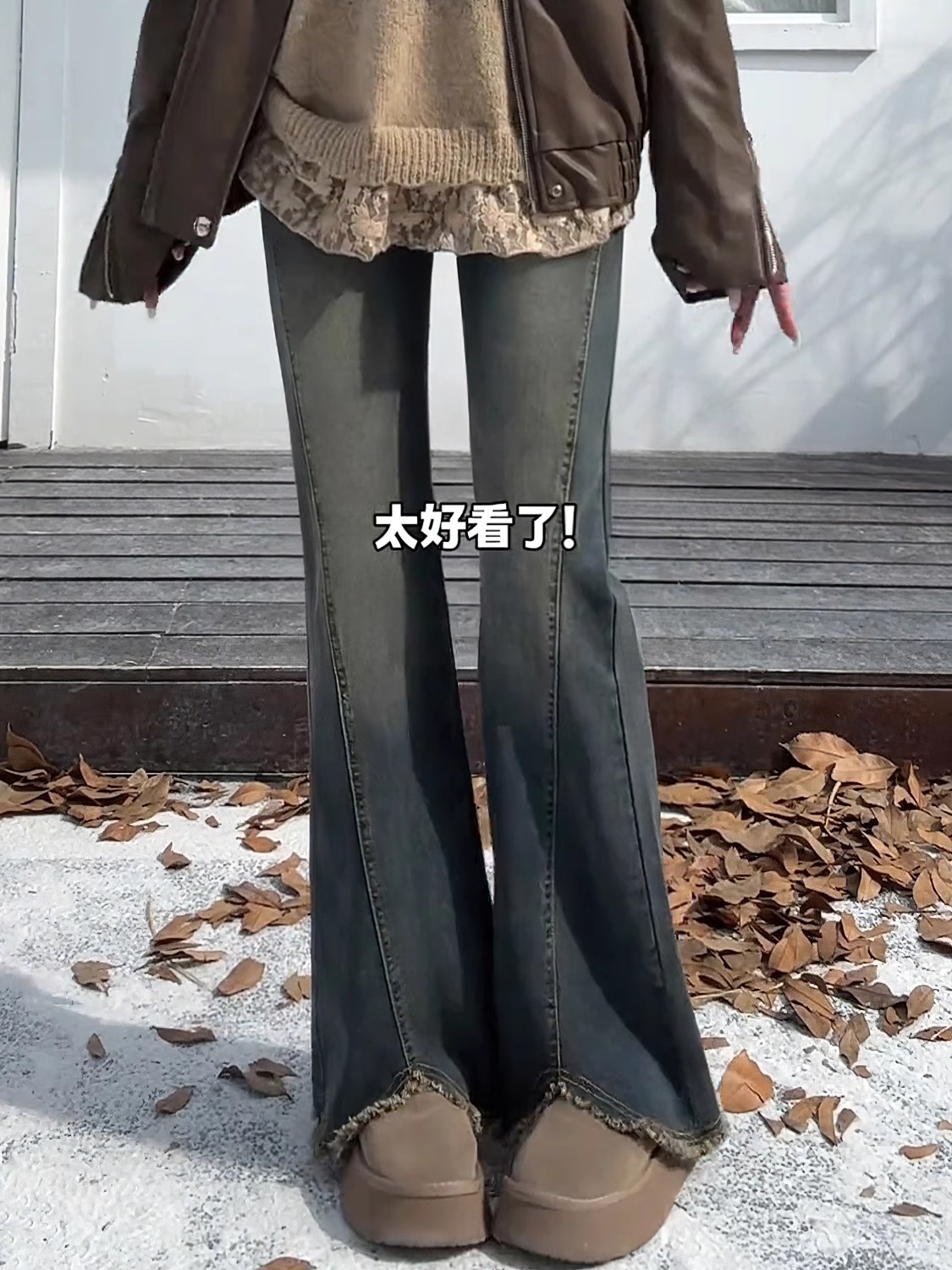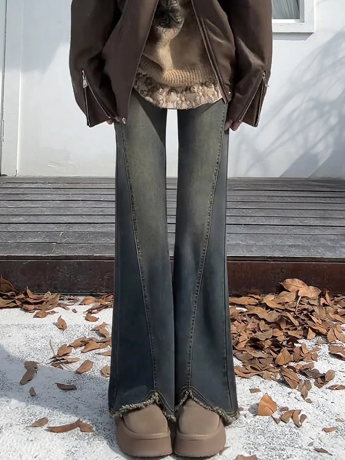梨形身材毛边微喇牛仔裤女春秋大码胖mm高腰遮胯显瘦弹力直筒裤子