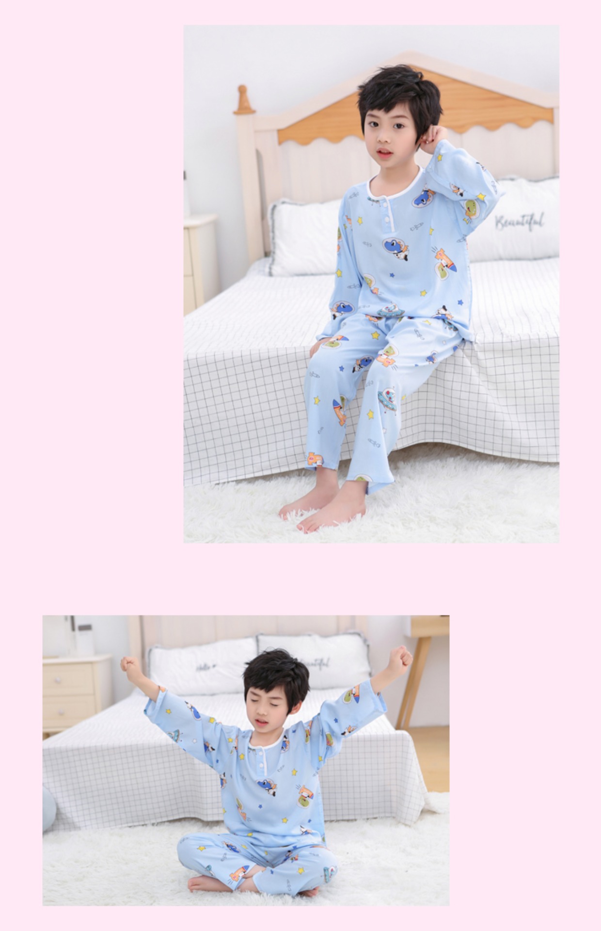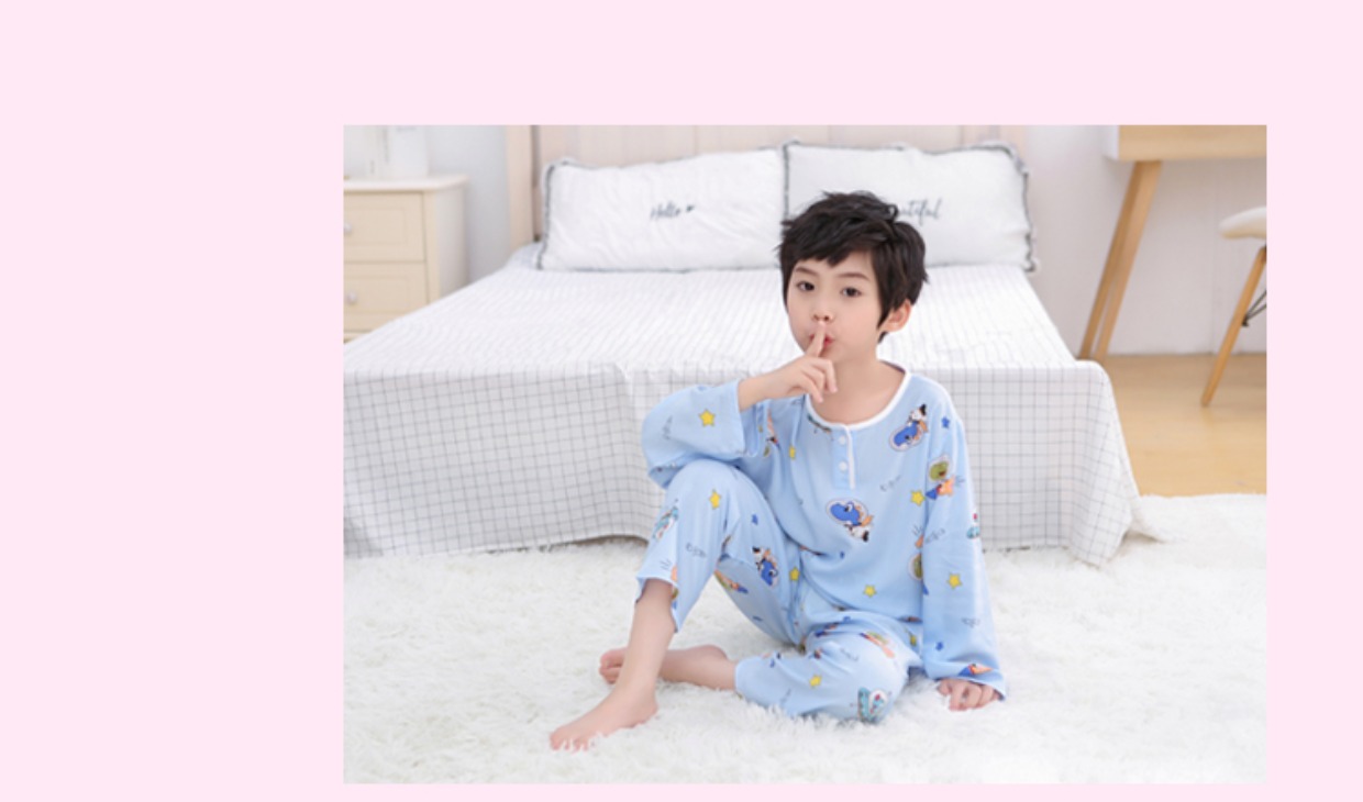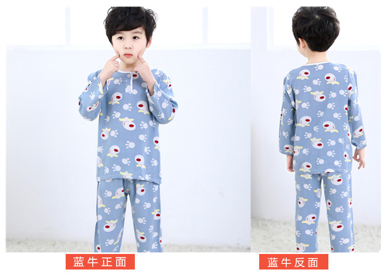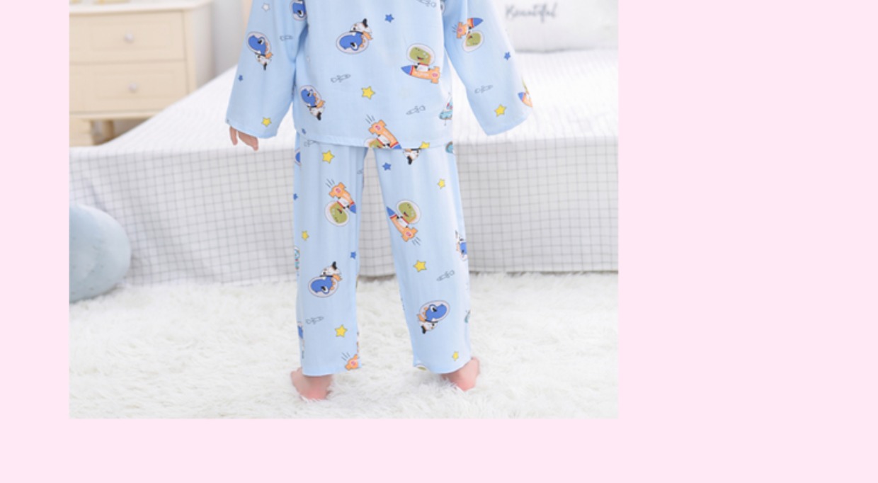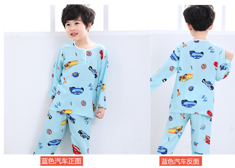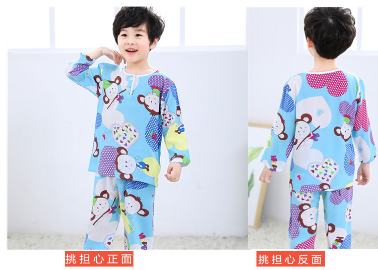 夏季儿童棉绸睡衣套装男孩女童绵绸长袖家居服宝宝小孩薄款空调服