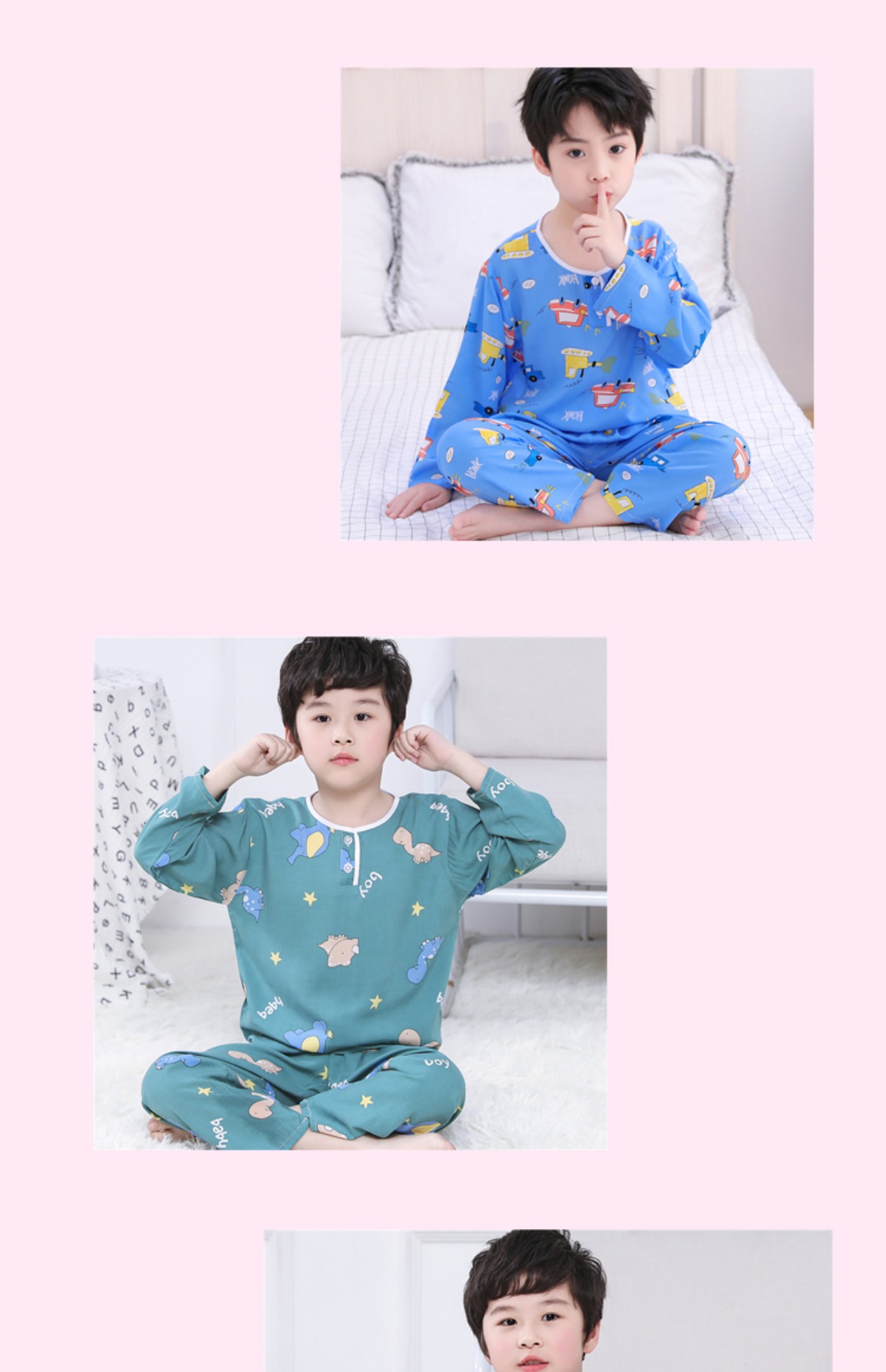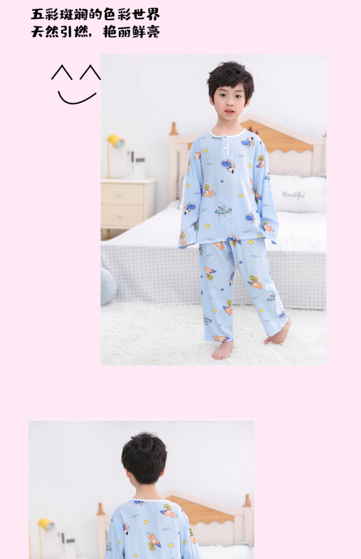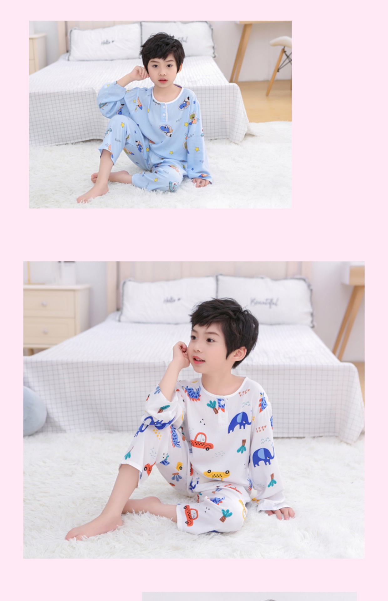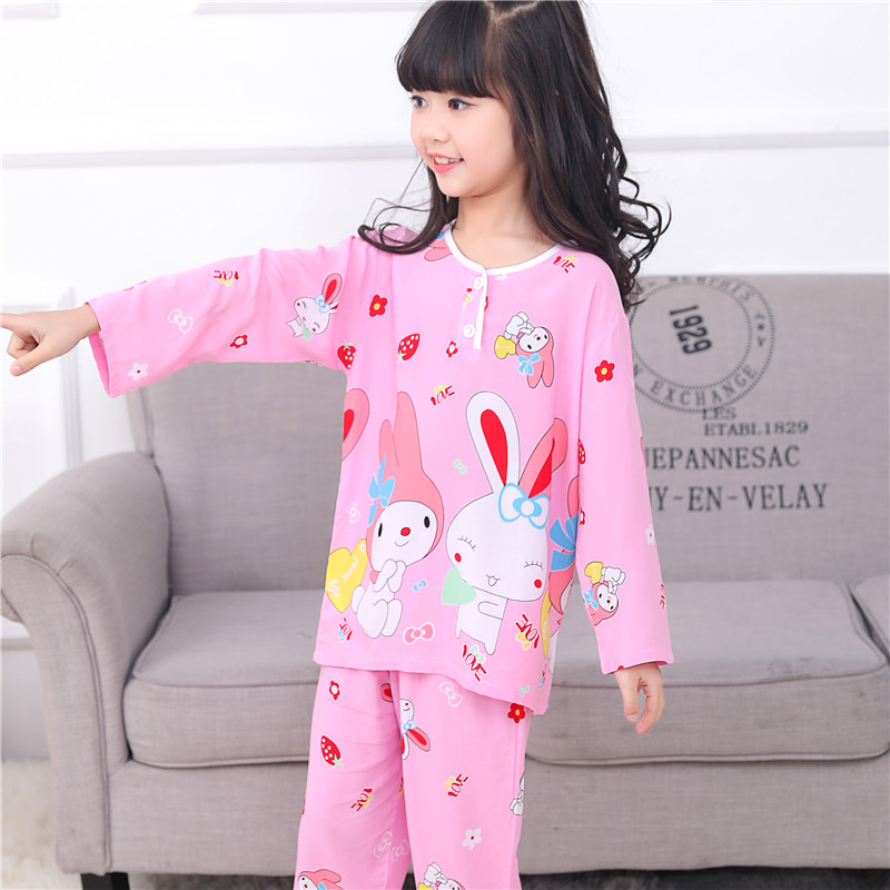 夏季儿童棉绸睡衣套装男孩女童绵绸长袖家居服宝宝小孩薄款空调服