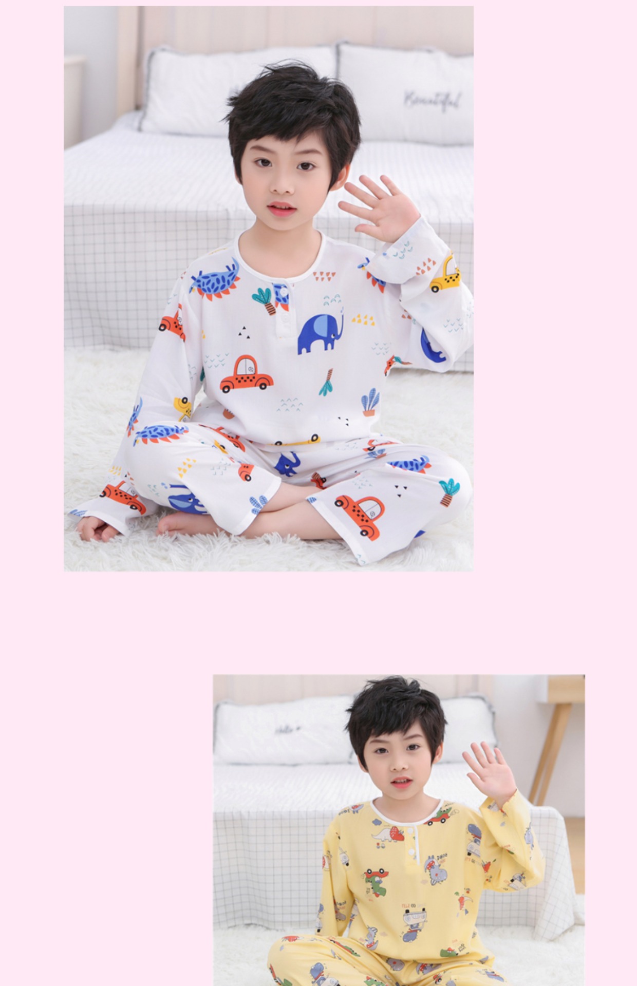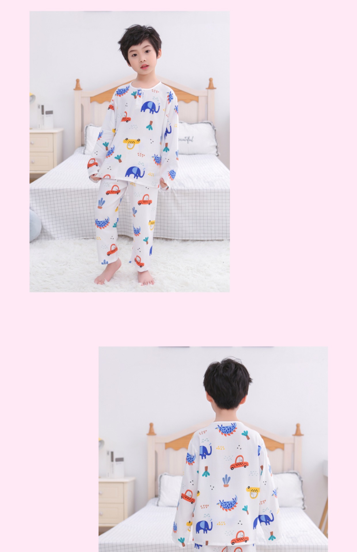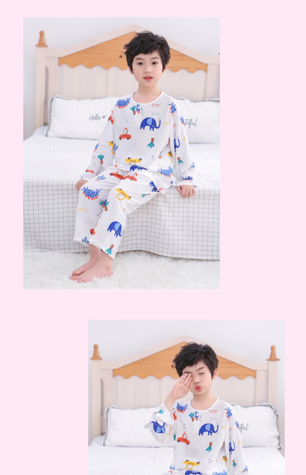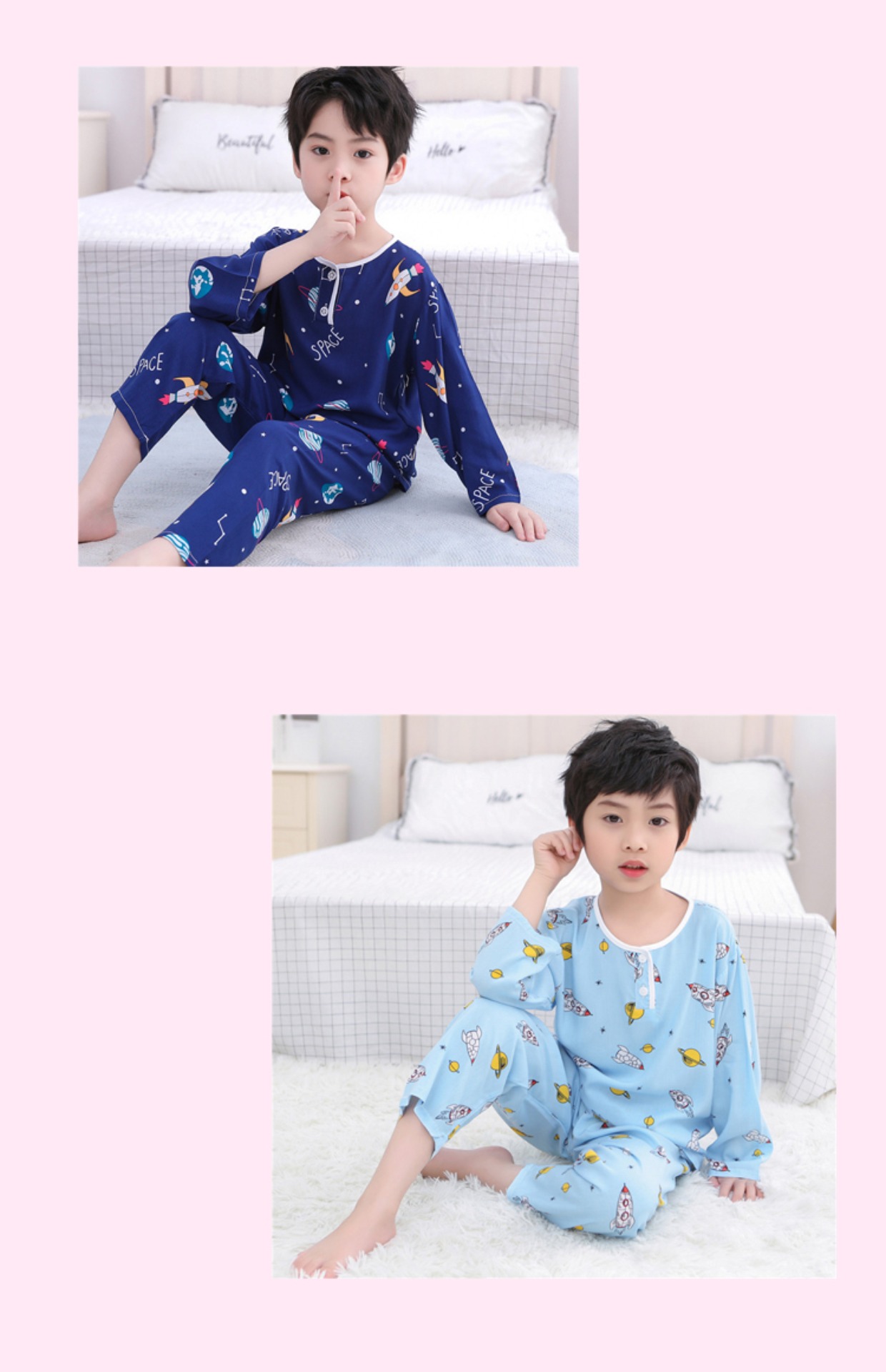夏季儿童棉绸睡衣套装男孩女童绵绸长袖家居服宝宝小孩薄款空调服