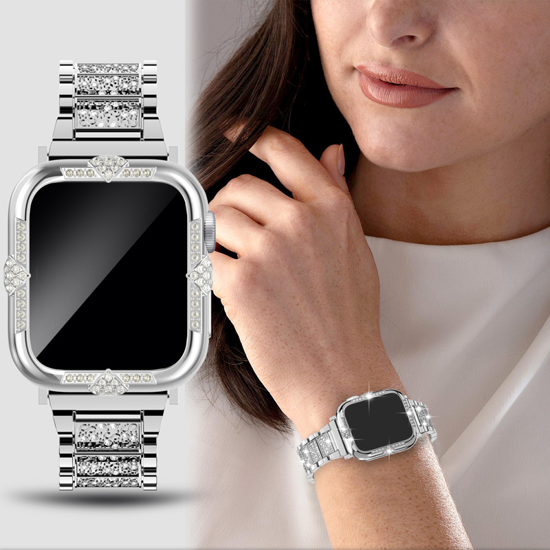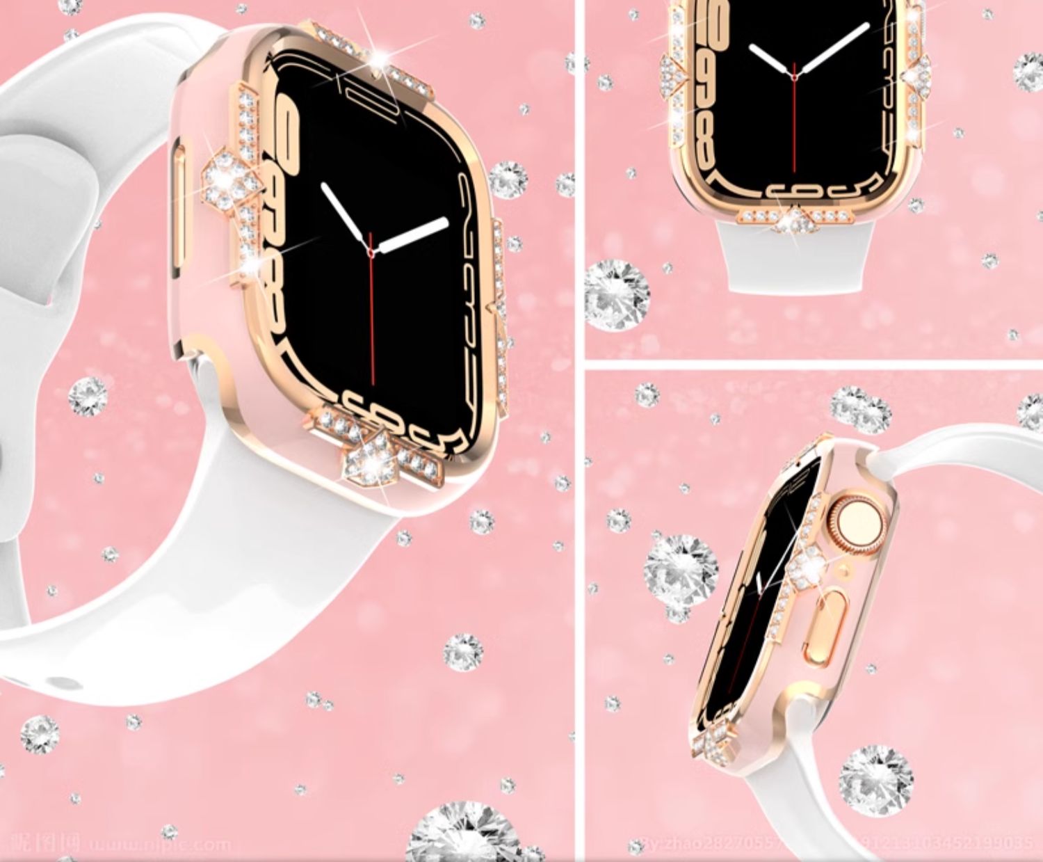 适用苹果手表s10保护壳9iwatch8se钻石边框钢化膜屏保567全包女款