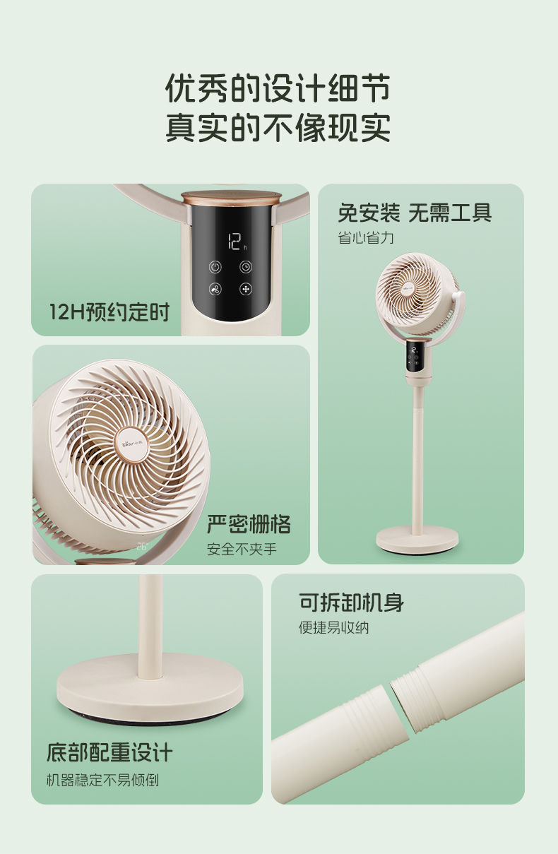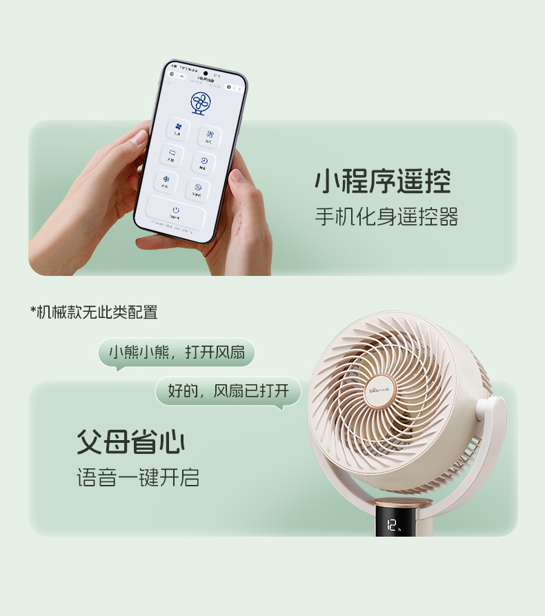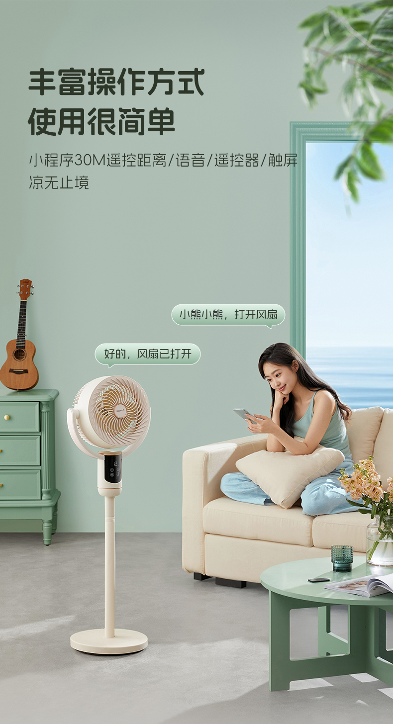 小熊空气循环落地电风扇家用低噪遥控台立式摇头涡轮宿舍2025新款