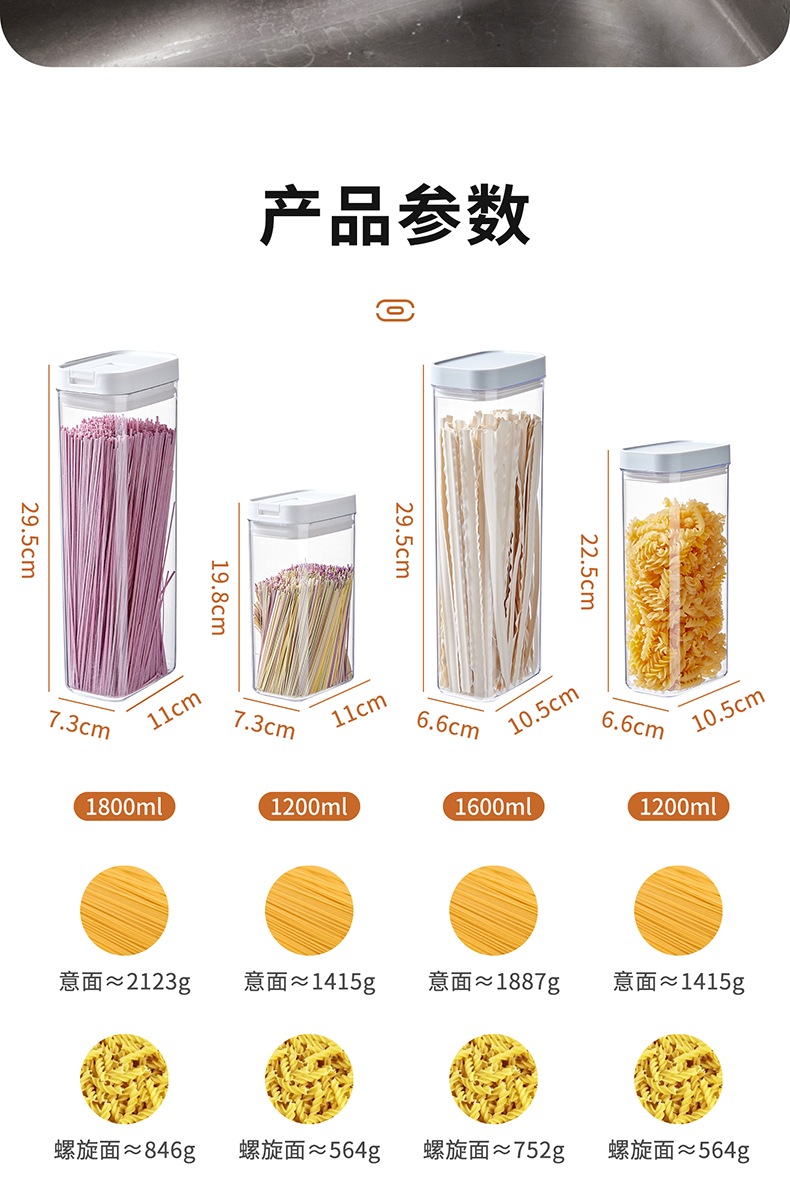面条收纳盒食品级装挂面筒意面桶放储物塑料空瓶子五谷杂粮密封罐