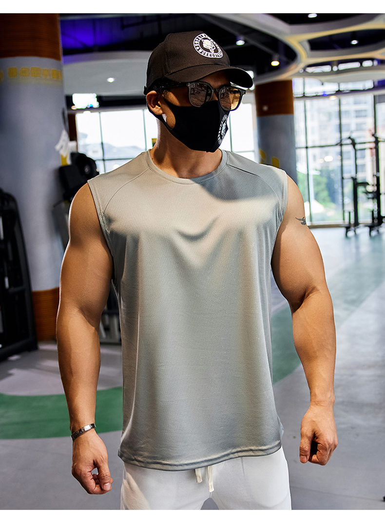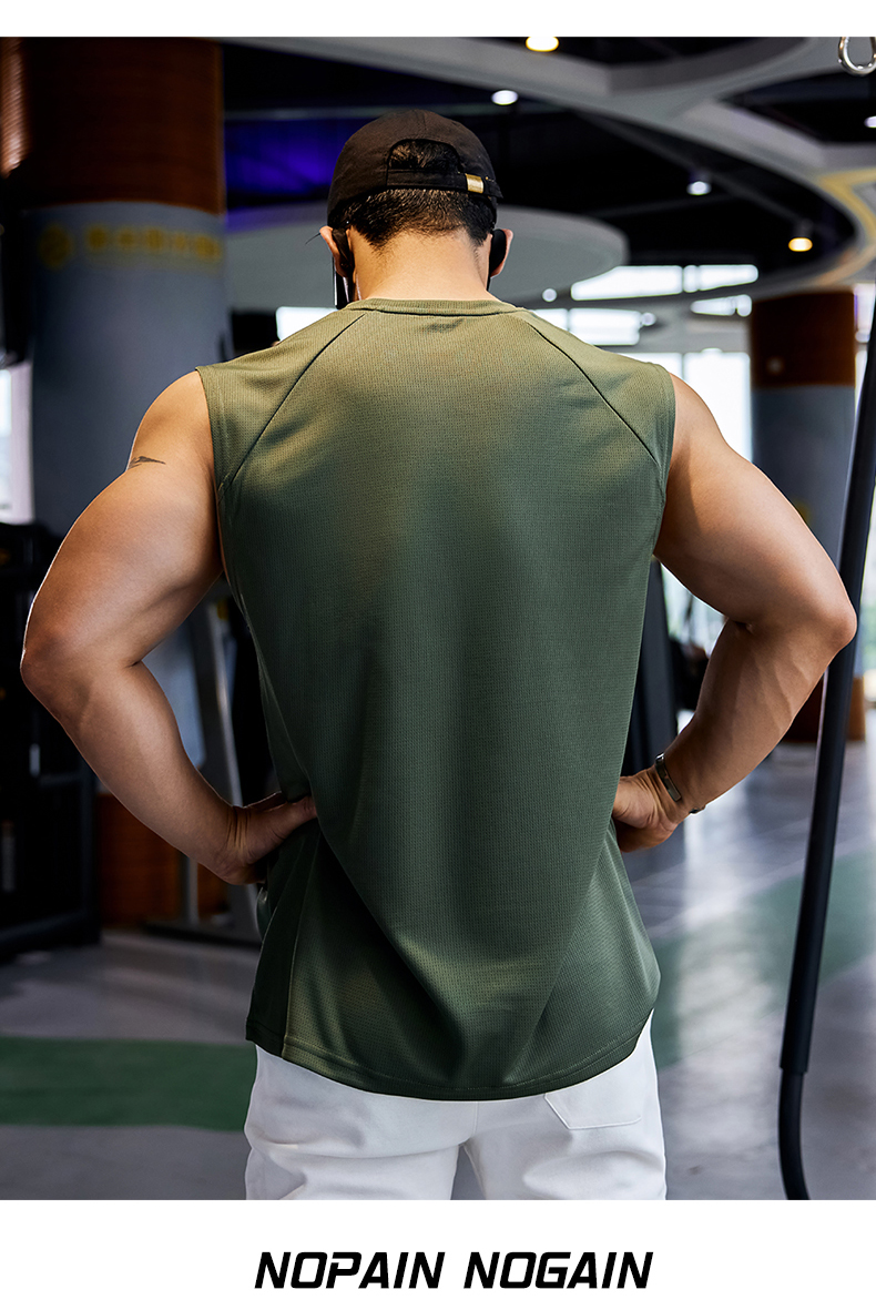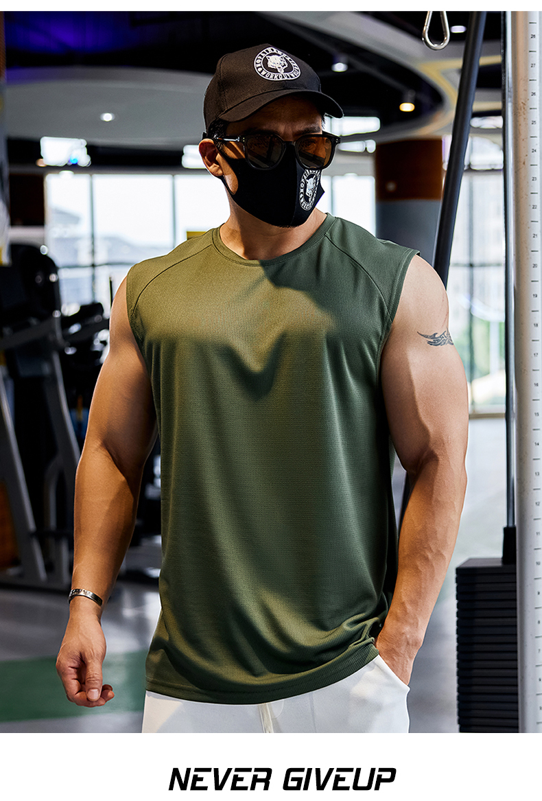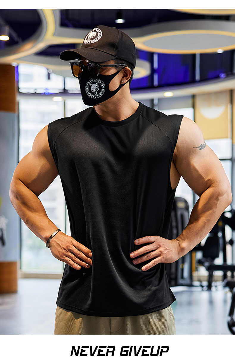 撸铁狼无袖运动T恤健身背心肌肉训练男宽松跑步坎肩速干弹力透气